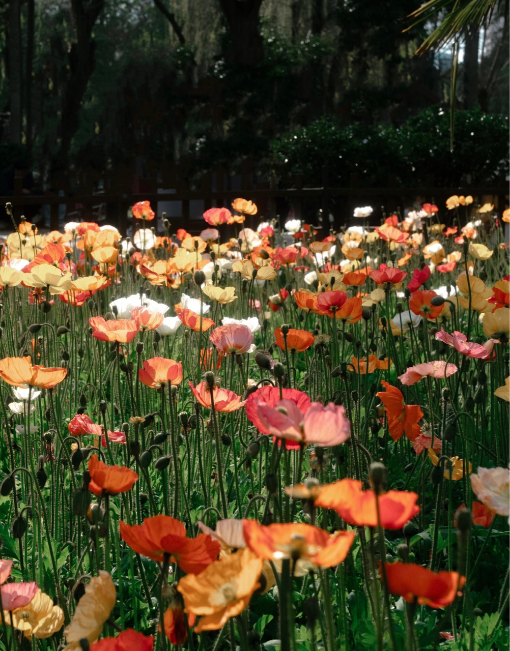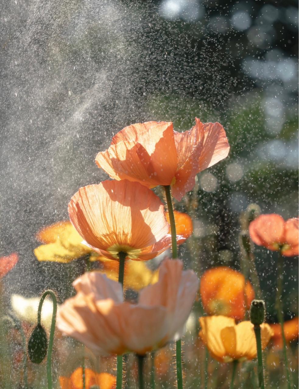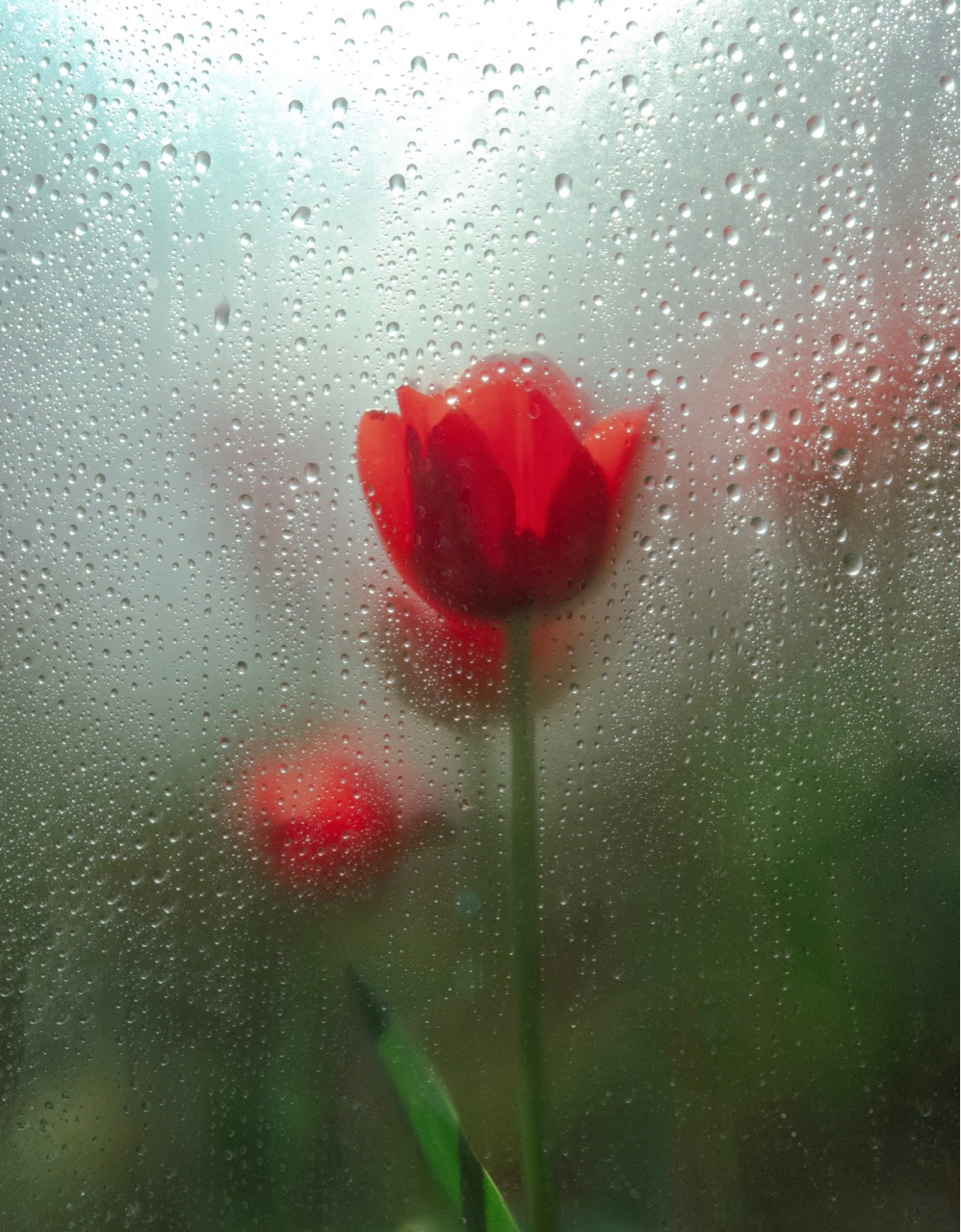虞美人与郁金香在细雨初歇的光里低语,水珠轻悬如未寄的信,花瓣微颤,春色便有了呼吸。