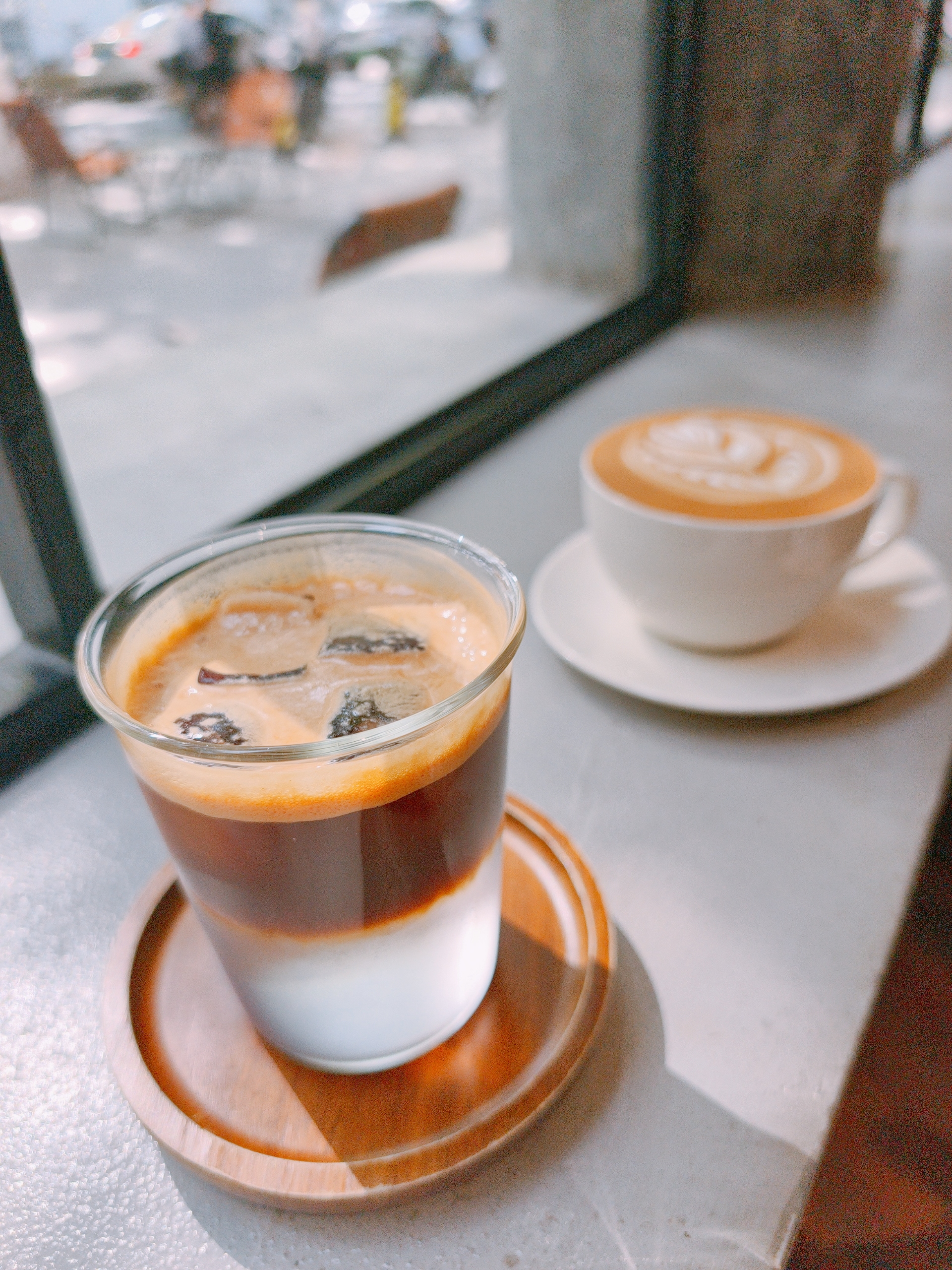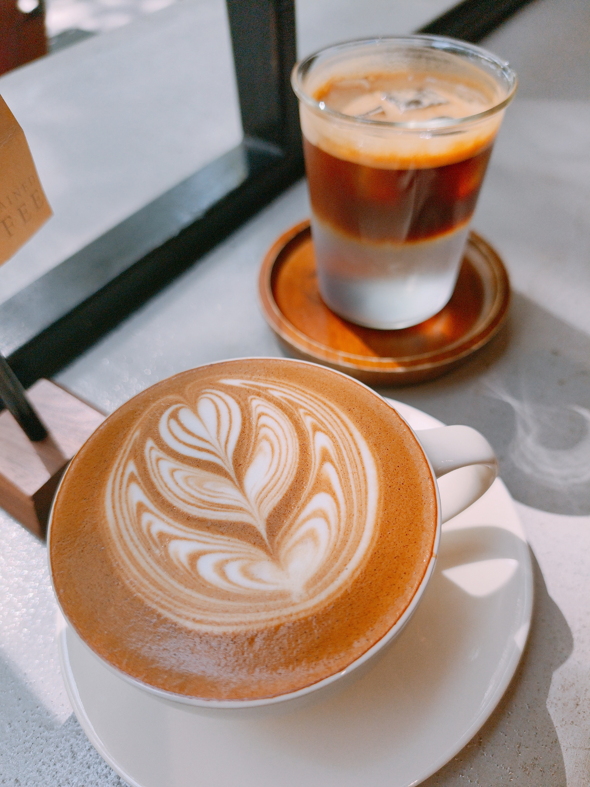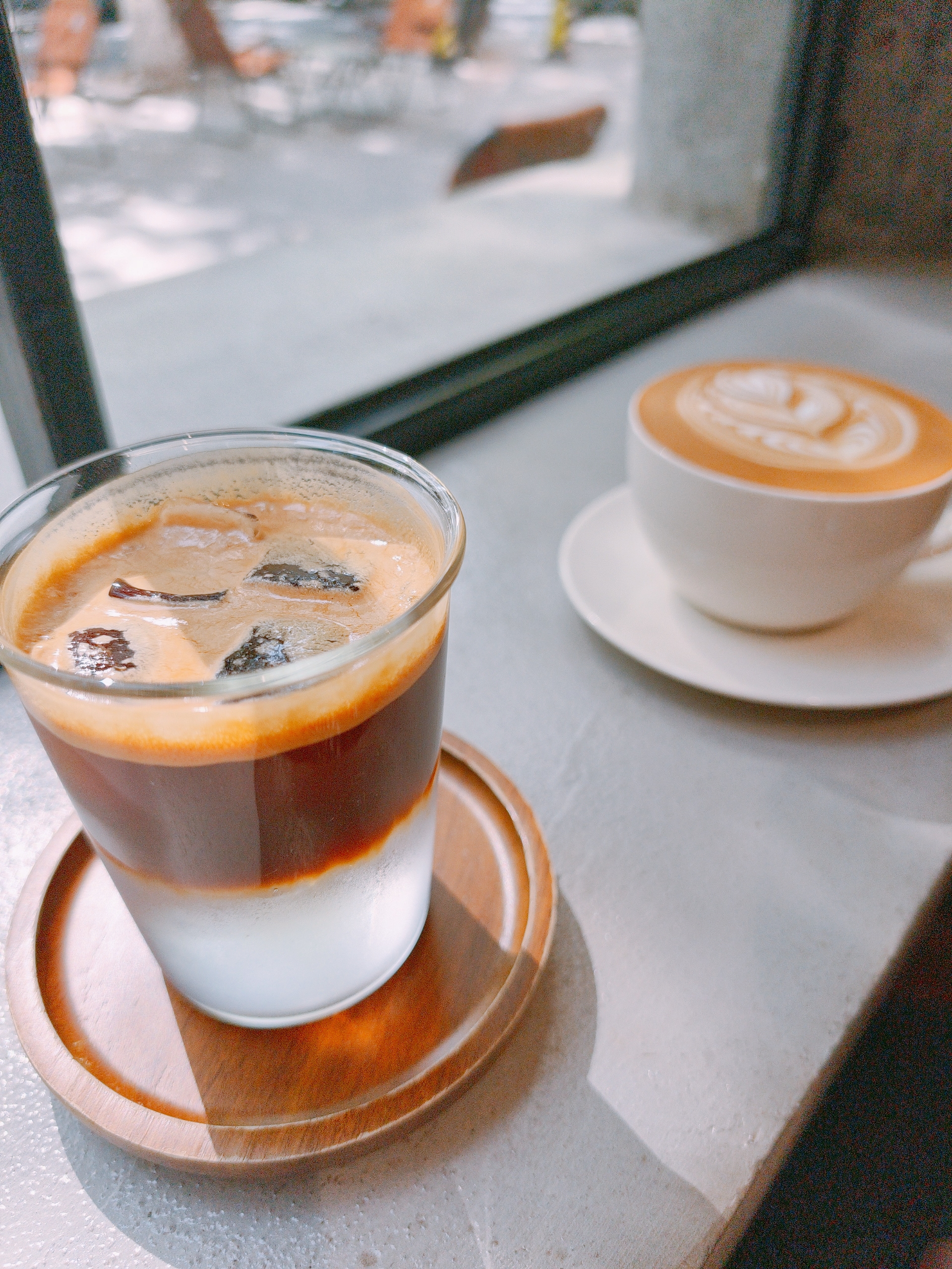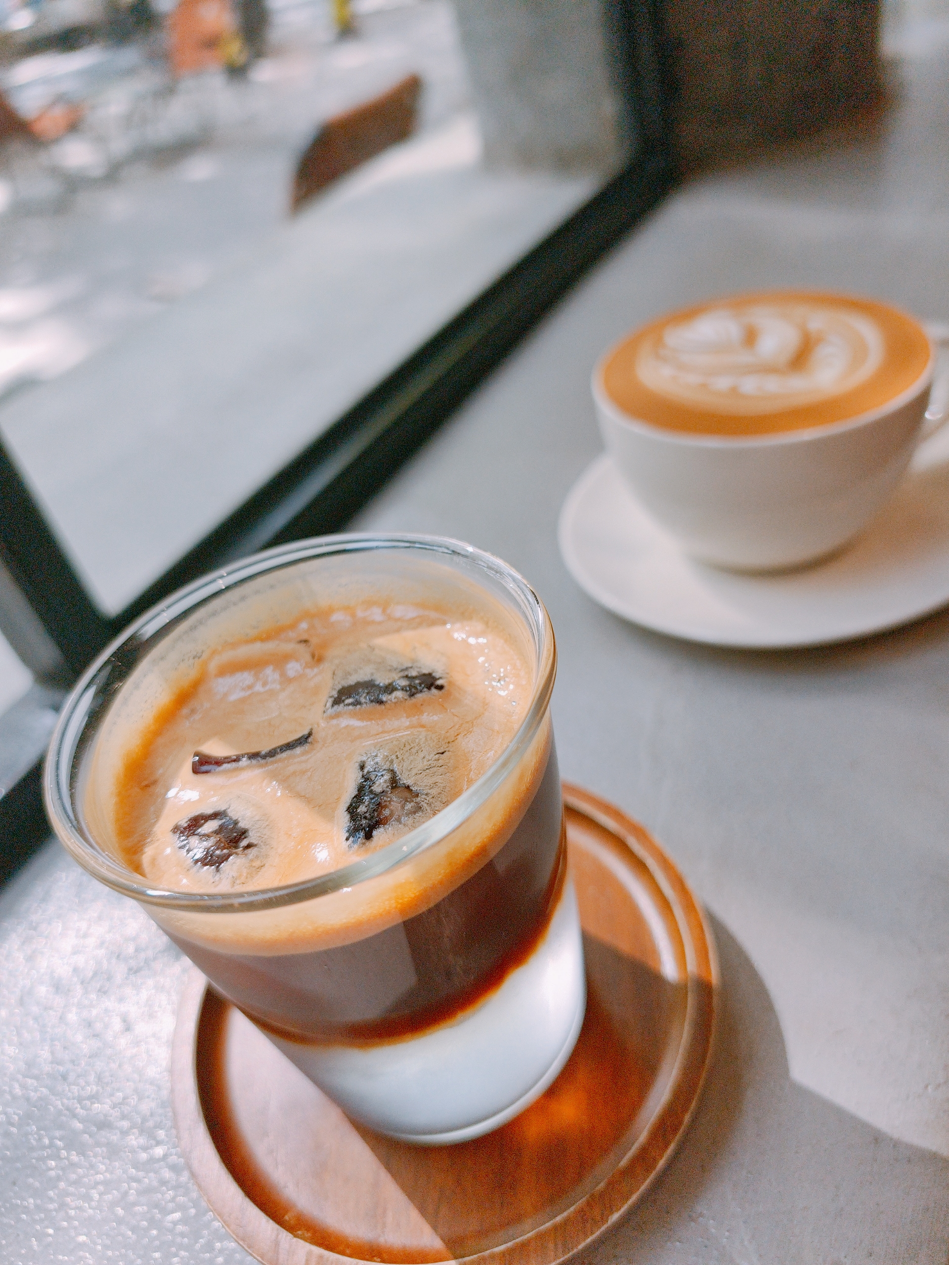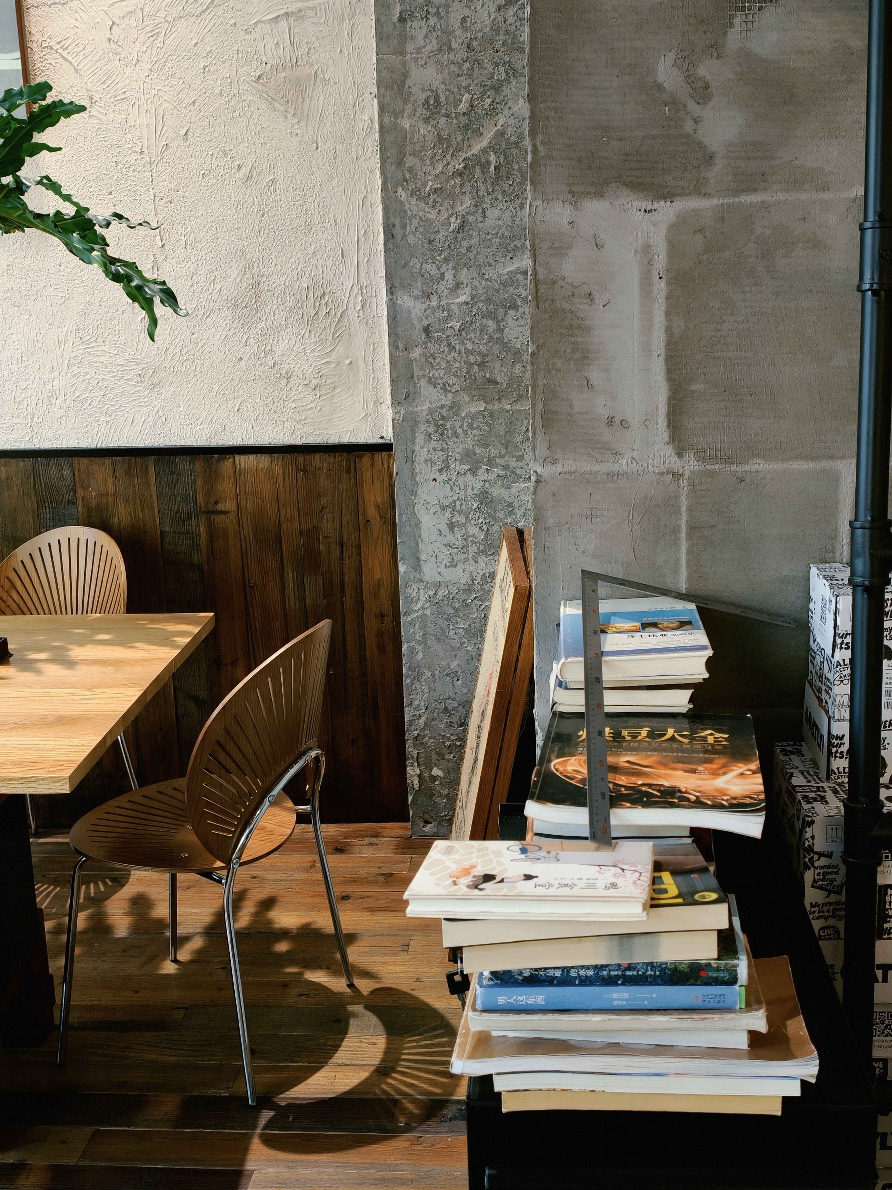 萌咪书堆和冰咖啡 午后阳光穿过玻璃窗,斑驳洒在木质桌椅上~猫主子踱步经过书堆。 汤力美式冰咖啡渐层得很好看,热拿铁杯沿还留着拉花的余韵。 水泥墙配木板墙,复古吊灯轻晃,手冲壶正冒着热气…… 无羁派咖啡,萧山老城区藏得最温柔的文艺角落。
