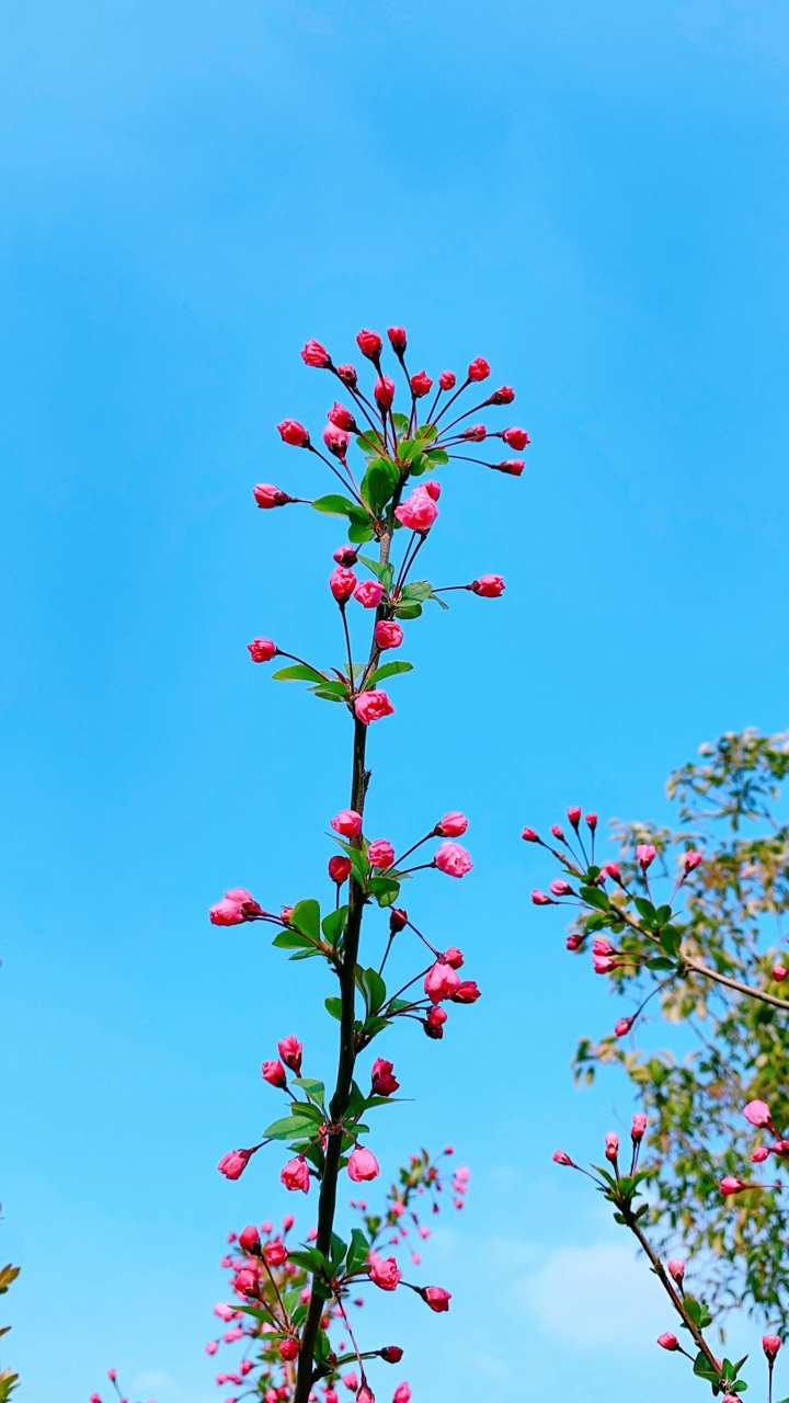 春日随手一拍就是壁纸!粉嘟嘟的花枝蹭着湛蓝天空,嫩绿叶子托着盛放的花蕾,阳光刚好,风也温柔~快冲去户外,把这波春日限定浪漫装进镜头里!🌸📸