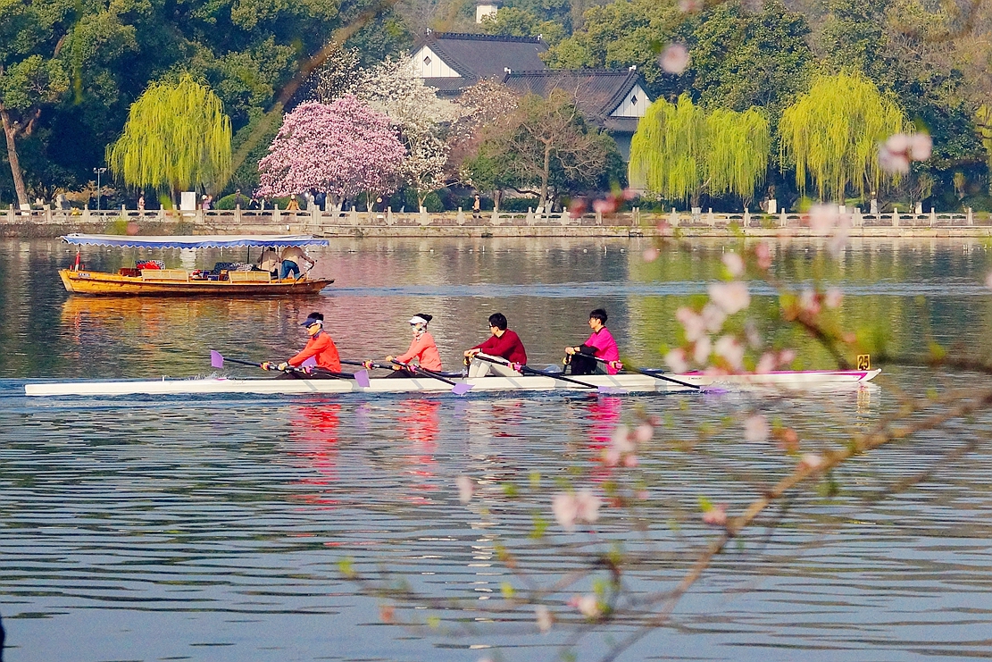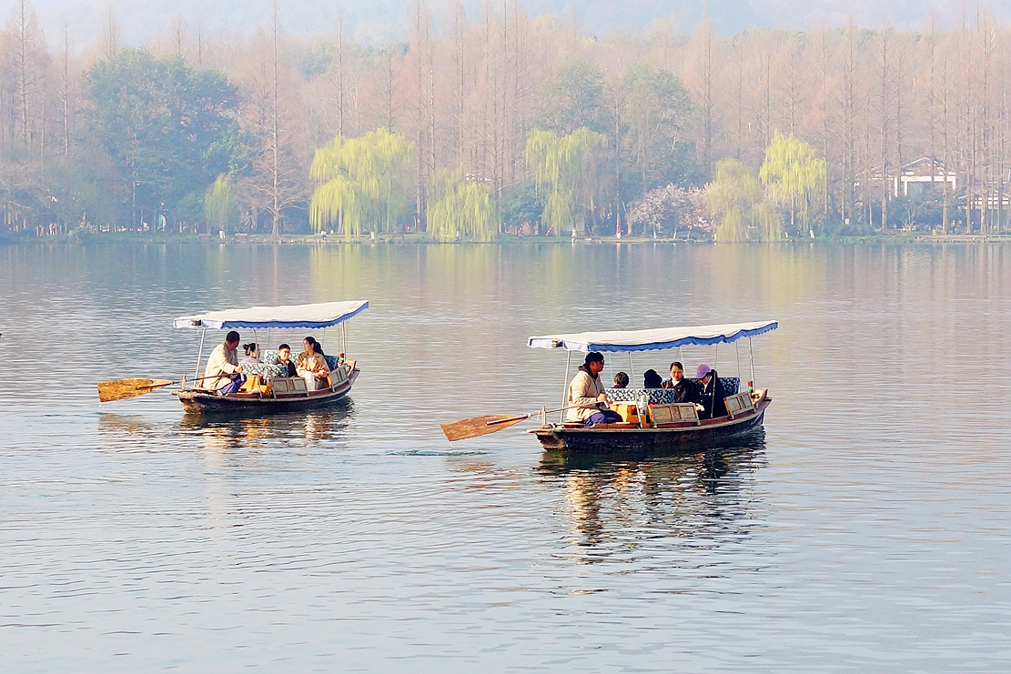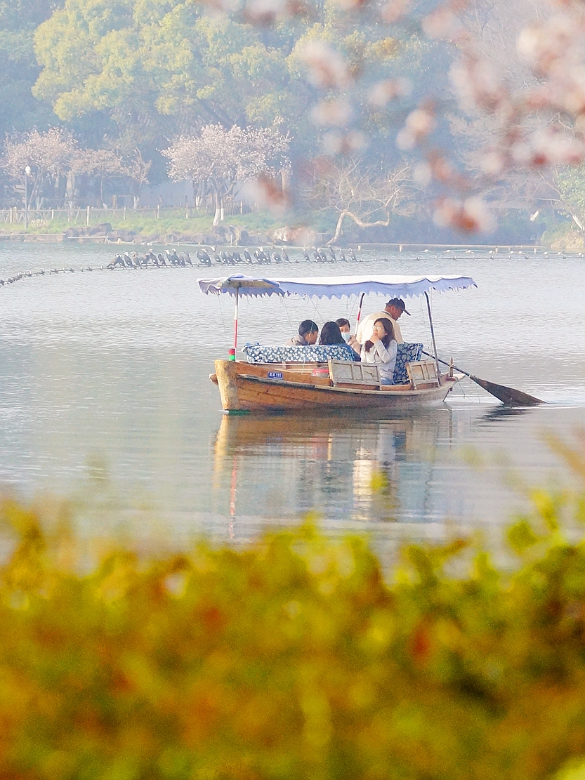 #春拍大赛#苏堤春晓——春天当然要游玩著名的苏堤,连续两天晨游苏堤,处处桃红柳绿,鸬鹚在湖中列队赏景,松鼠在快乐地春游;游客悠闲地乘着小舟,陶醉于迷人的西湖春色中。摄于3月13、14日。