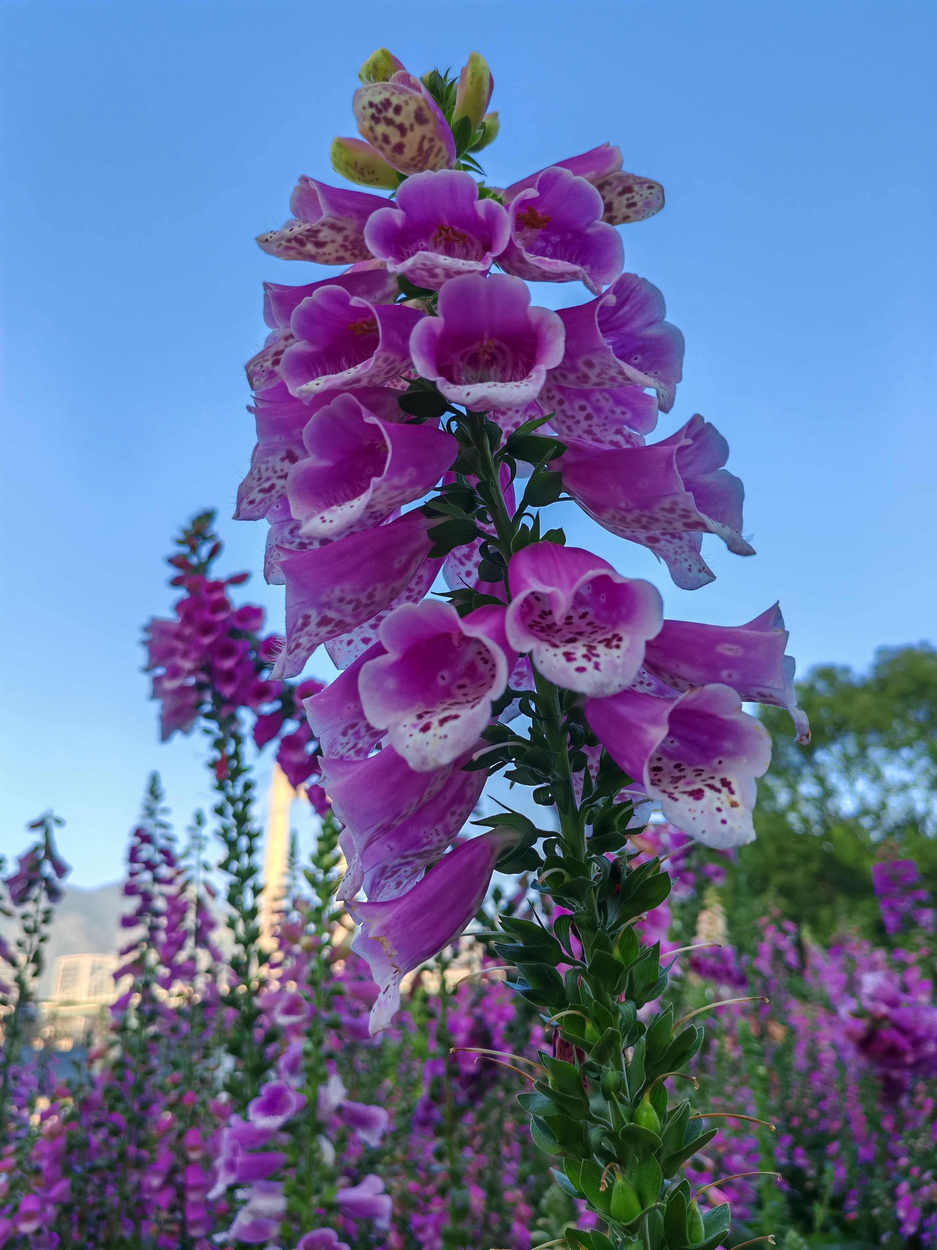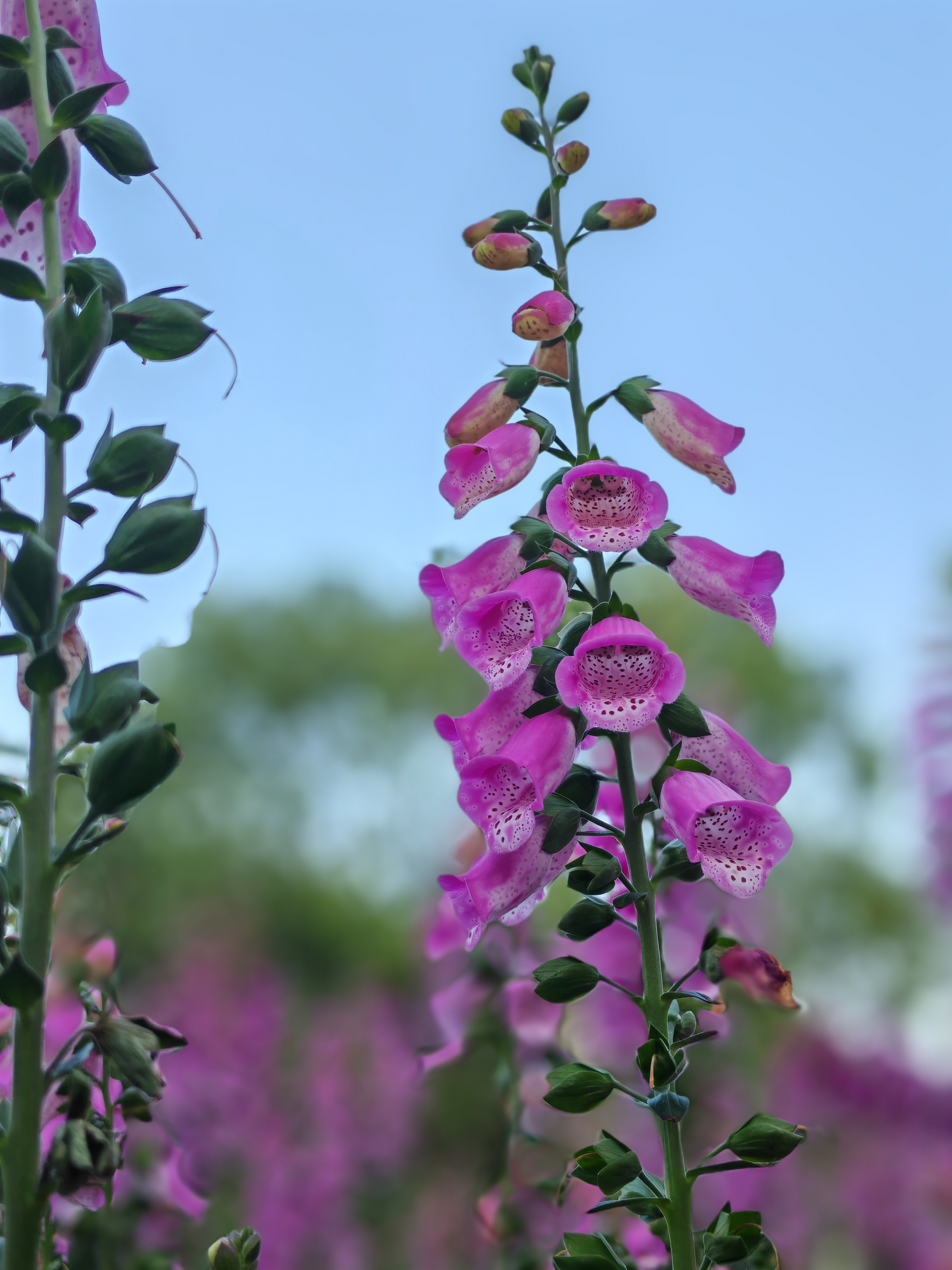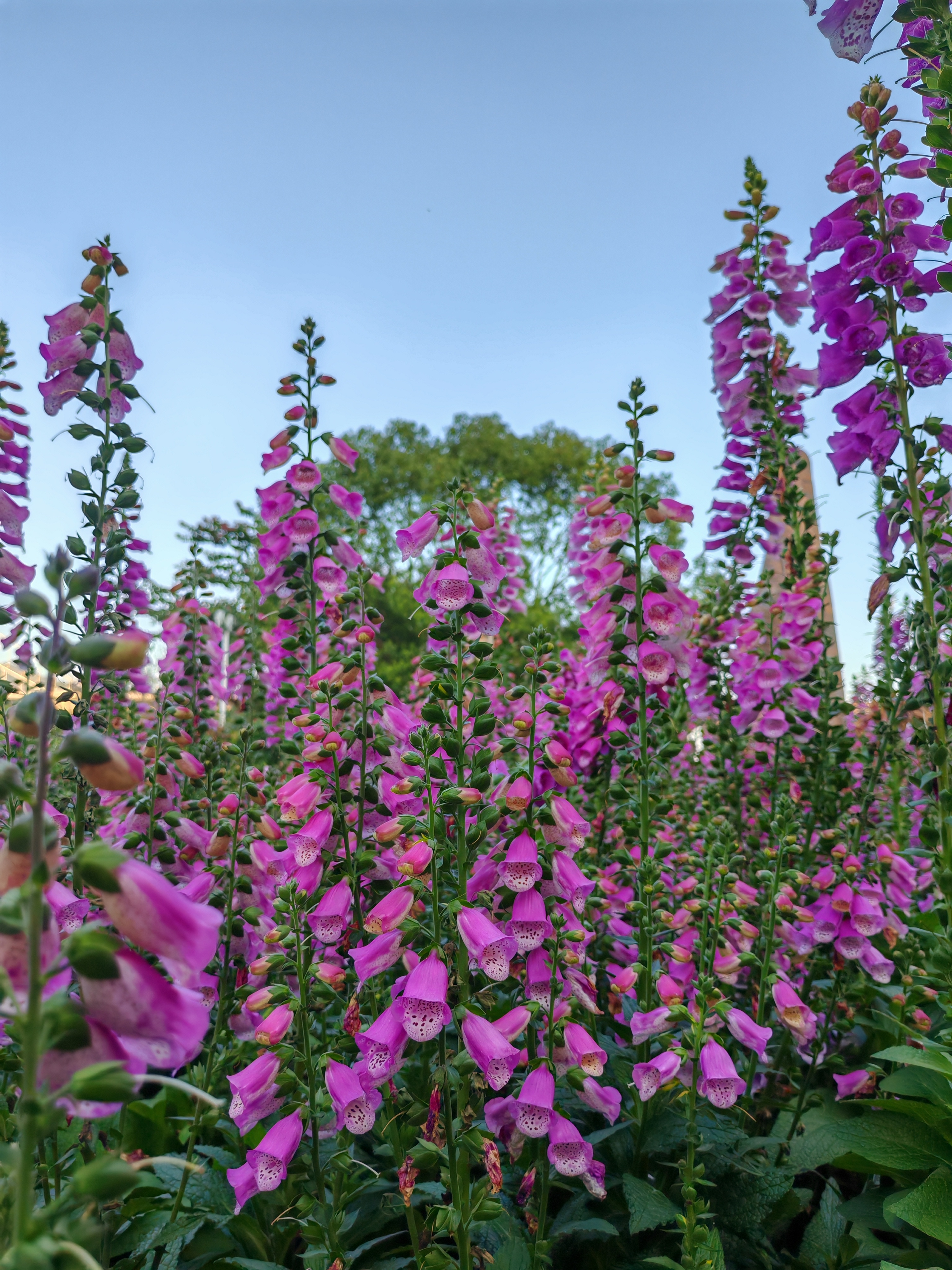 毛地黄紫穗摇曳,蓝天绿叶间撞见春日花海~随手一拍,就是自然系壁纸!