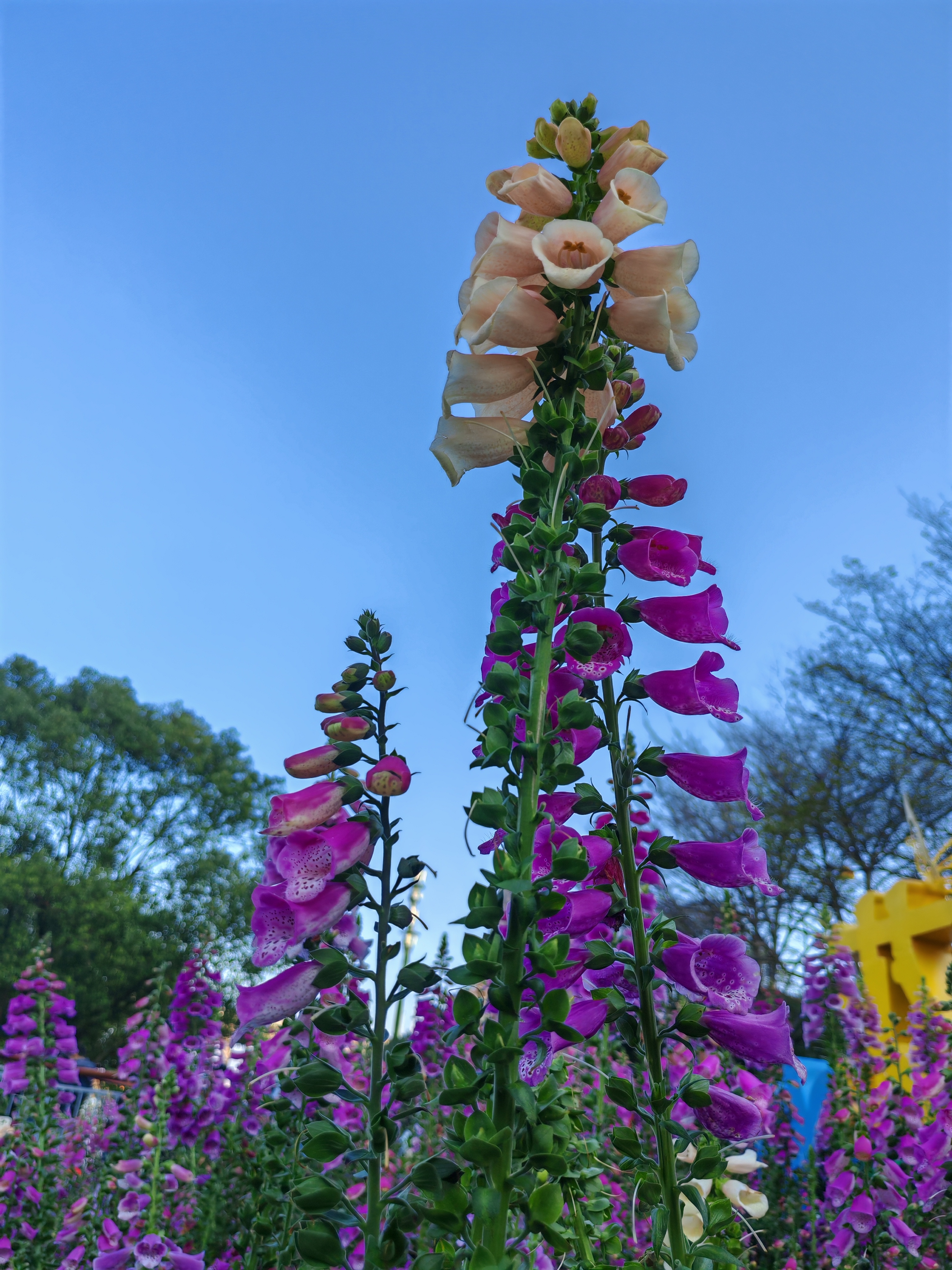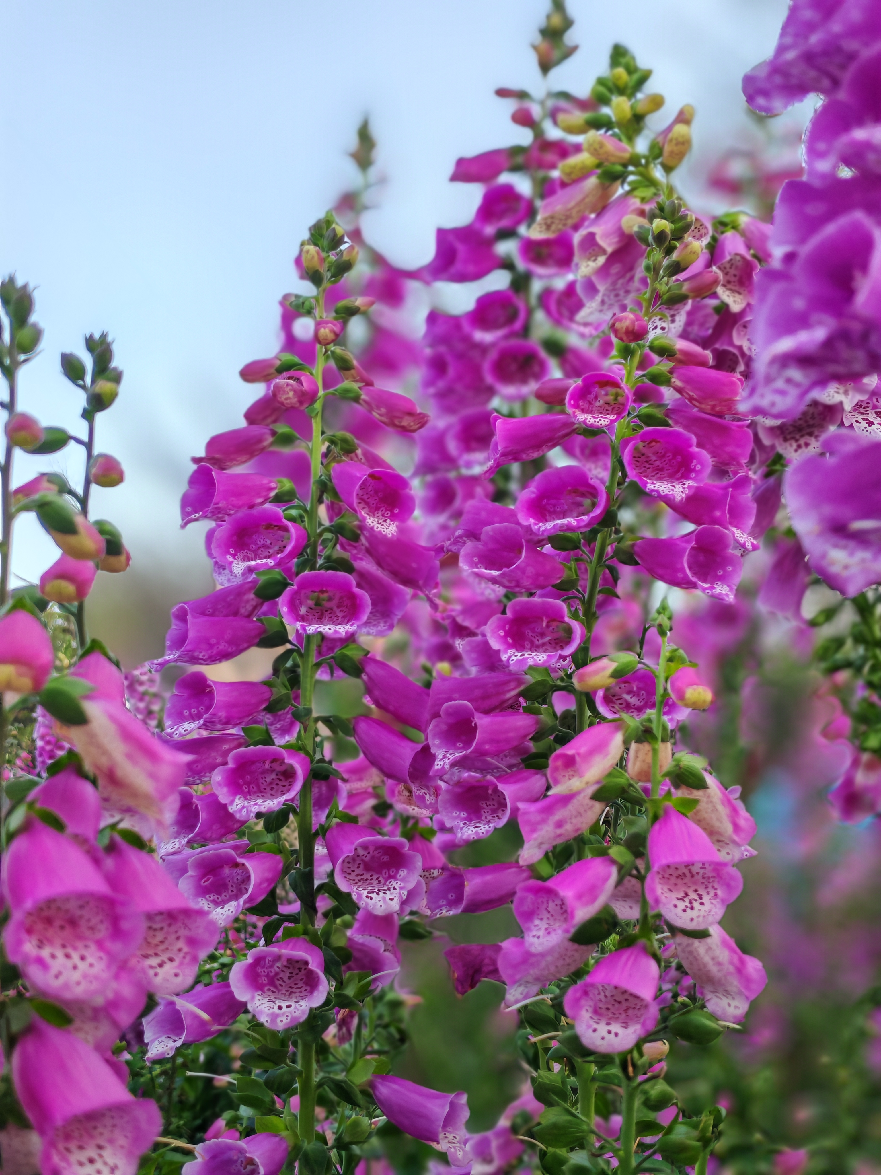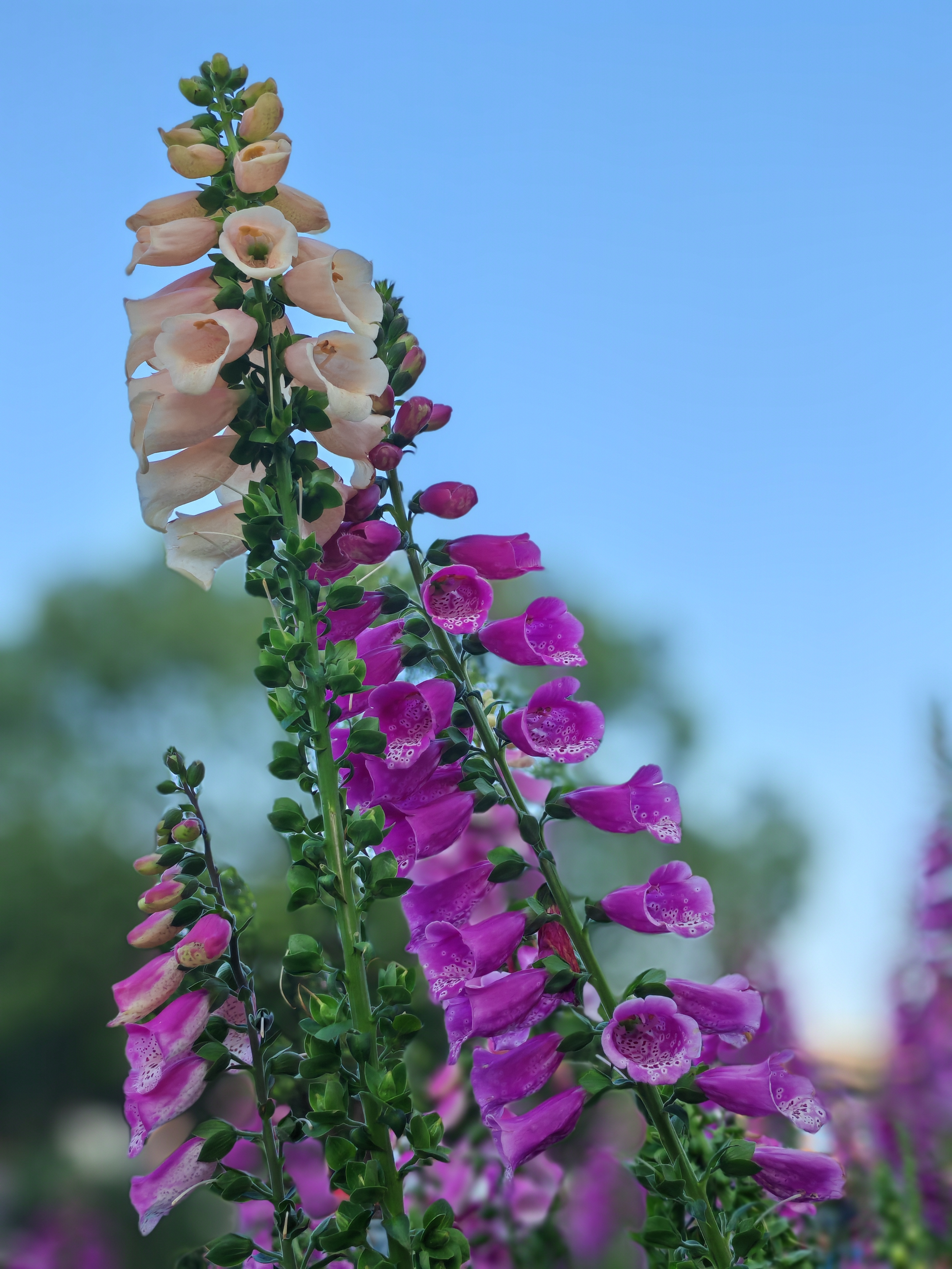 毛地黄紫穗摇曳,蓝天绿叶间撞见春日花海~随手一拍,就是自然系壁纸!