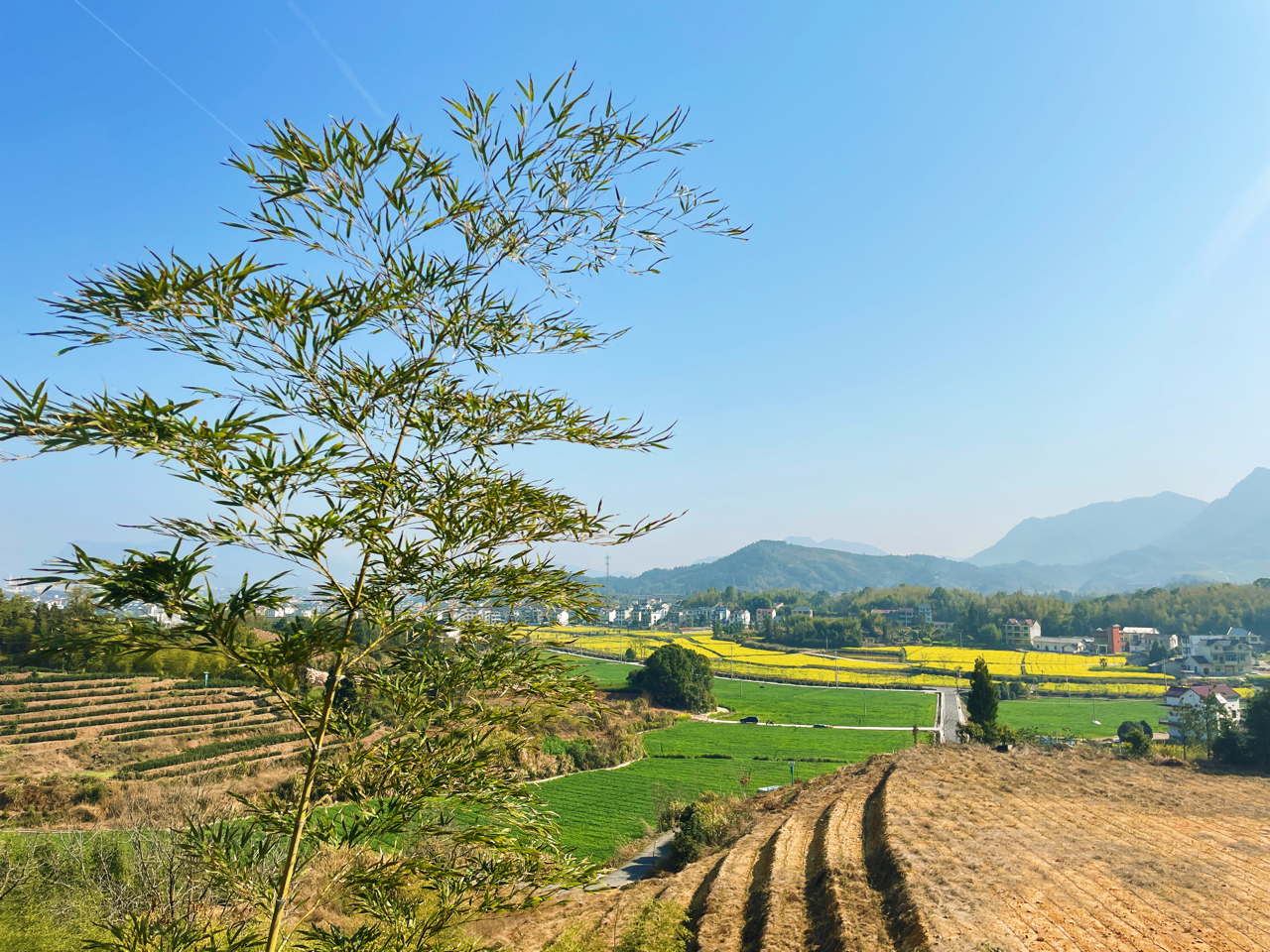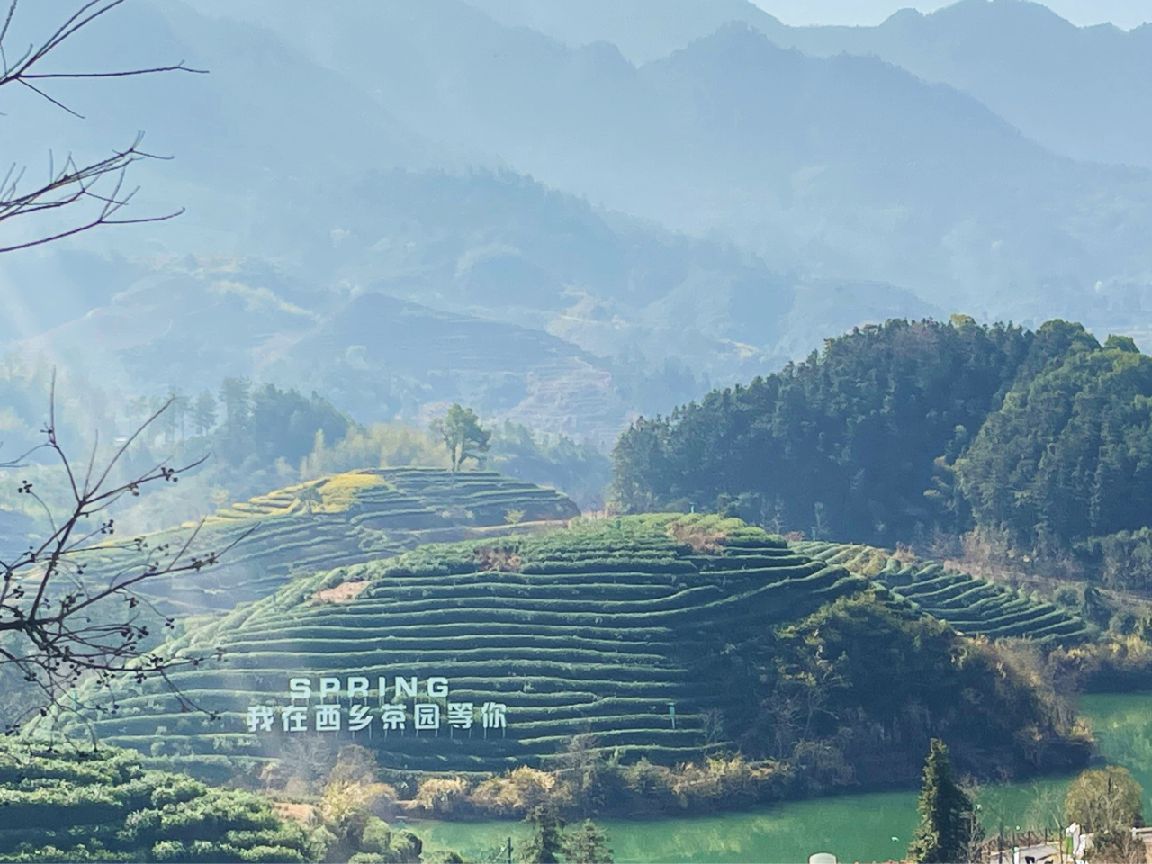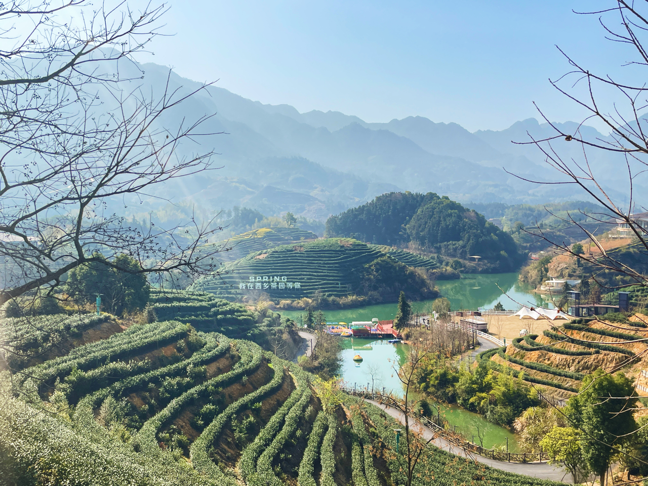 踏春——建德大同稻香小镇,西乡茶园 西乡春日随手拍:梯田茶园、油菜花海、心形雕塑,茶山倒映湖面,美得像幅画。