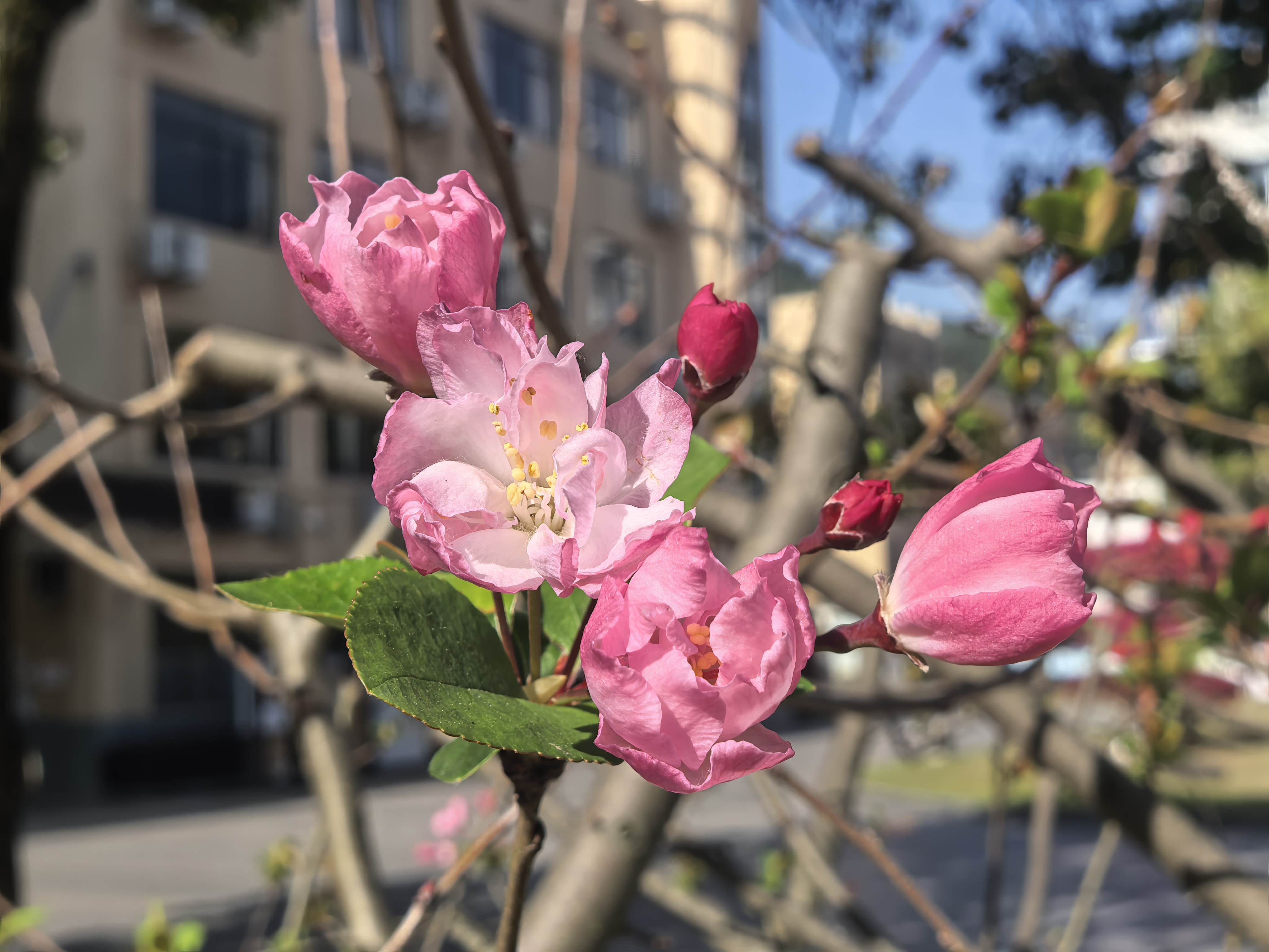 樱花粉、丁香紫、海棠白,校园春日花事正浓~听雨轩前,随手一拍都是温柔滤镜!