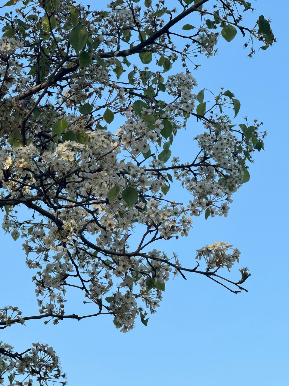 梨花如雪,缀满青枝;蓝天为幕,风过处,春在枝头悄然盛放。