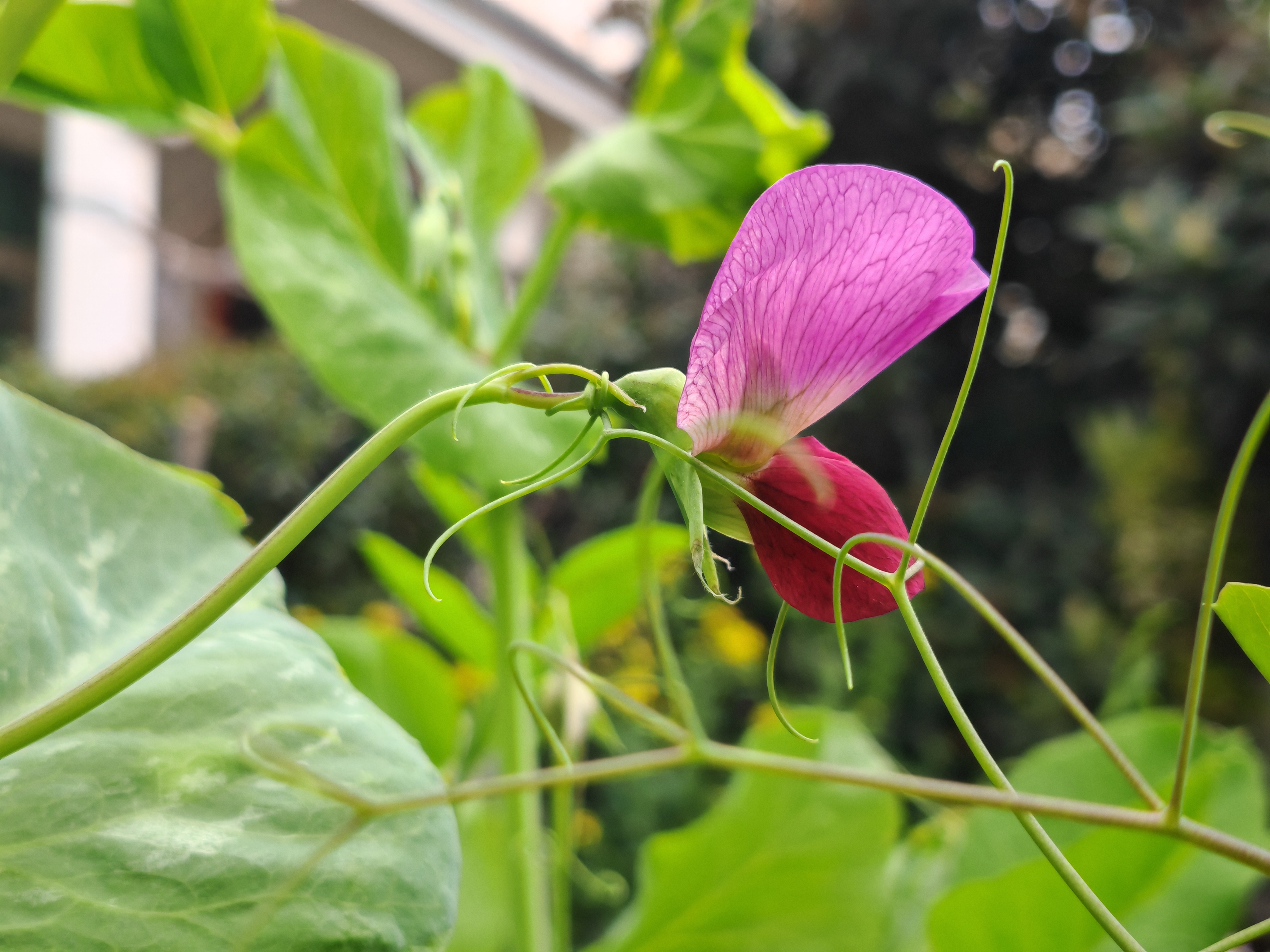 豌豆花开了!紫瓣绿叶藤蔓间,春日小花园里最灵动的蝶影~随手一拍都是春天的味道🌸