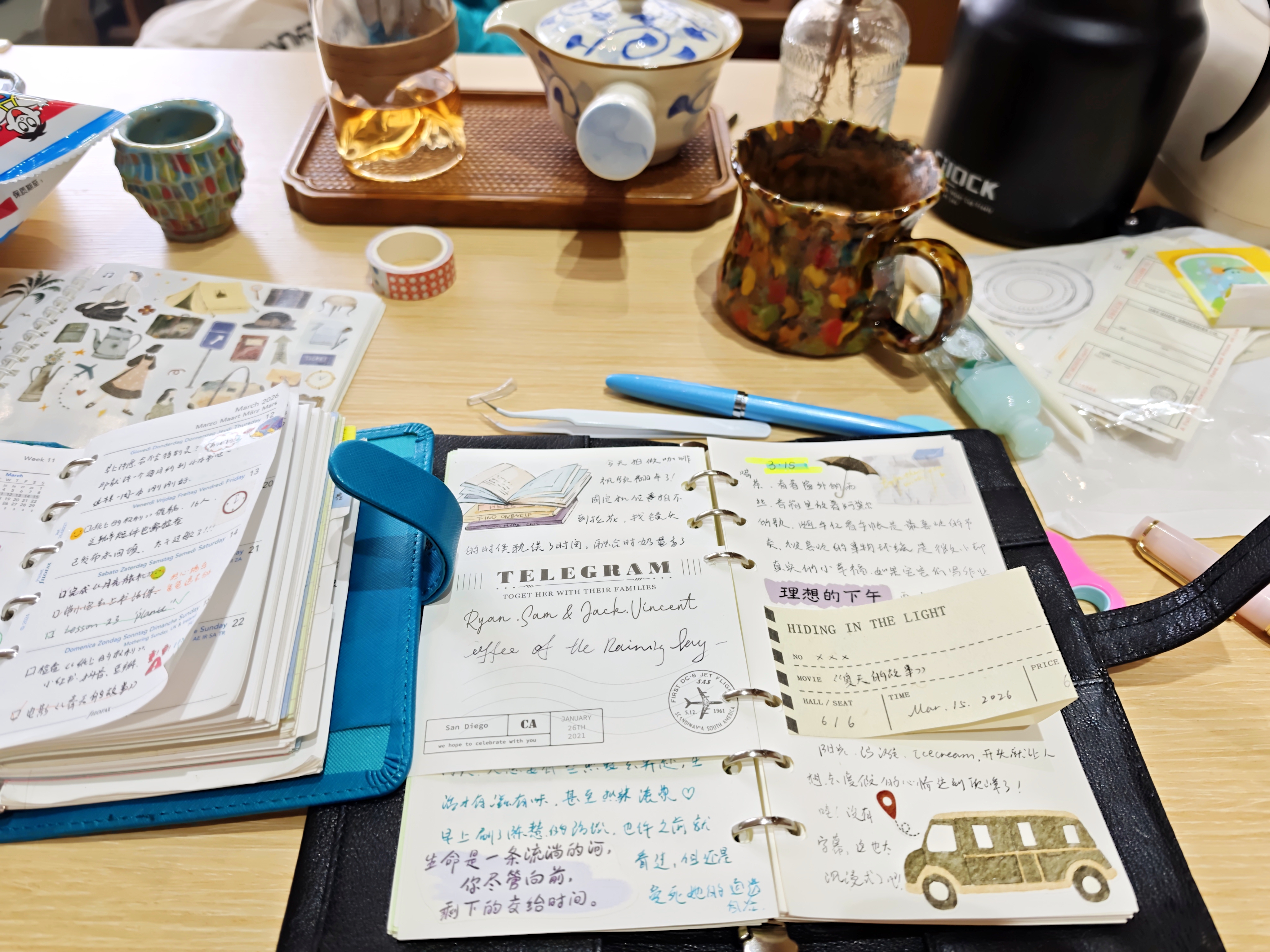 下雨天 煮咖啡,喝茶 看电影,写手账 被喜欢的事物包围 是微小却幸福的日常