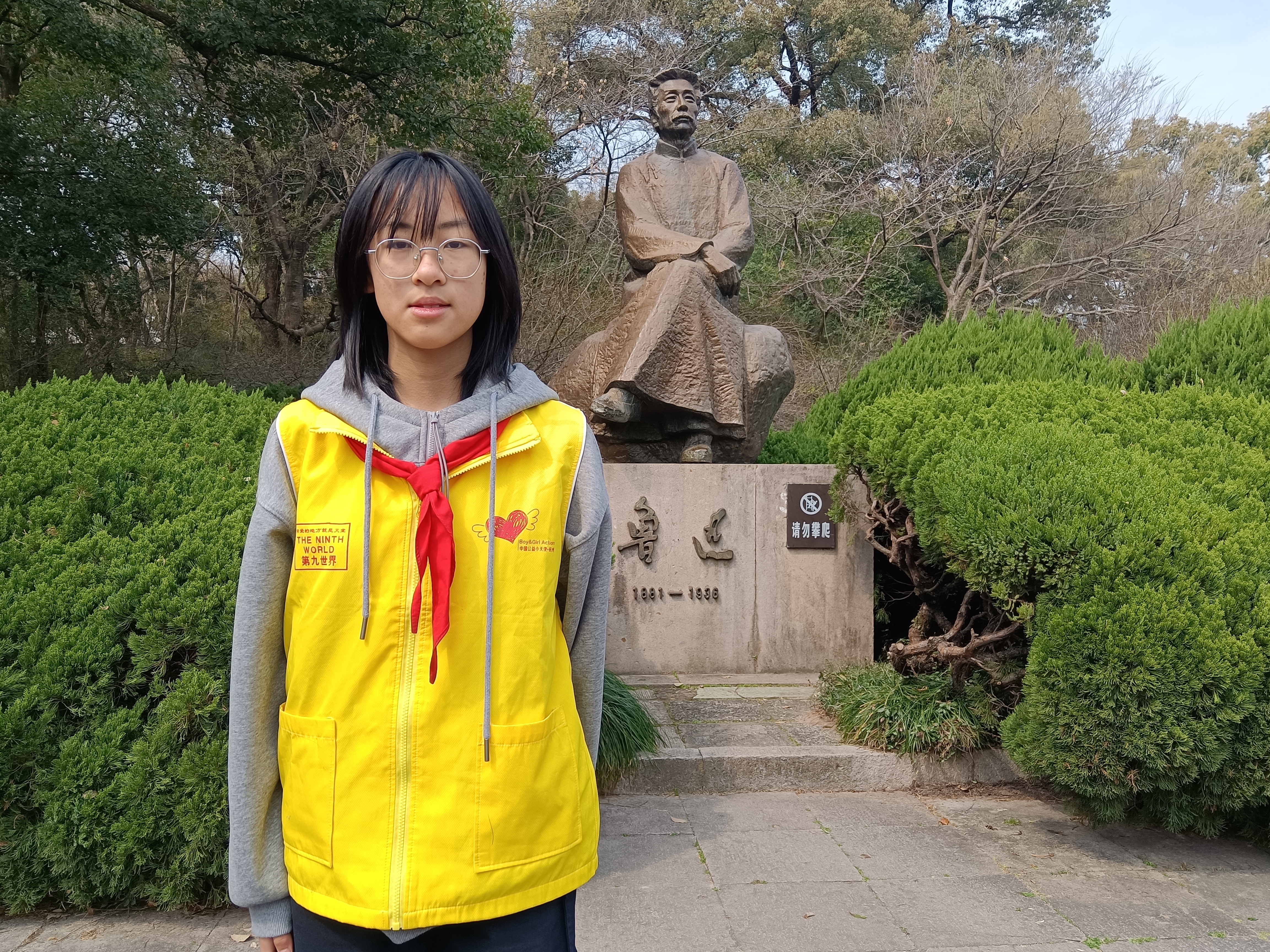 今天,我有幸参加了红色孤山讲解志愿服务培训。 跟着讲解员老师,我们在秋瑾墓前缅怀巾帼风骨,于中山公园感悟家国情怀,在白苏二公祠品读两位“老市长”的治湖功绩,向鲁迅雕塑致敬文人担当。 一路行走,深入了解孤山的人文底蕴,收获满满。以志愿之声传孤山文脉,以赤子之心讲红色传奇,未来我也会将这些红色故事讲给更多人听。 ——杭州公益小天使黄妤菲