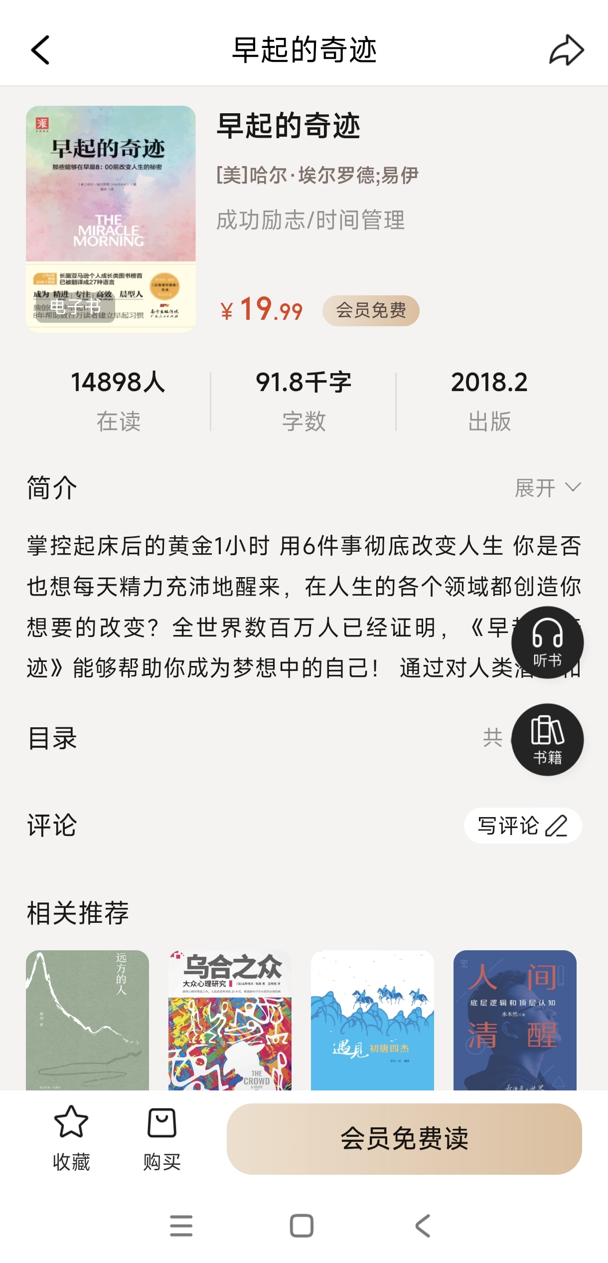 《早起的奇迹》是一本聚焦于通过改变晨间习惯来重塑人生轨迹的励志作品,书中金句频出,充满力量与启发,激励无数读者的经典语录:奇迹,就在早起的瞬间发生。——强调行动的起点即改变的开始。掌控清晨的人,才能改写自己的命运剧本。——将清晨视为人生主动权的象征。 你如何度过每天的第一个小时,决定你能成为什么样的人。——点明晨间习惯对人格塑造的深远影响。 赖床不会让你更接近梦想,但早起会。——直击拖延心理,唤醒行动力。 早晨6点的专注1小时,抵得上深夜疲惫的3小时。——揭示高效时段的价值,鼓励利用清晨黄金时间。 自律决定生活状态,习惯塑造人生轨迹。——强调自律与习惯在人生中的基石作用。 你贪恋的被窝温度,正在冷却你的人生上限。——用形象比喻警示安逸对潜能的抑制。 成功者的日常是‘承诺驱动’,普通人的日常是‘情绪驱动’。——指出成功者与普通人在行为动机上的本质差异。 自我肯定不是谎言,而是对潜意识的重新编程。——鼓励通过积极心理暗示重塑自信。 你起不来的早晨,总有人能起;你吃不了的苦,总有人能吃。——揭示差距源于对清晨态度的不同。这些句子不仅语言精炼、富有哲理,更蕴含着强大的心理驱动力,适合每日晨起时诵读,帮助建立积极心态与高效行动力。书中通过6件事体系,引导读者从身体、心理、精神、情感、智力。