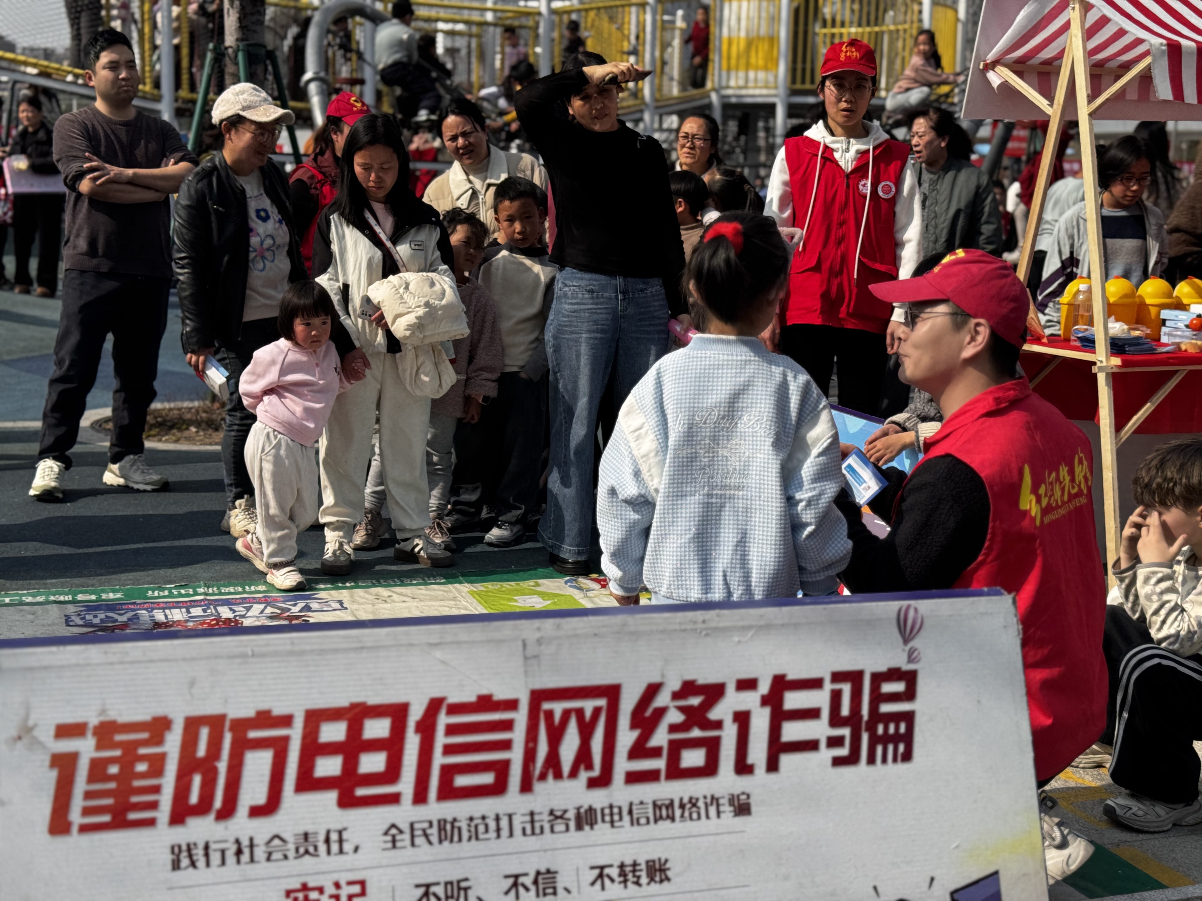 #潮圈反诈365# 【反诈宣传】3月15日下午,红领志愿者在“异乡情·同城爱”公益活动上,开展“真人飞行棋”反诈宣传活动。