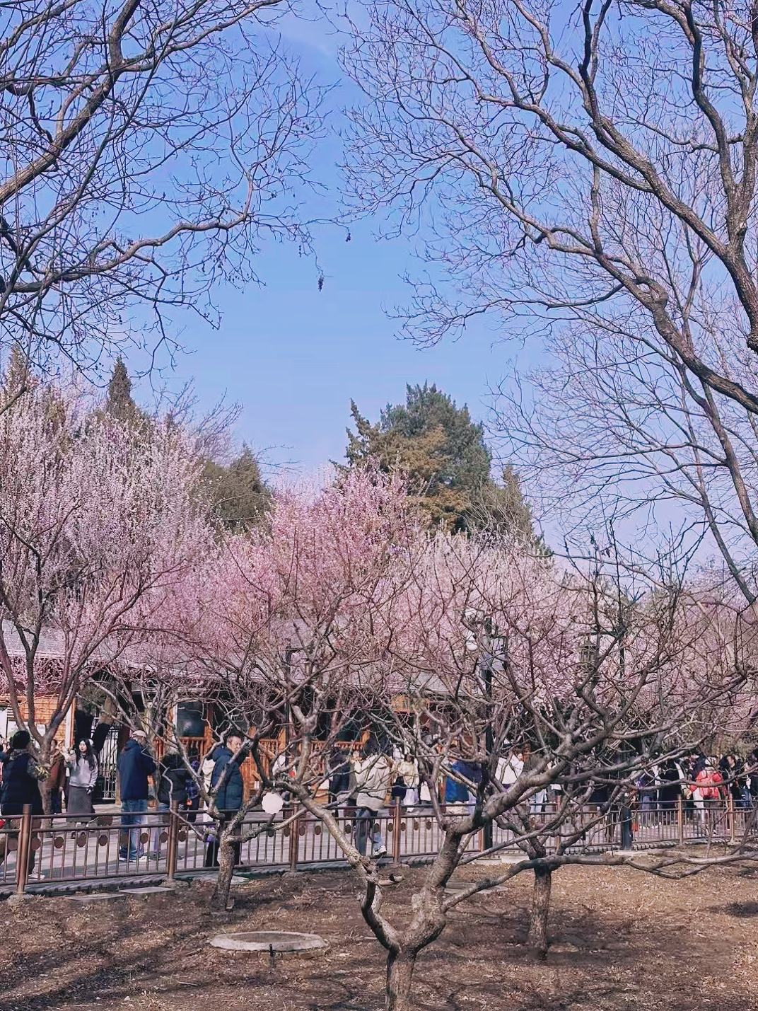 春烟—— 晴光暖透枝桠,浅粉春花悄然绽放。花影疏淡,如云似雾,笼着整片林麓。远山含黛,近水含情。 枯褐枝干托着细碎花簇,素蕊轻颤,似有若无的芬芳随微风漫溢。游人漫步花径,衣袂轻拂,与这淡淡花烟相融。 天地间尽是清浅春意,不浓不烈,却沁人心脾。这般初春盛景,恰是人间好时节,满袖皆是草木与花香的清欢。