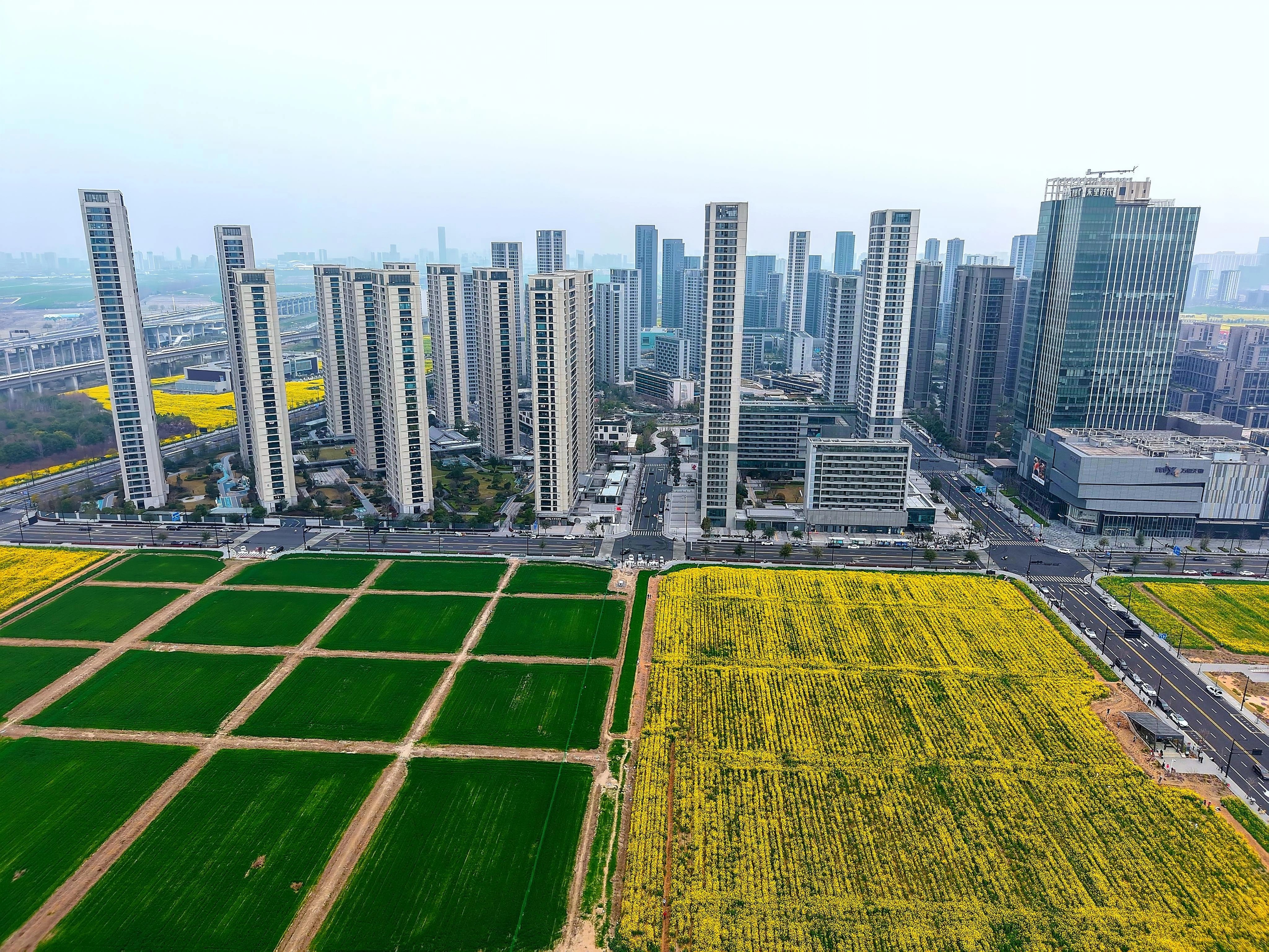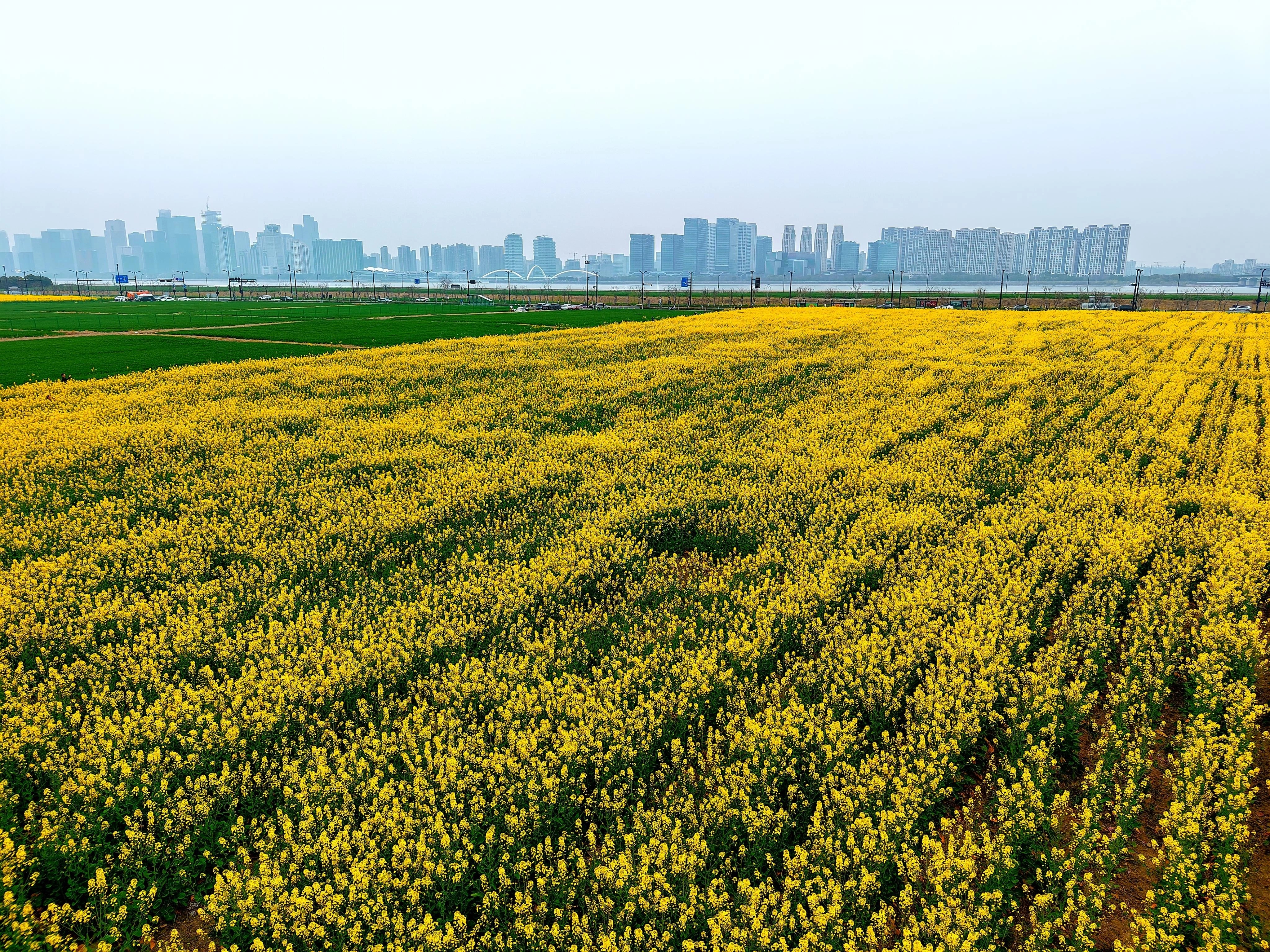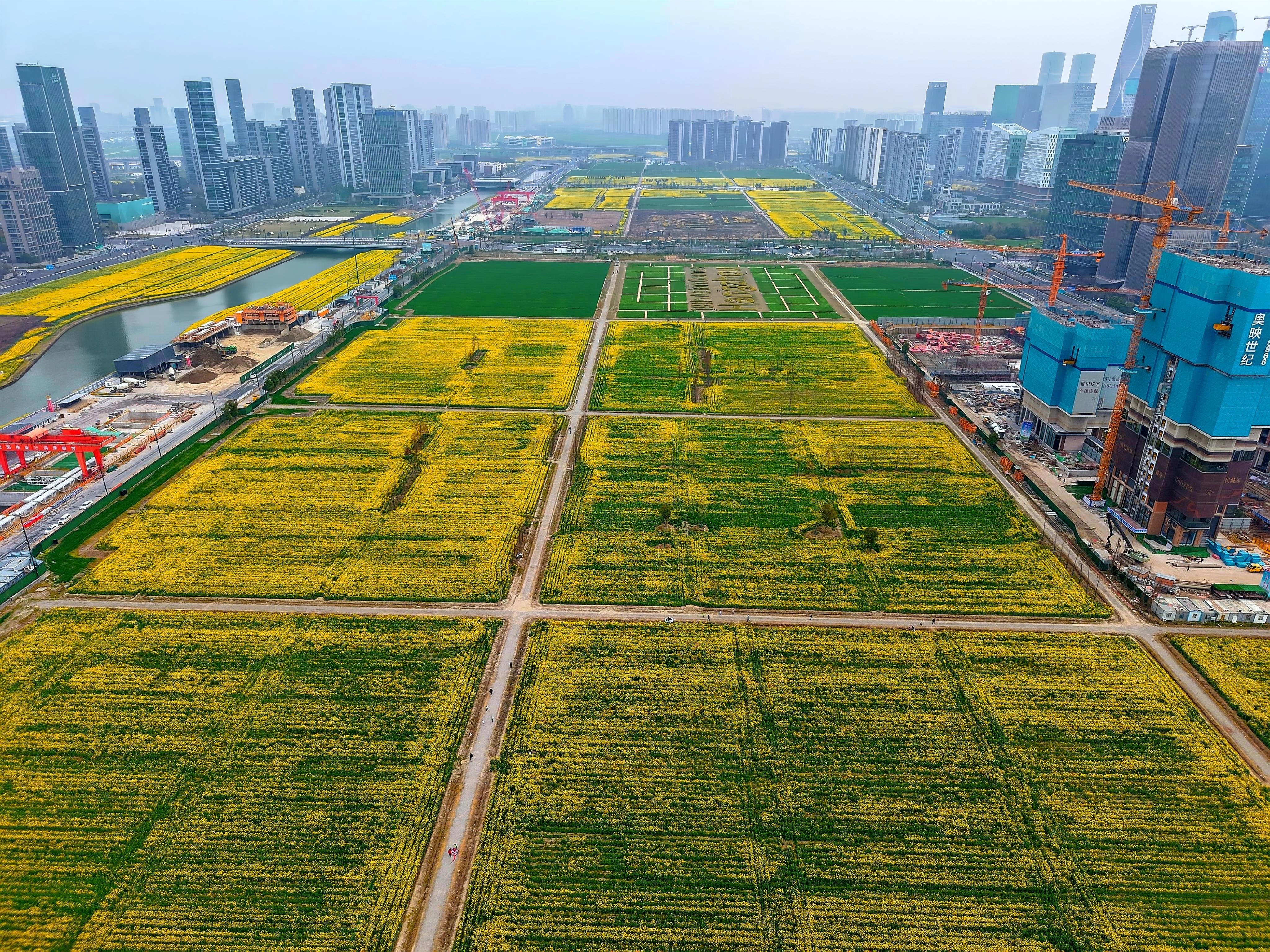 都市农田 钱塘江南岸,金色的油菜花海和绿油油的麦苗是春天的具象,为大都市增添了勃勃生机。