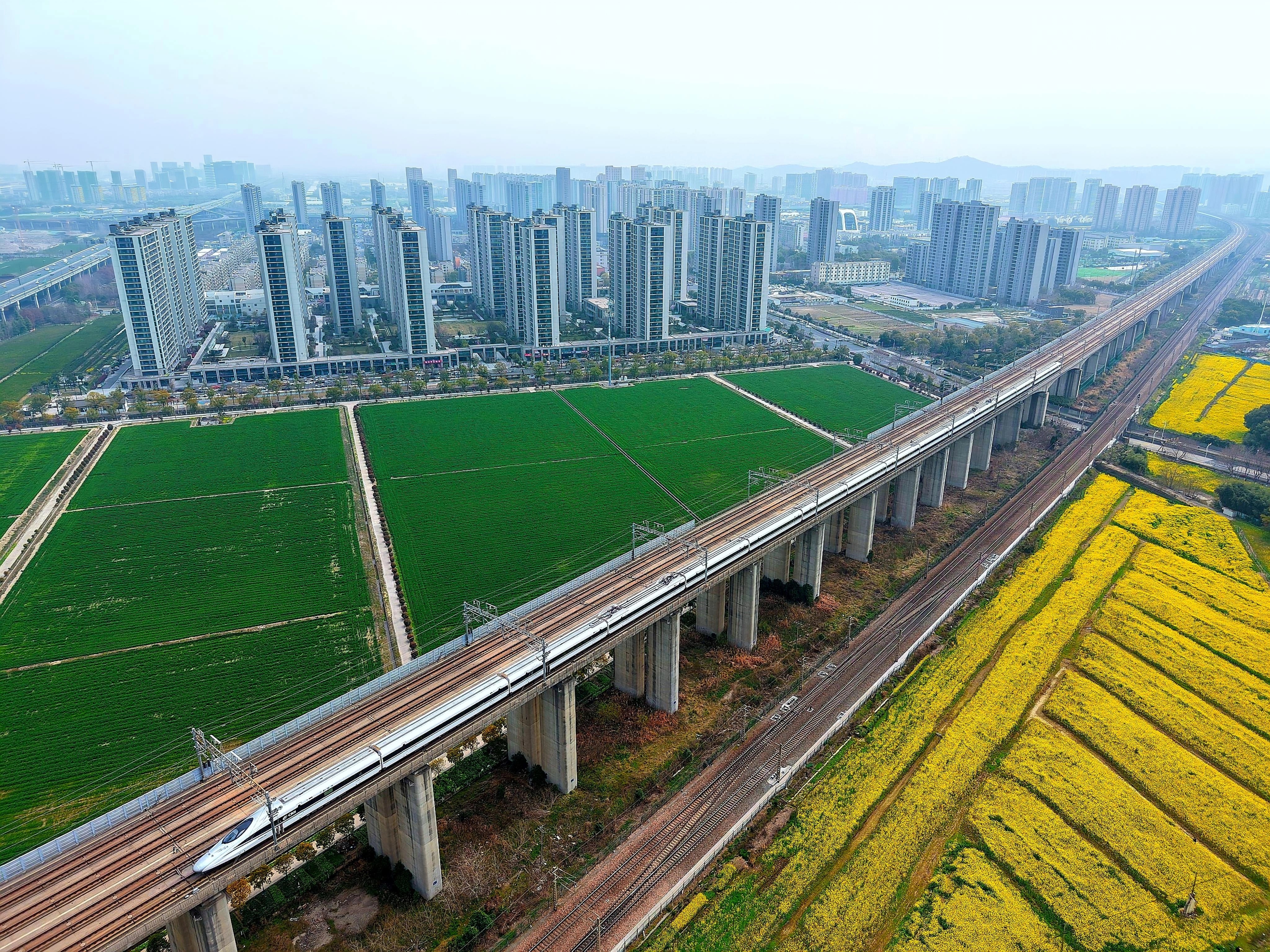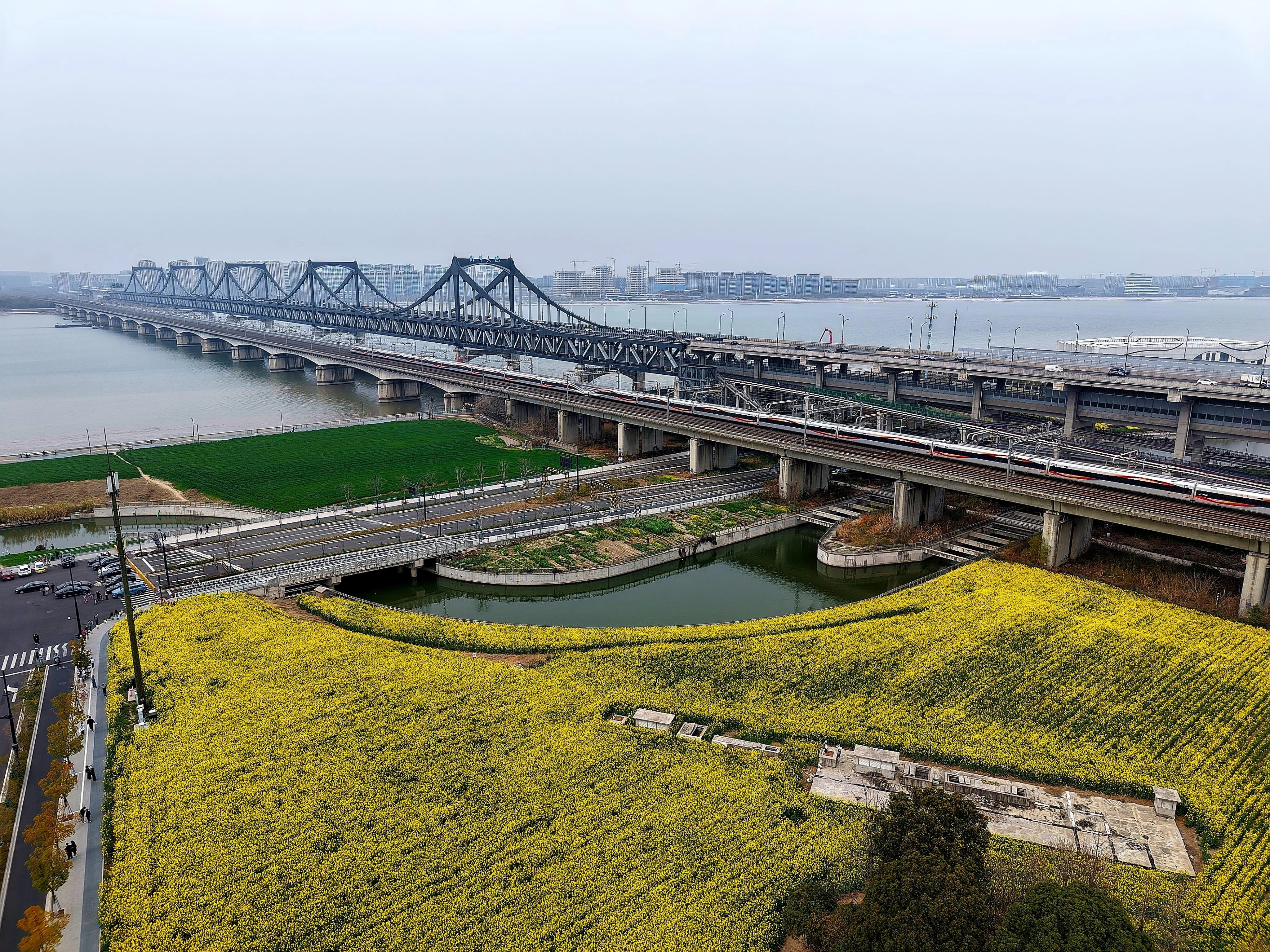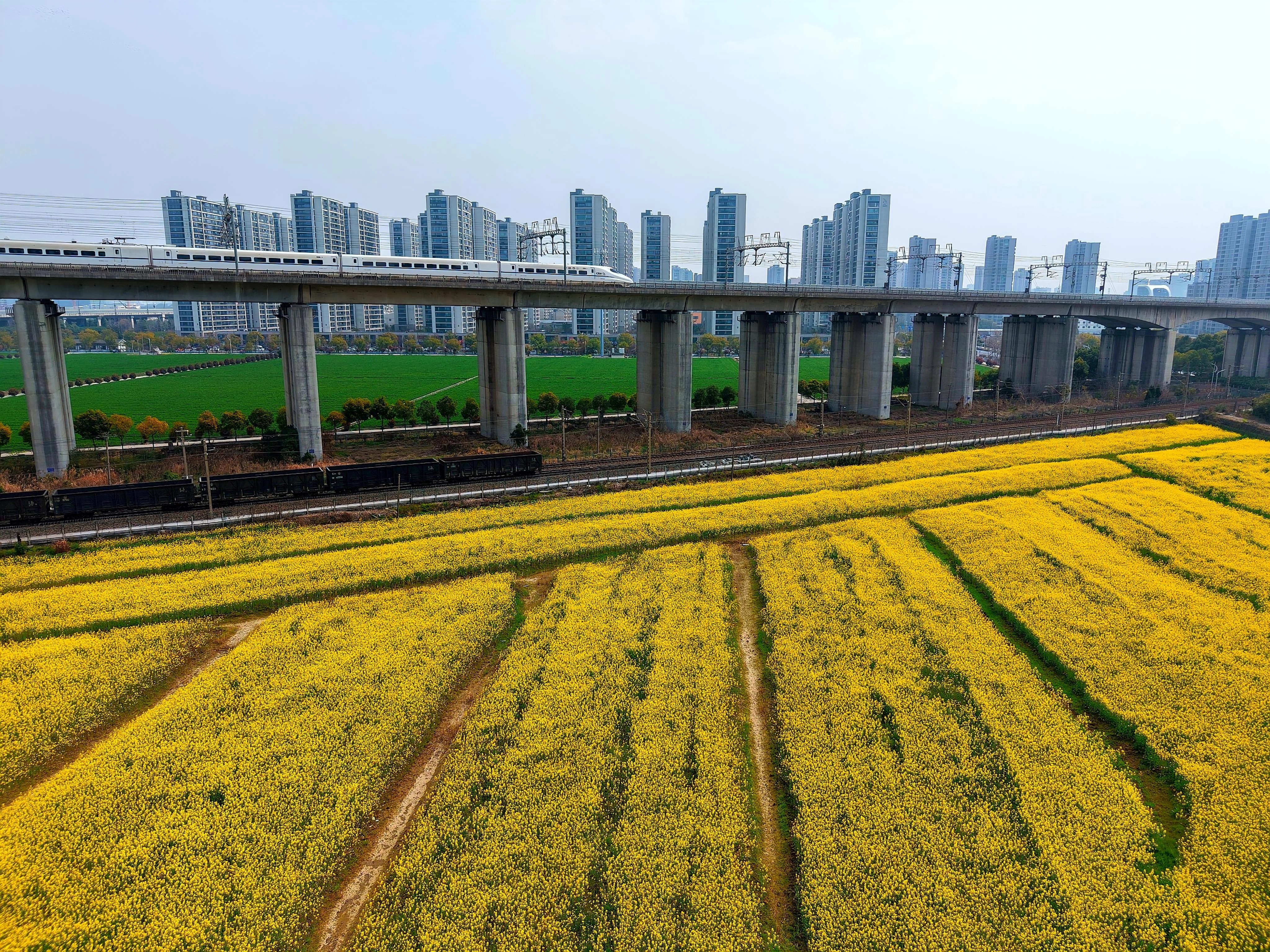 都市农田 钱塘江南岸,金色的油菜花海和绿油油的麦苗是春天的具象,为大都市增添了勃勃生机。