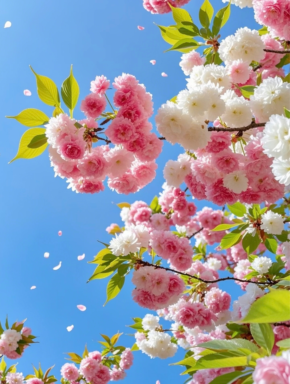 粉白花枝吻着蓝天,八重樱在晴光里簌簌落成诗——春的快门,只按一次就足够。