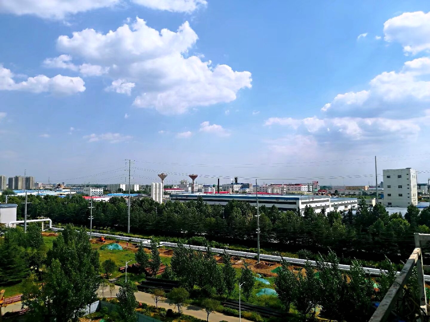 云卷云舒,天朗气清。工业建筑与盎然绿意相融,平凡的角落,也藏着天地辽阔的美好。