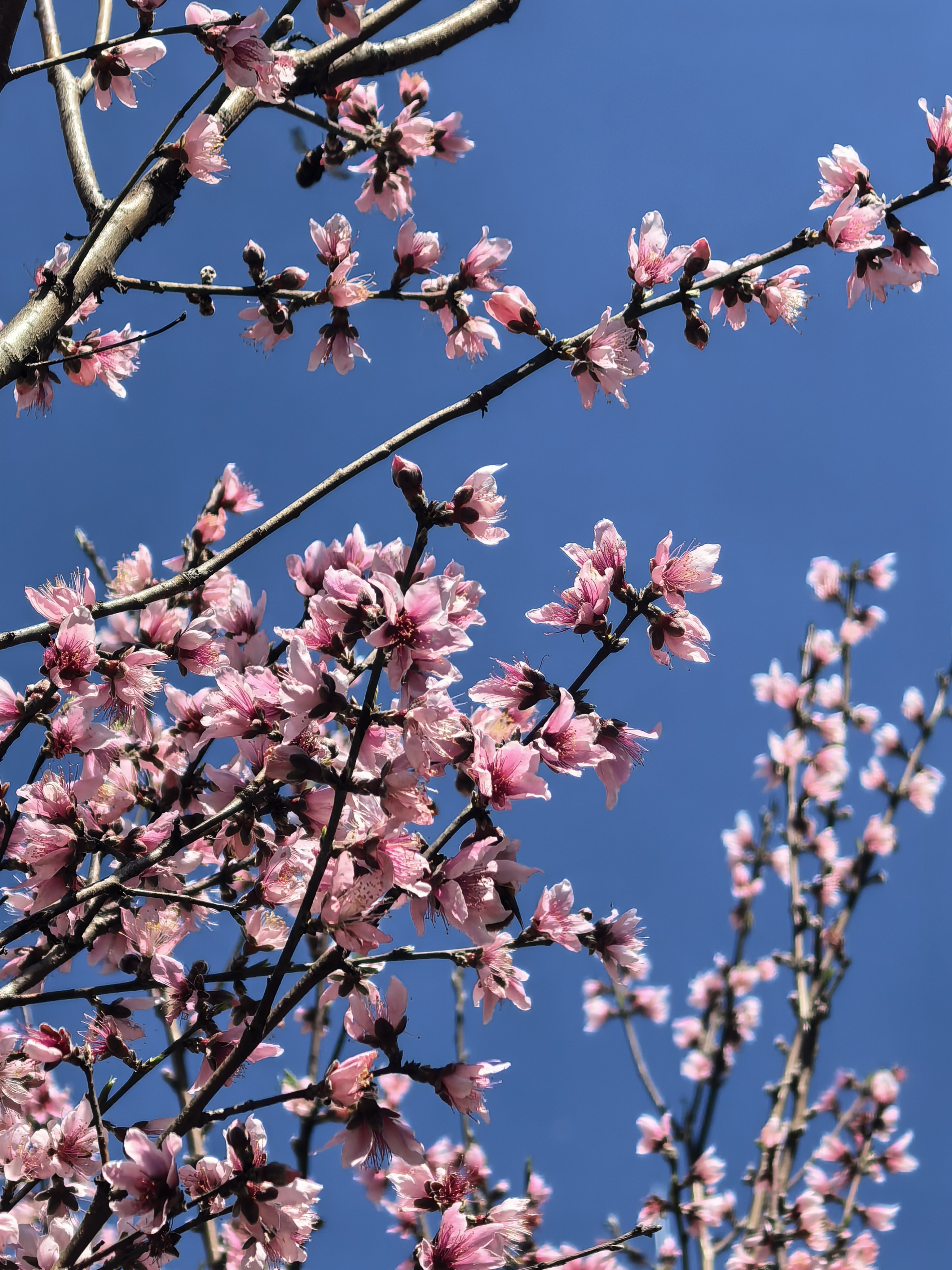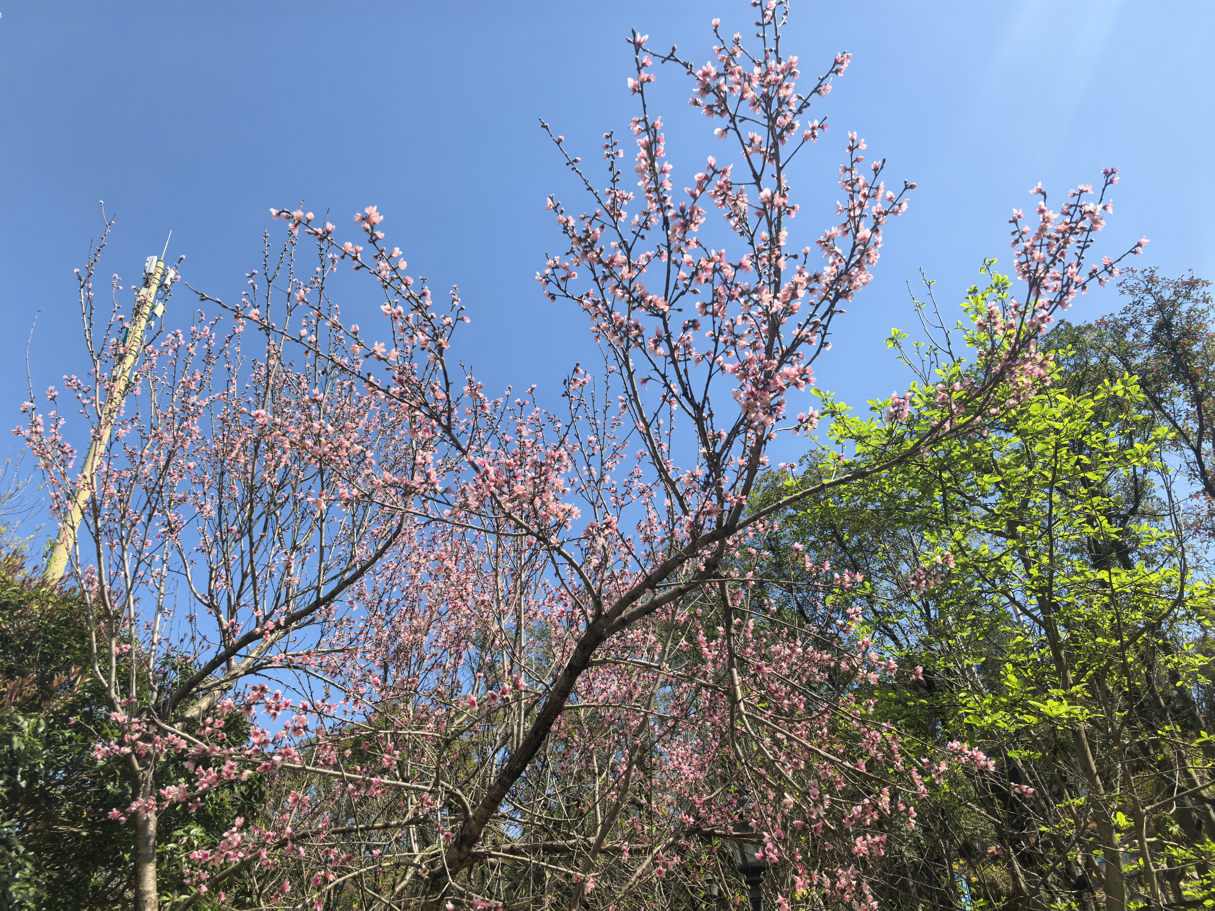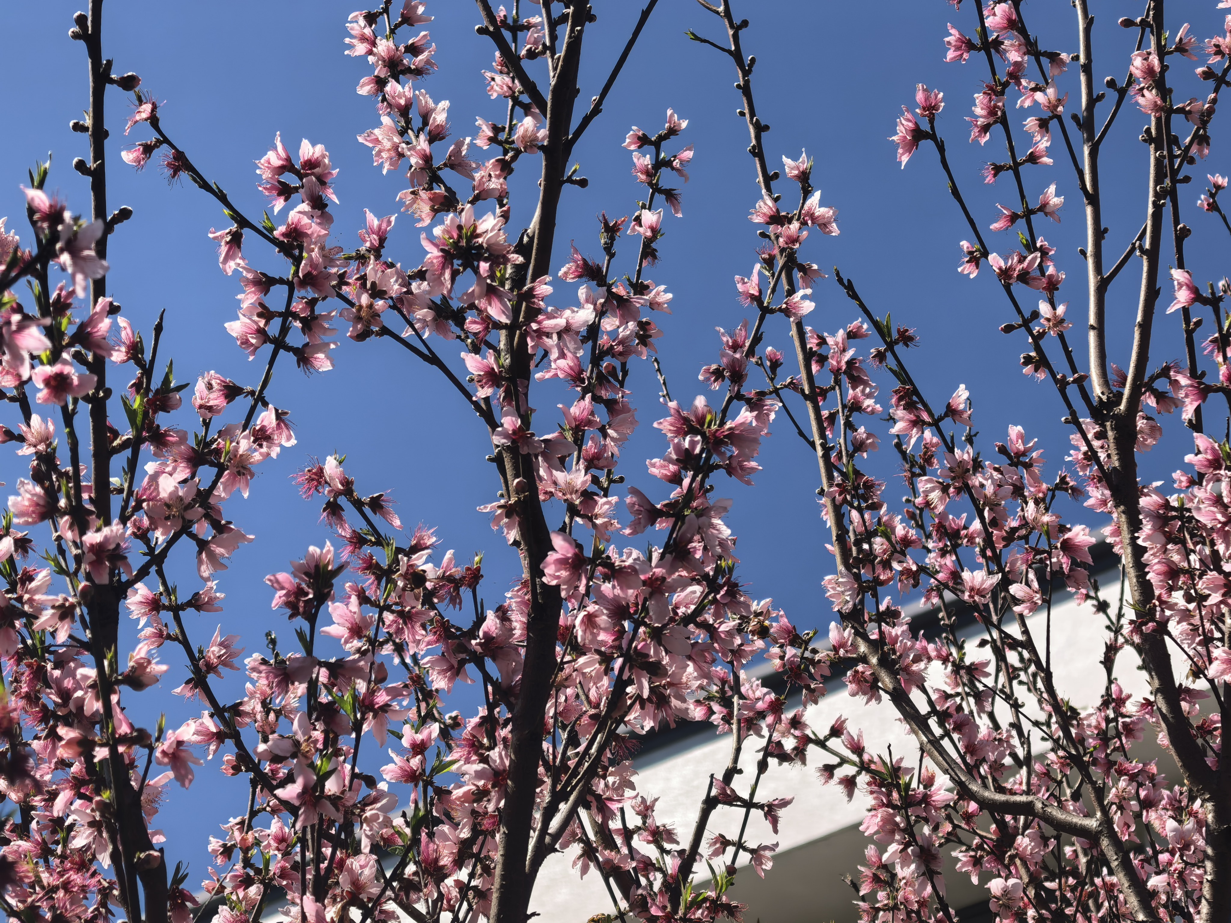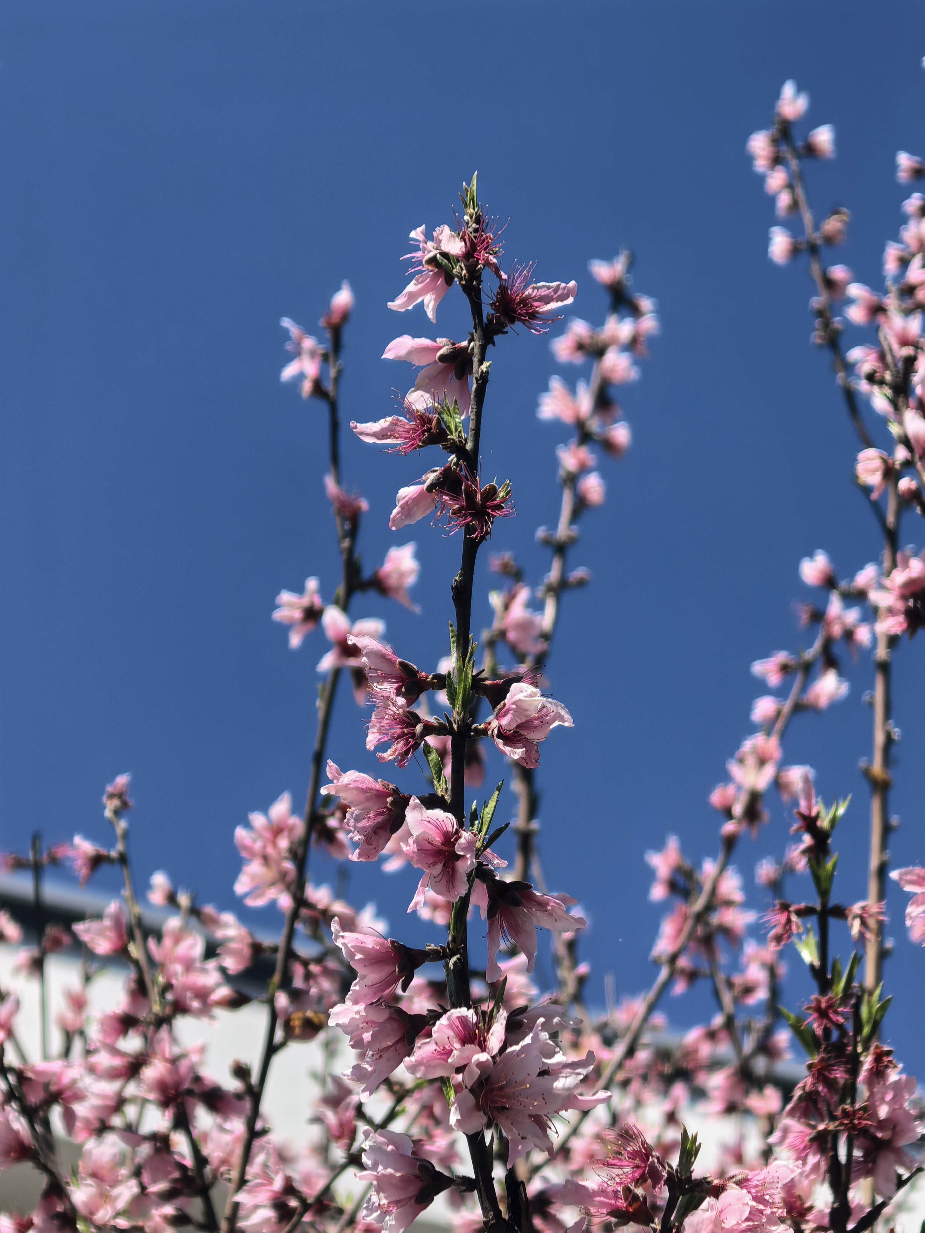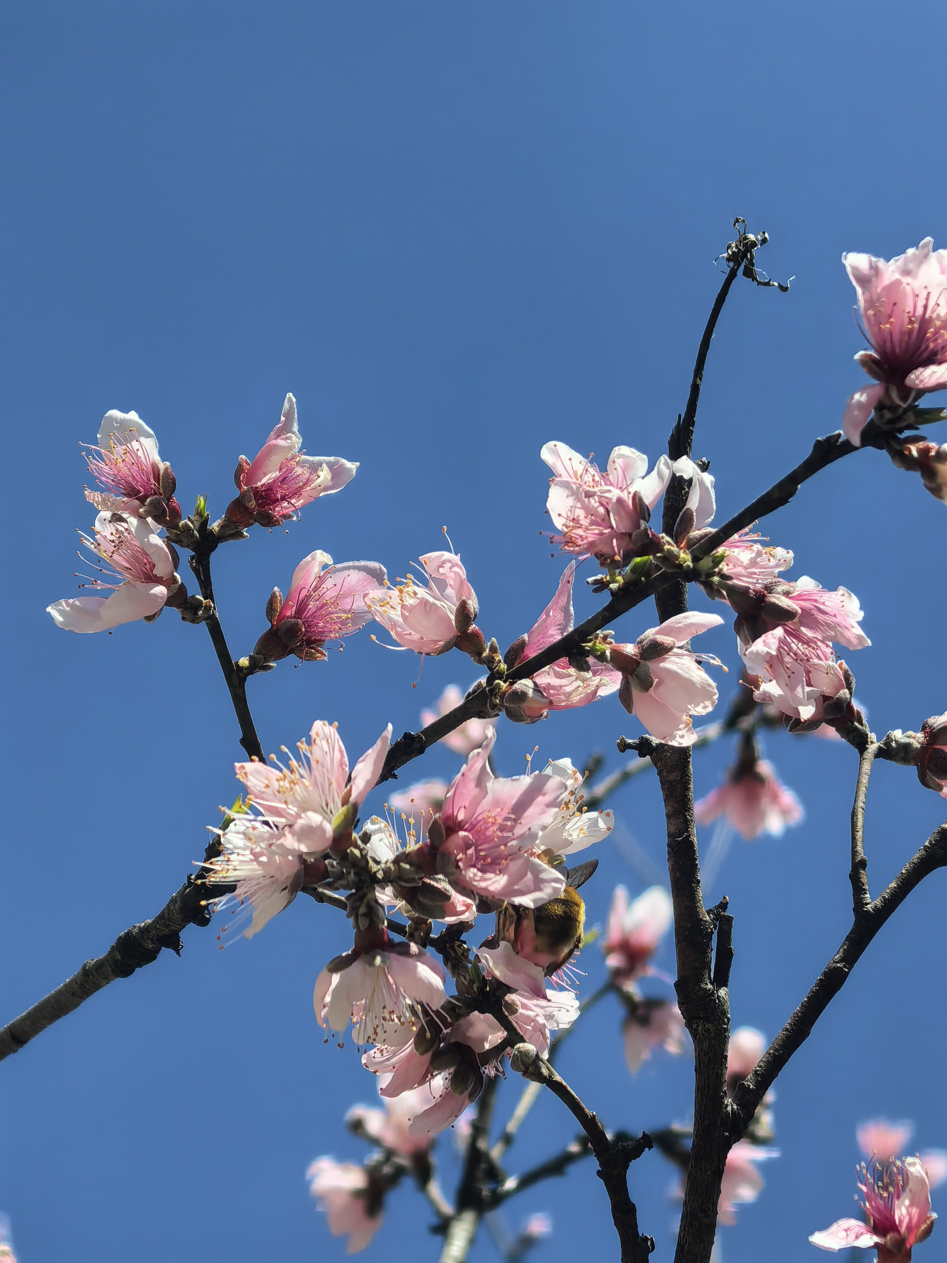桃花粉粉,蓝天当布景,蜜蜂忙得顾不上拍照~枝头闹春,快门一按,春天就定格啦!