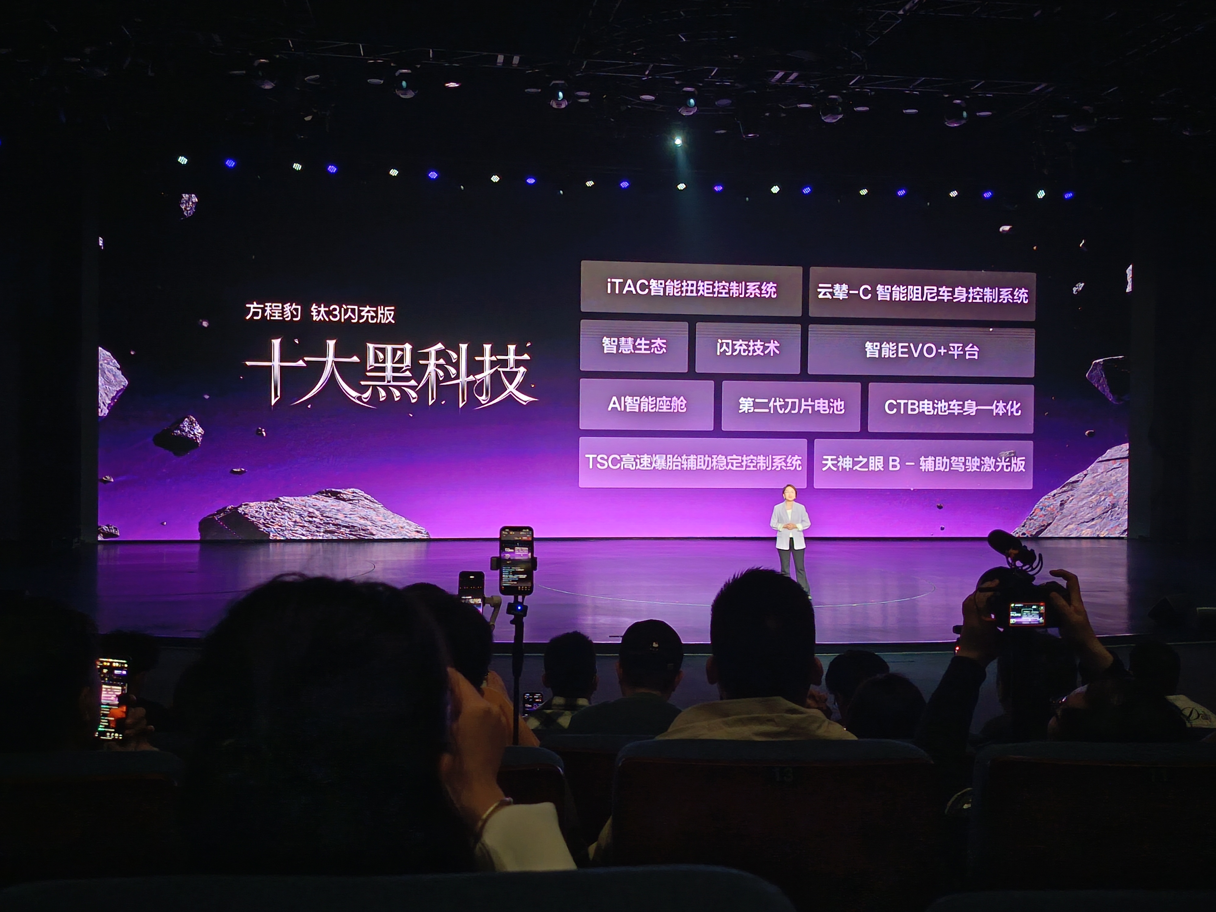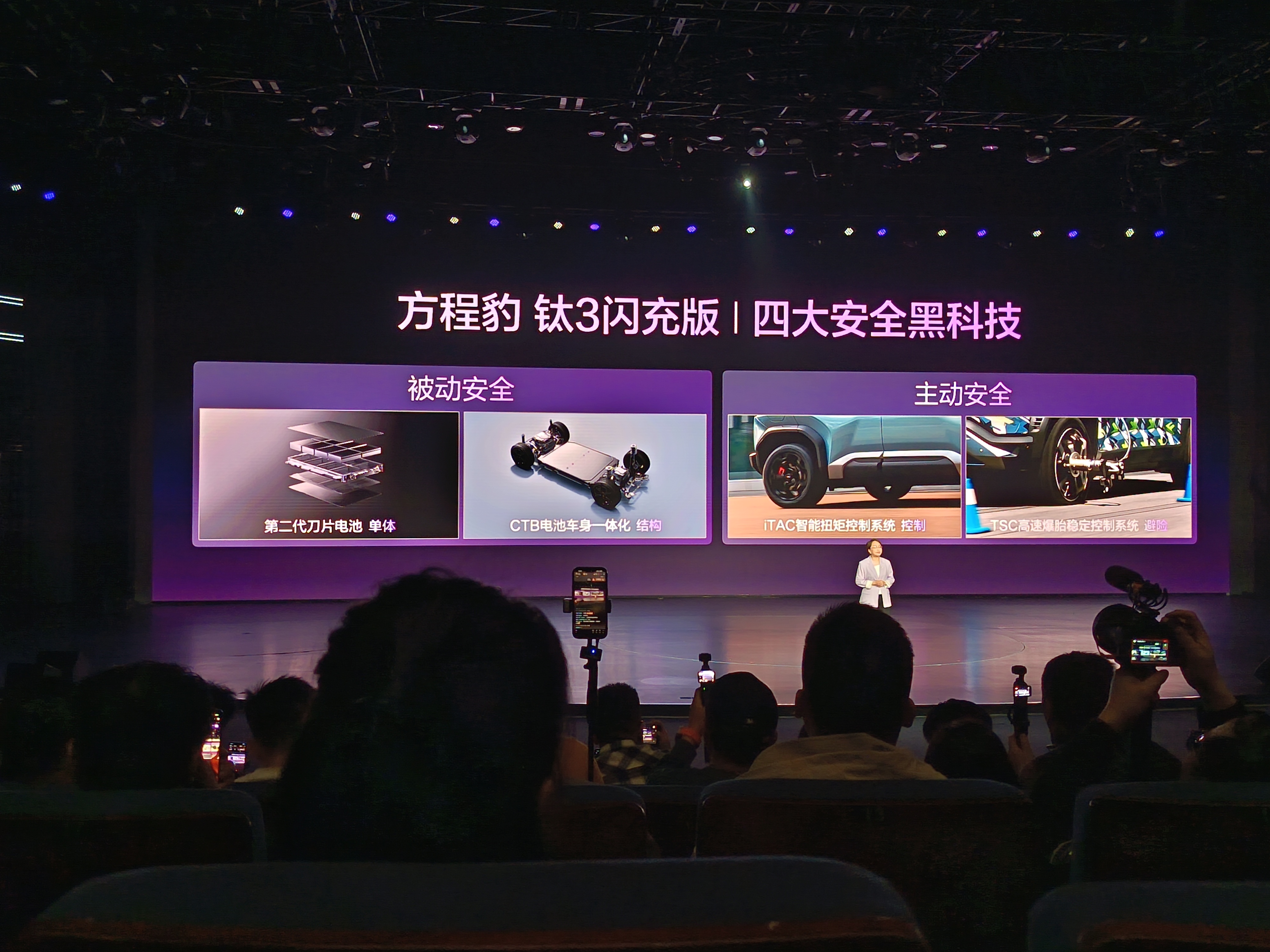 方程豹钛3新车搭载十大黑科技,黑科技打造豹力新体验,涵盖性能、安全与智能生态:安全层面配备第二代刀片电池、CTB电池车身一体化结构,搭配iTAC智能扭矩控制系统与TSC高速爆胎辅助稳定控制系统,兼顾被动防护与主动避险。 智能座舱方面,搭载AI智能座舱与全新DiLink UI,支持手车互联、智能语音及DeepSeek大模型,还共享钛7同款智慧生态,可连接游戏手柄、儿童安全座椅、运动相机等设备,拓展生活场景乐趣。