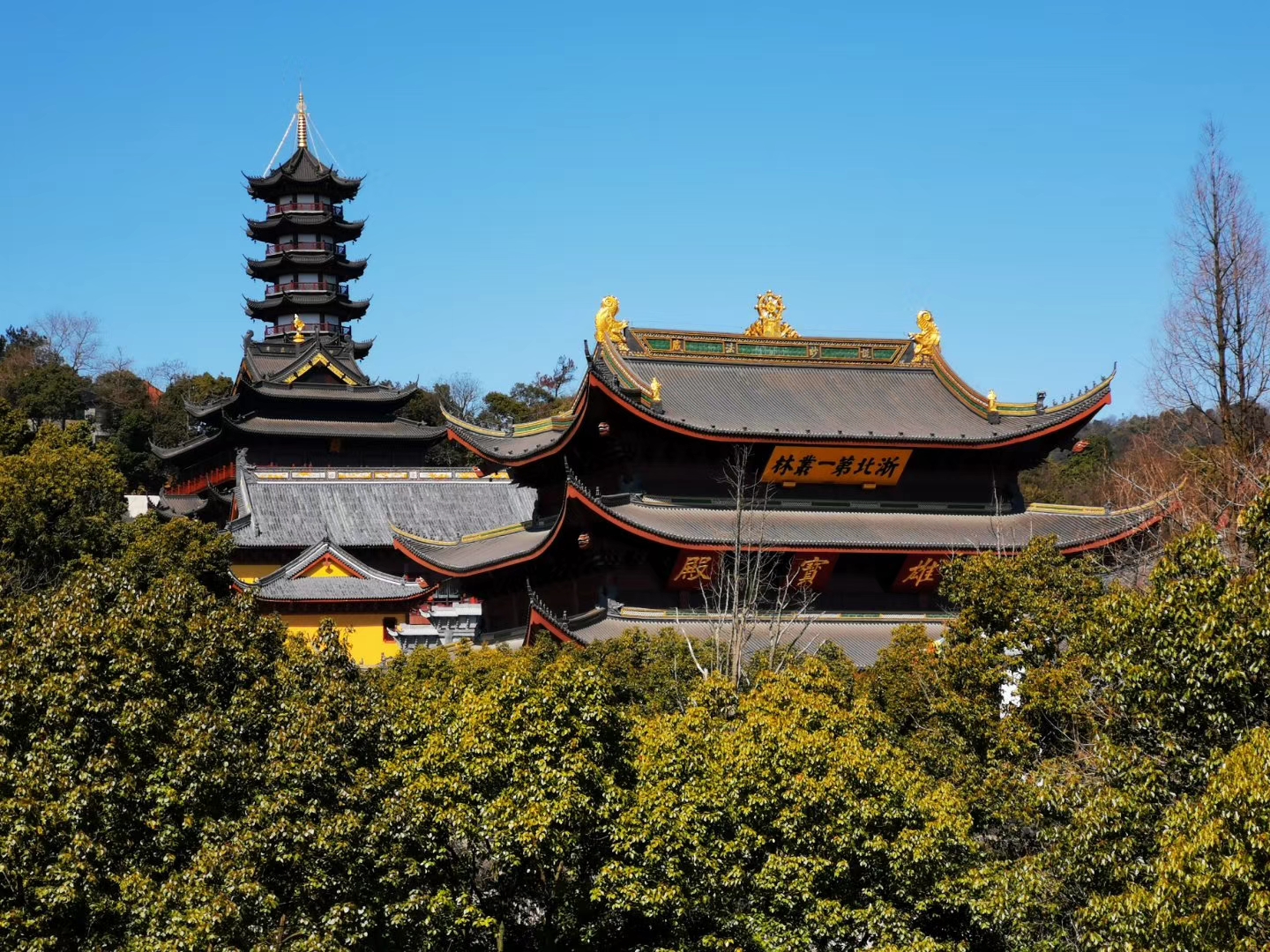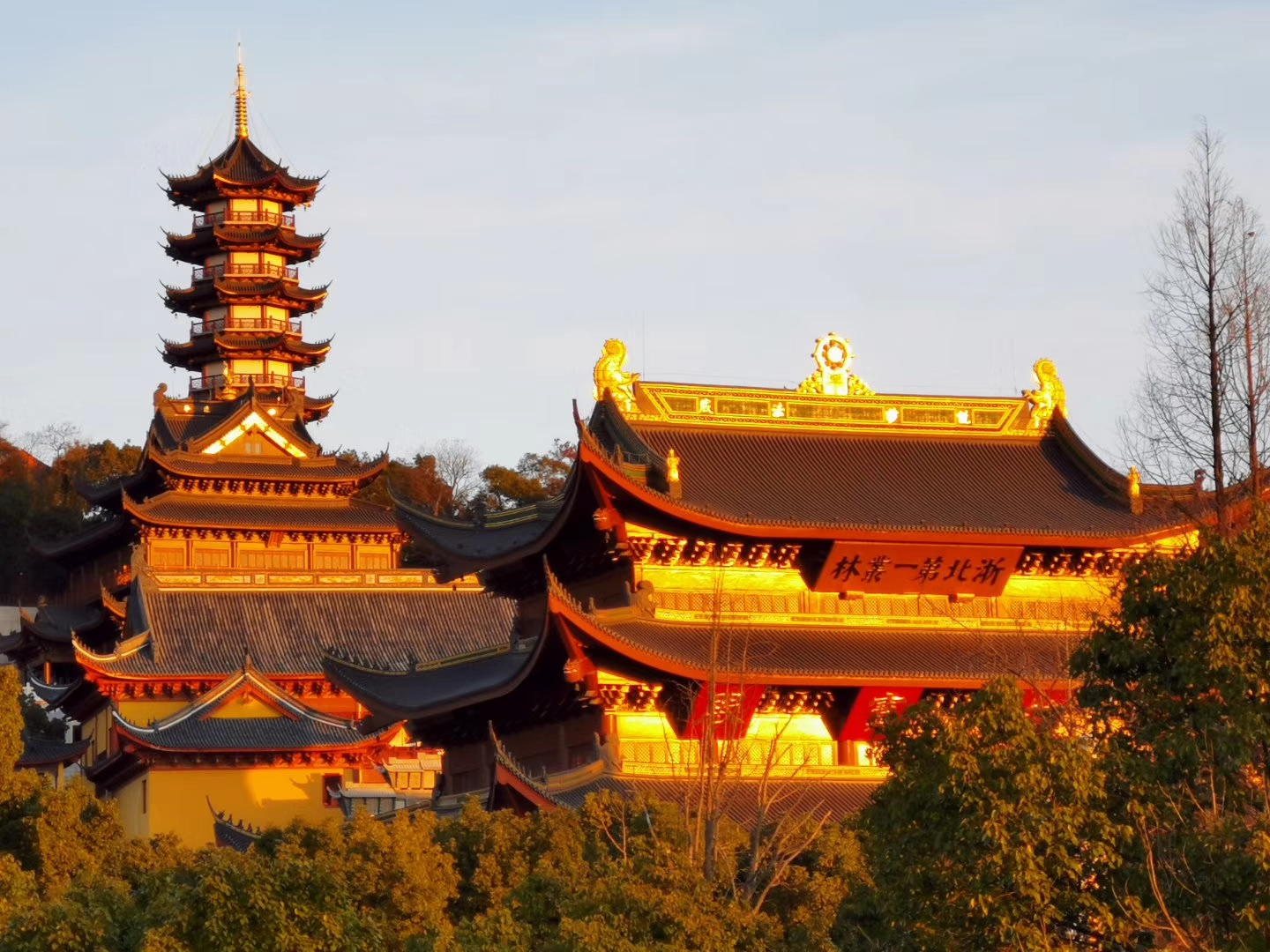🇨🇳浙北第一古刹法华寺(观音真身之地)不同时段风景线!#与潮新闻一起飞阅世界#