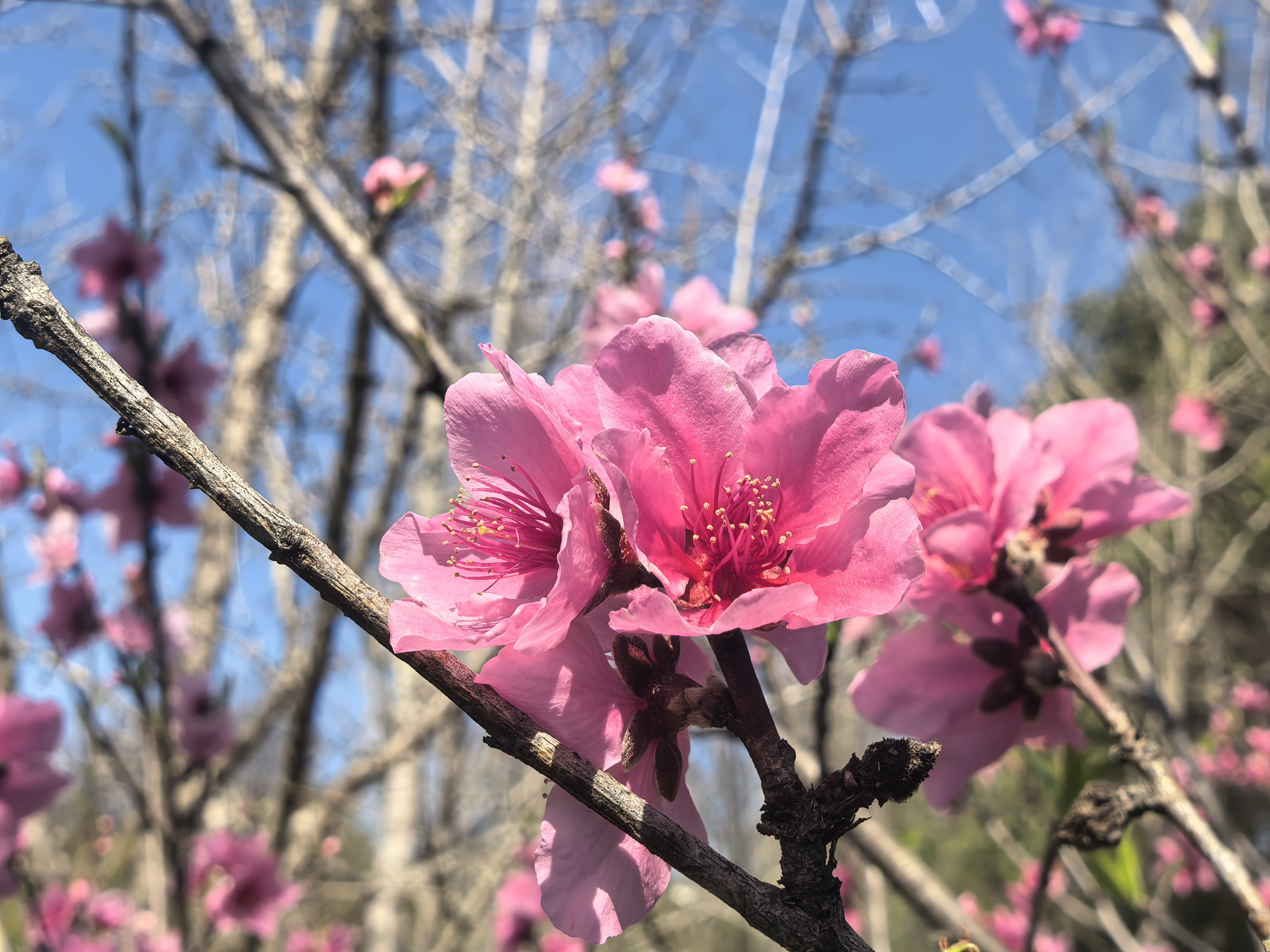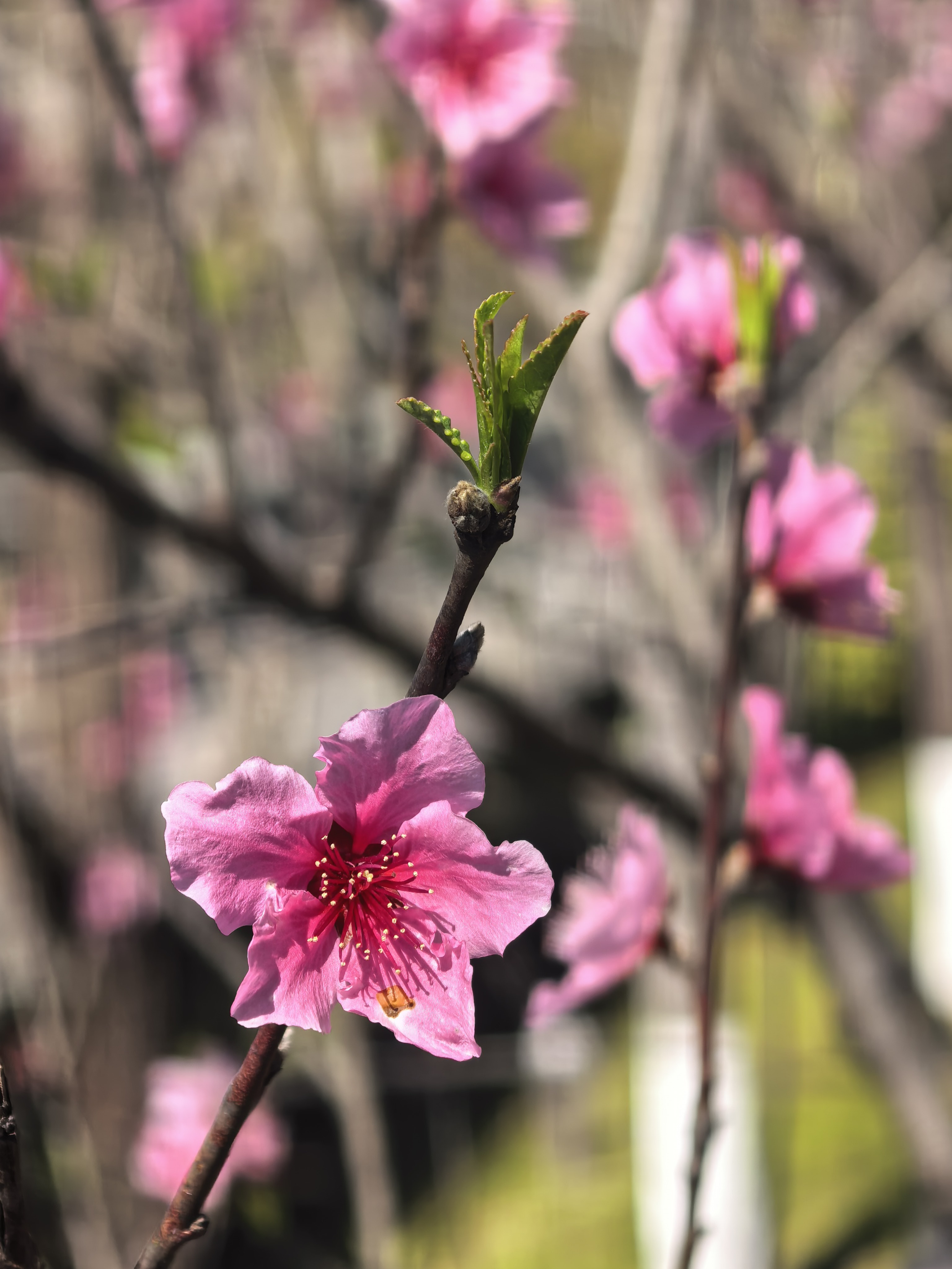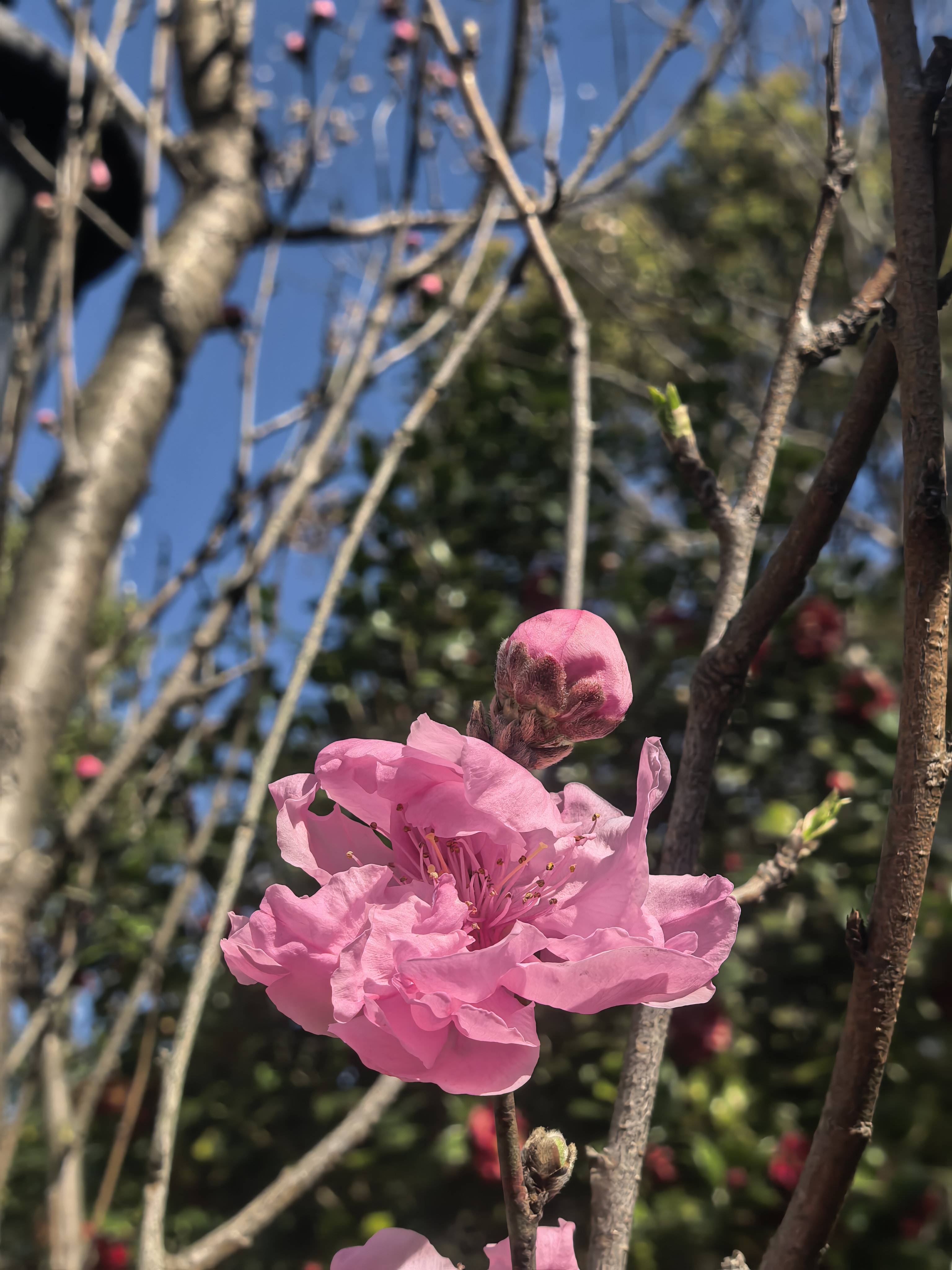 桃花樱花紫荆齐绽放,粉嫩花海配蓝天,木步道上光影斑驳,美得像打翻调色盘~