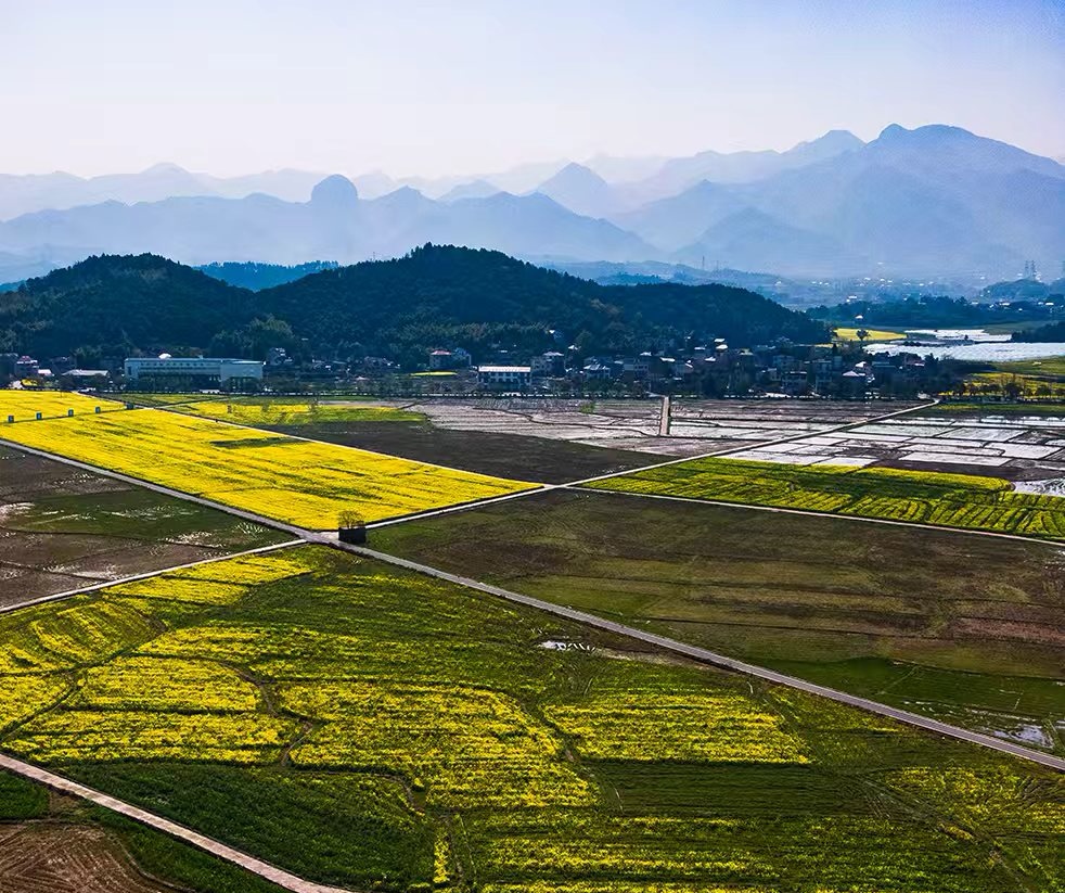 《鹧鸪天•大地诗行》 陌野铺宣雨润纱, 一犁烟水墨痕赊。 分畦裁出参差绿, 点萼催成错落花。 莺试嗓,笠牵霞, 老牛蹄印篆泥巴。 春风最是丹青手, 写到云边不忆家。