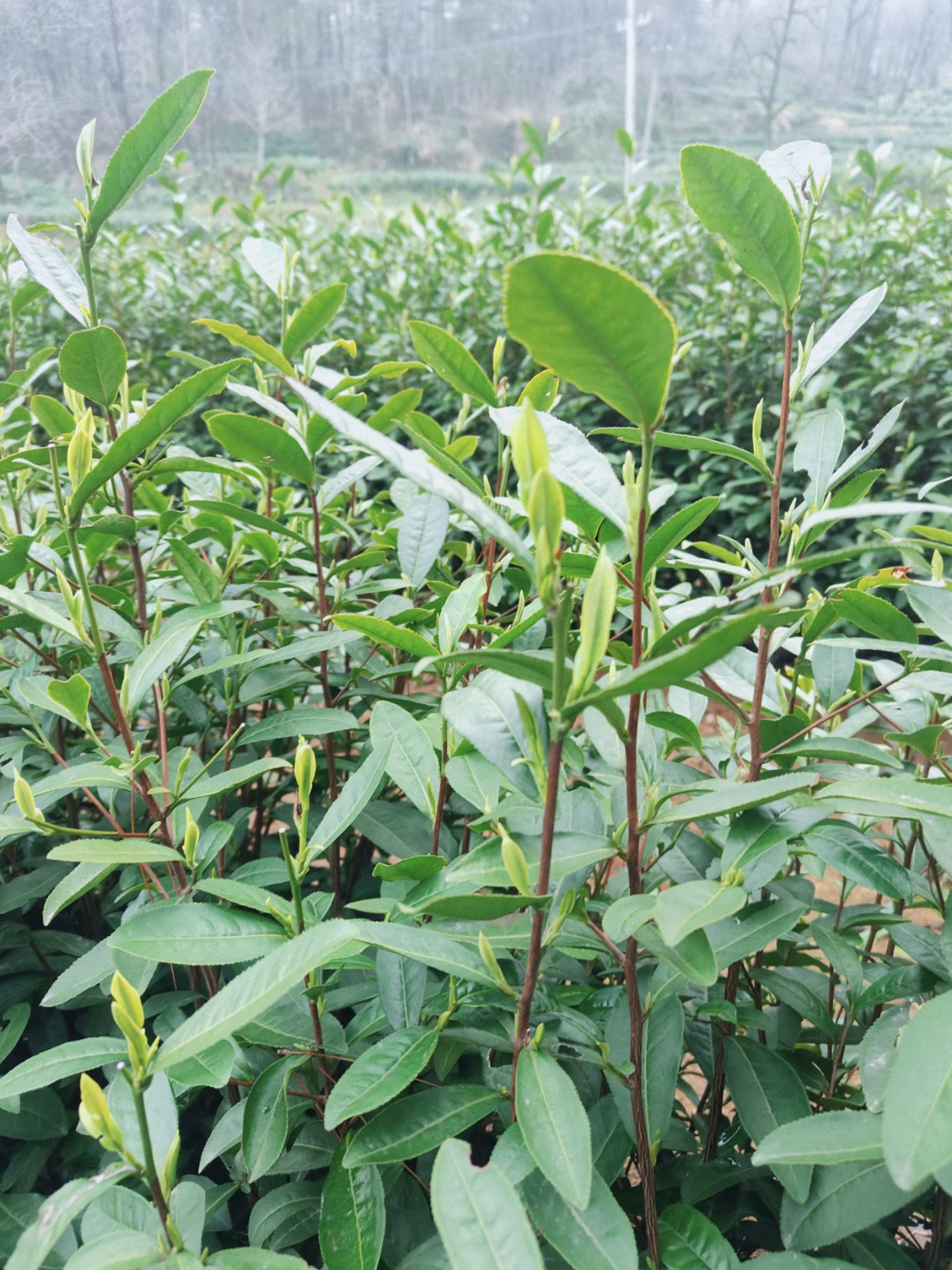 雾霭轻笼山色,茶芽初绽新绿,枝叶舒展间,春在指尖悄然生长。