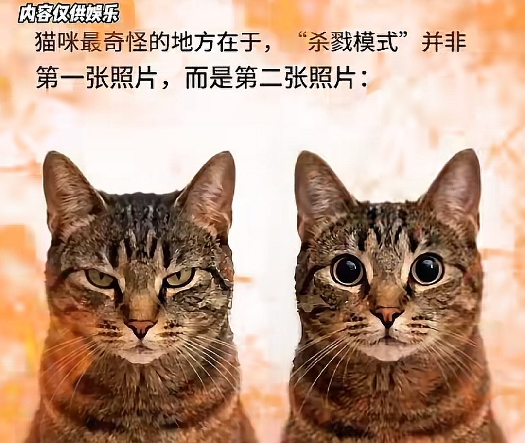 哈哈哈猫猫瞳孔变圆的时候看起来很萌,但却是它们的猎杀时刻[笑cry]