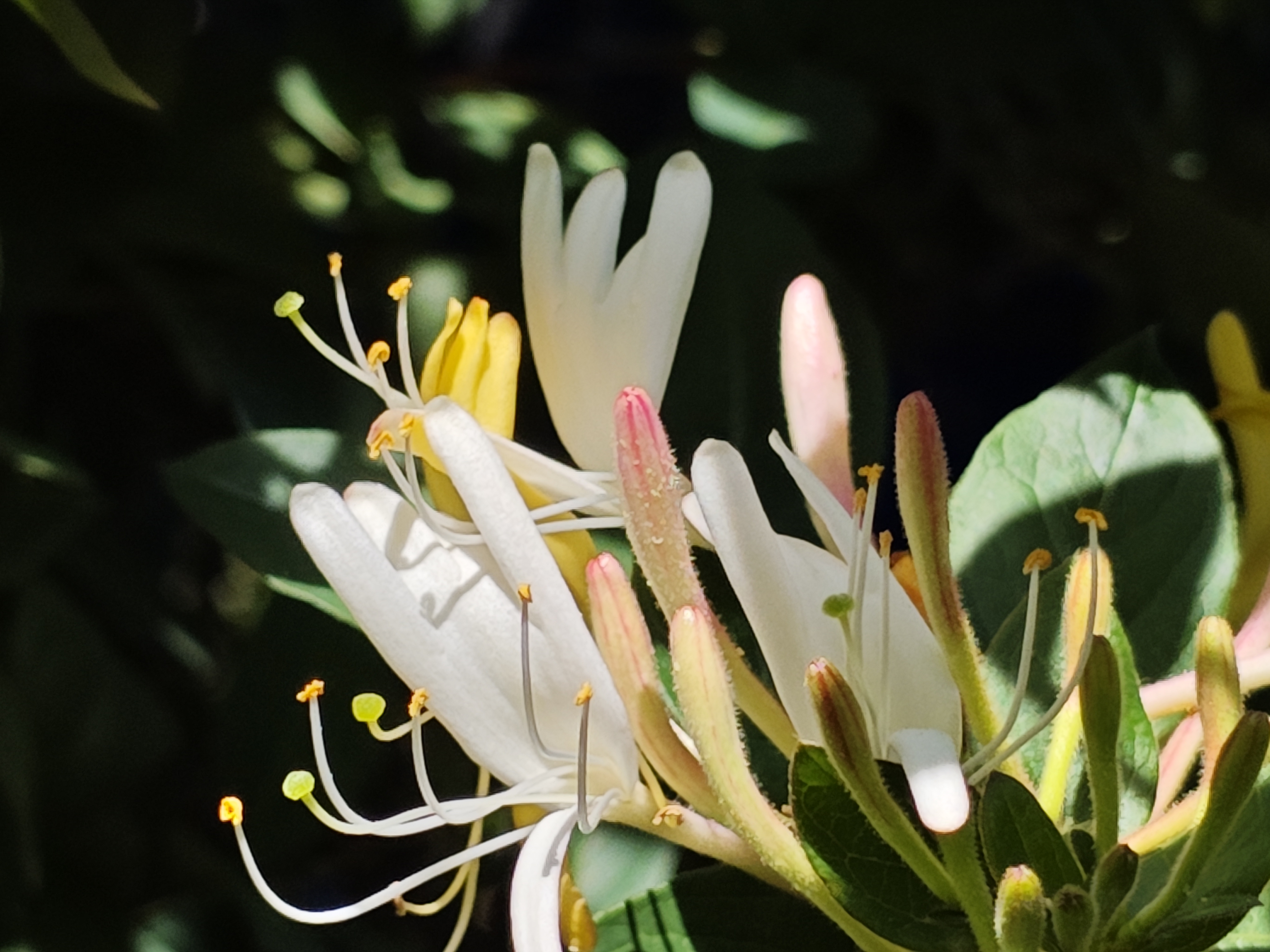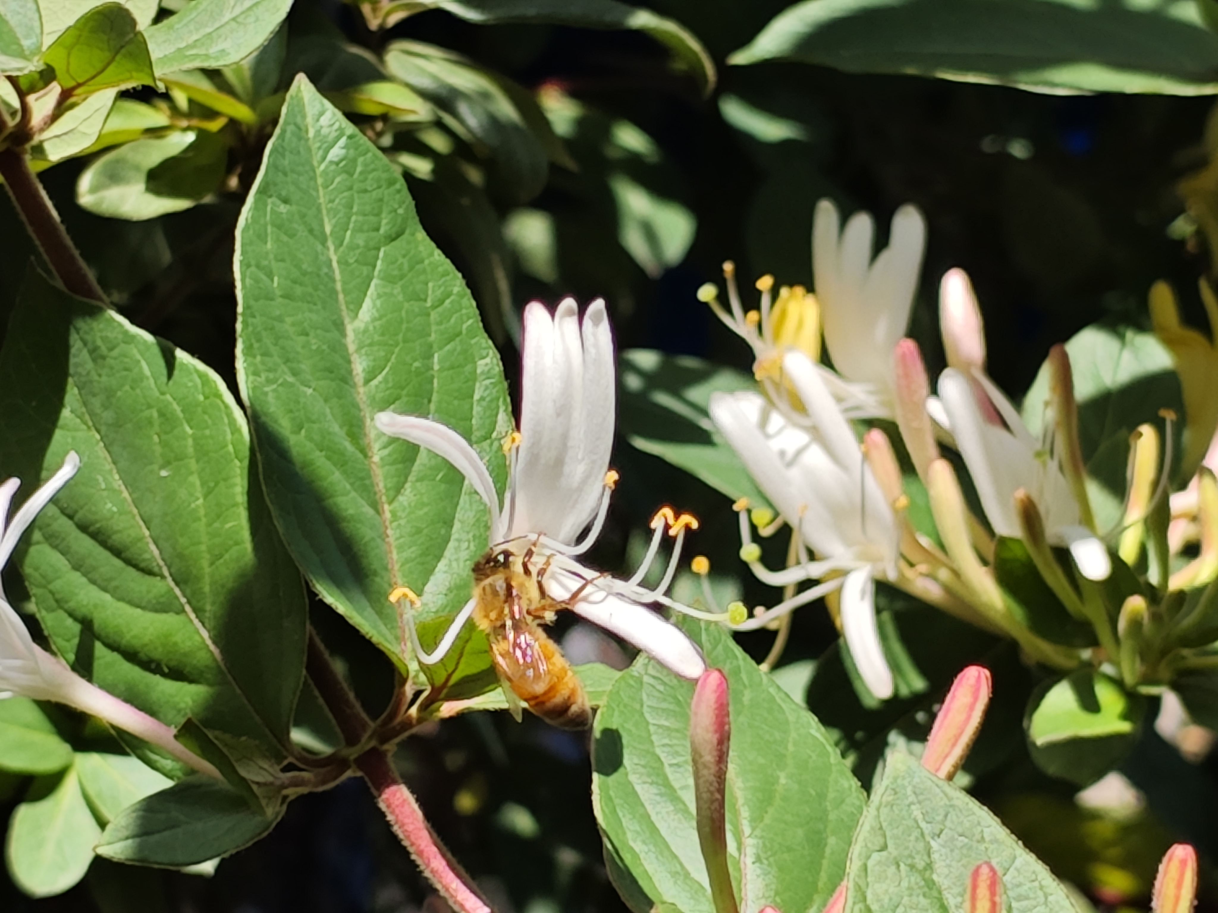 金银花的四季絮语 植根于庭院南围墙的金银花(忍冬),约有近十个年头了。从小小的盆栽,至如今的爬满围墙钢管栅栏,四季常青,不惧风霜雨雪。今春第一缕风吻醒沉睡的枝桠,金银花的新叶便怯生生地探出头。深褐的嫩梢裹着绒毯般的细毛,在晨光里泛着紫红的晕,像初醒的孩童揉着惺忪的眼。老叶是沉静的绿,新叶却偏要染上几分娇俏的红,在藤蔓间错落成诗——这是春的信笺,写满了生机与萌动,风一吹,便抖落满枝的希望。 夏日的金银花,是一曲热烈的交响。藤蔓攀援成绿的瀑布,叶片层层叠叠,筛下斑驳的阳光。花苞从叶腋间钻出来,粉红的小铃铛似的,渐渐绽成洁白或鹅黄的小喇叭,成对儿依偎,像私语的恋人。蜜蜂是最痴情的访客,嗡嗡地落在花瓣上,绒毛沾着细碎的花粉,翅膀驮着阳光的暖。风过时,花影摇曳,香气漫过墙垣,连空气都甜得发颤,仿佛整个夏天都被这缕芬芳浸得温柔。 秋风掠过,金银花的叶儿开始晕染秋意,深绿里掺了些金黄,藤蔓却依旧倔强地舒展。凋谢的花朵化作深褐的籽,藏在叶间,像岁月的邮戳。可它不慌,把养分悄悄收进枝干,任由寒霜在叶缘凝露,却将坚韧藏进脉络——这是生命的沉淀,是冬藏前的温柔谢幕,每一片叶、每一粒籽,都在低语:沉淀,是为了更好地绽放。 冬日的金银花,褪去了繁华,藤蔓在寒风中勾勒出苍劲的轮廓,叶片仍然顽强执着的由深绿色浸润。枝干裸露着,似在静听雪落的声音,又似在酝酿来春的梦。偶尔,残留的枯花在枝头晃荡,像时光的碎片,却也透着一种枯寂的美。它在等,等一场雪的覆盖,等春风的信约,把所有的等待都酿成来年的蓬勃。 四季流转,金银花在时光里写下絮语:春生,夏盛,秋收,冬藏。它以藤蔓为笔,以花叶为墨,在岁月的宣纸上,绘就生命的轮回——每一季的姿态,都是对时光的深情回应,每一次兴衰枯荣,都是向未来的温柔奔赴。(图一至图十分别为春夏秋冬四季拍摄)