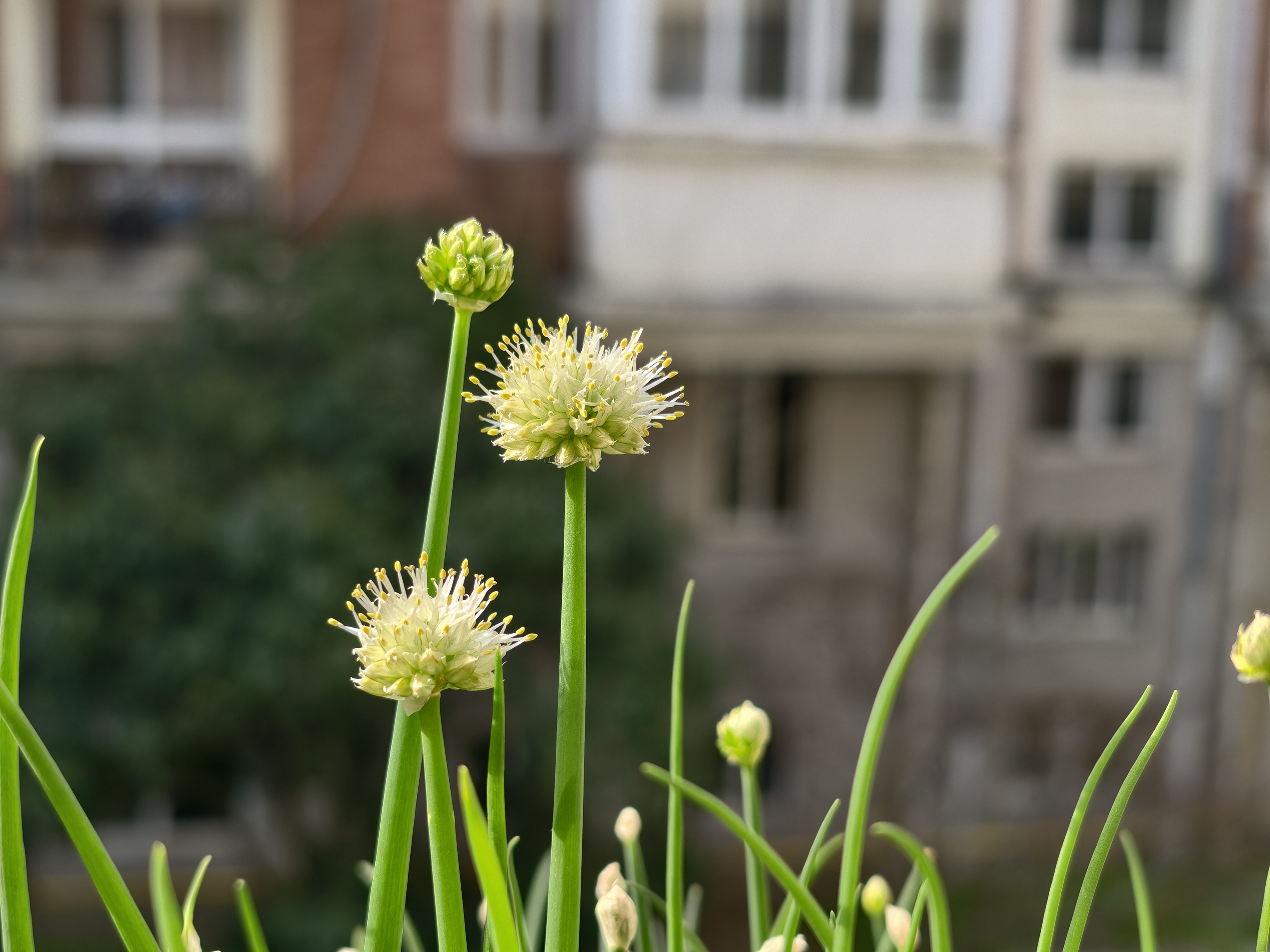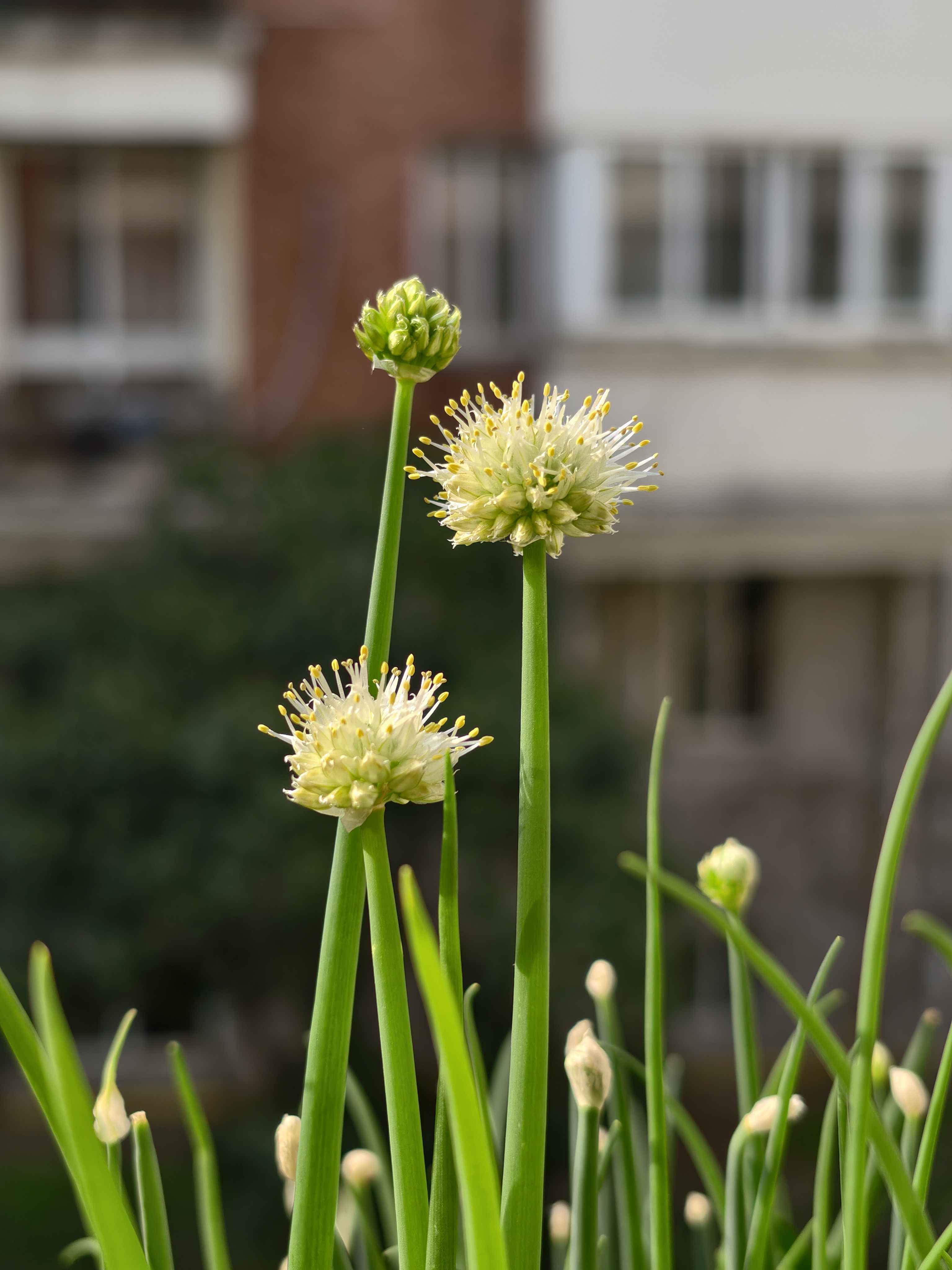 春天我家的阳台上,小葱也开花了,小葱的花儿也挺好看的!