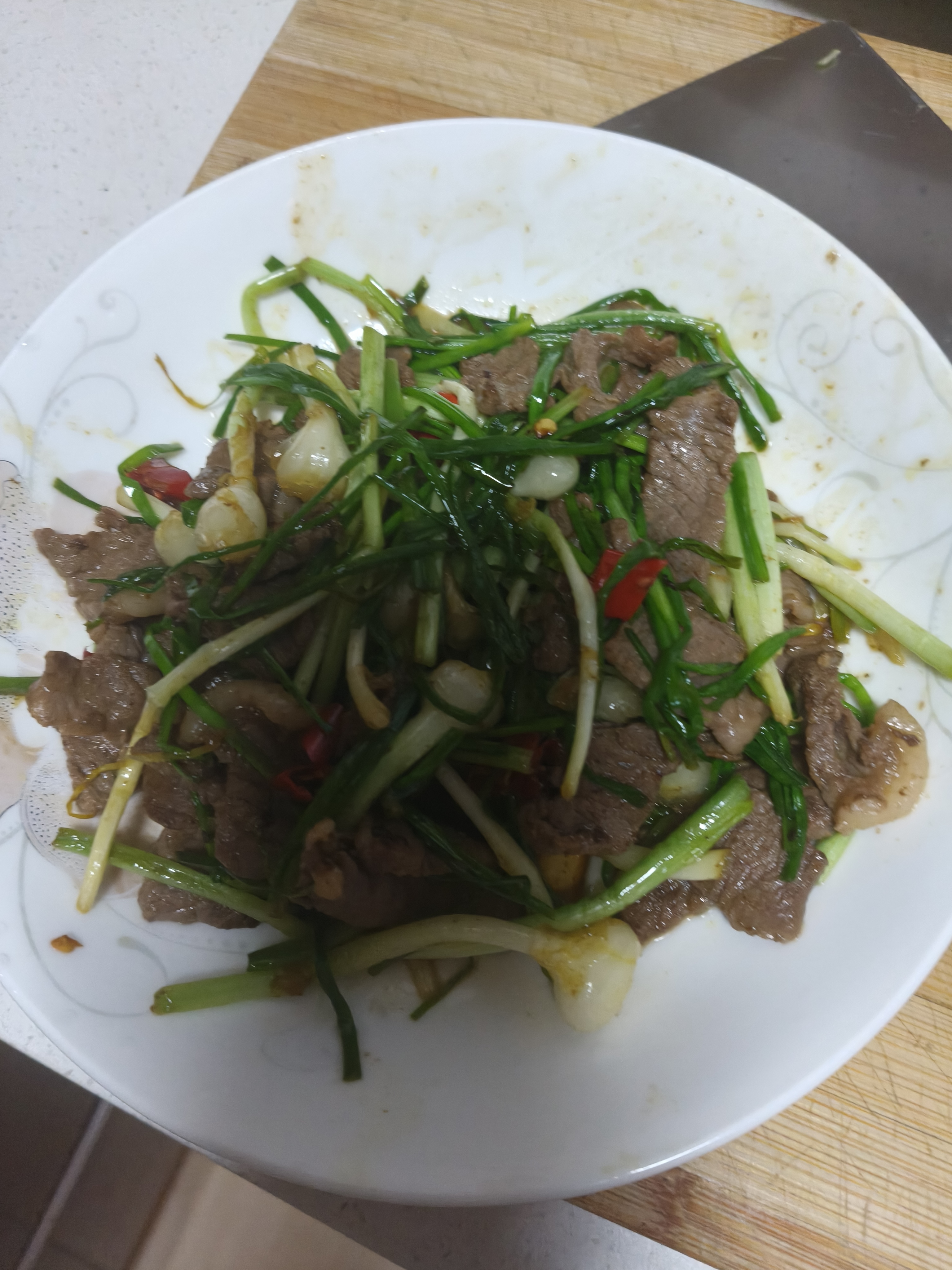 大自然的馈赠——野葱,把牛排切成薄片,腌制后,小米辣、野葱一起炒,超级好吃