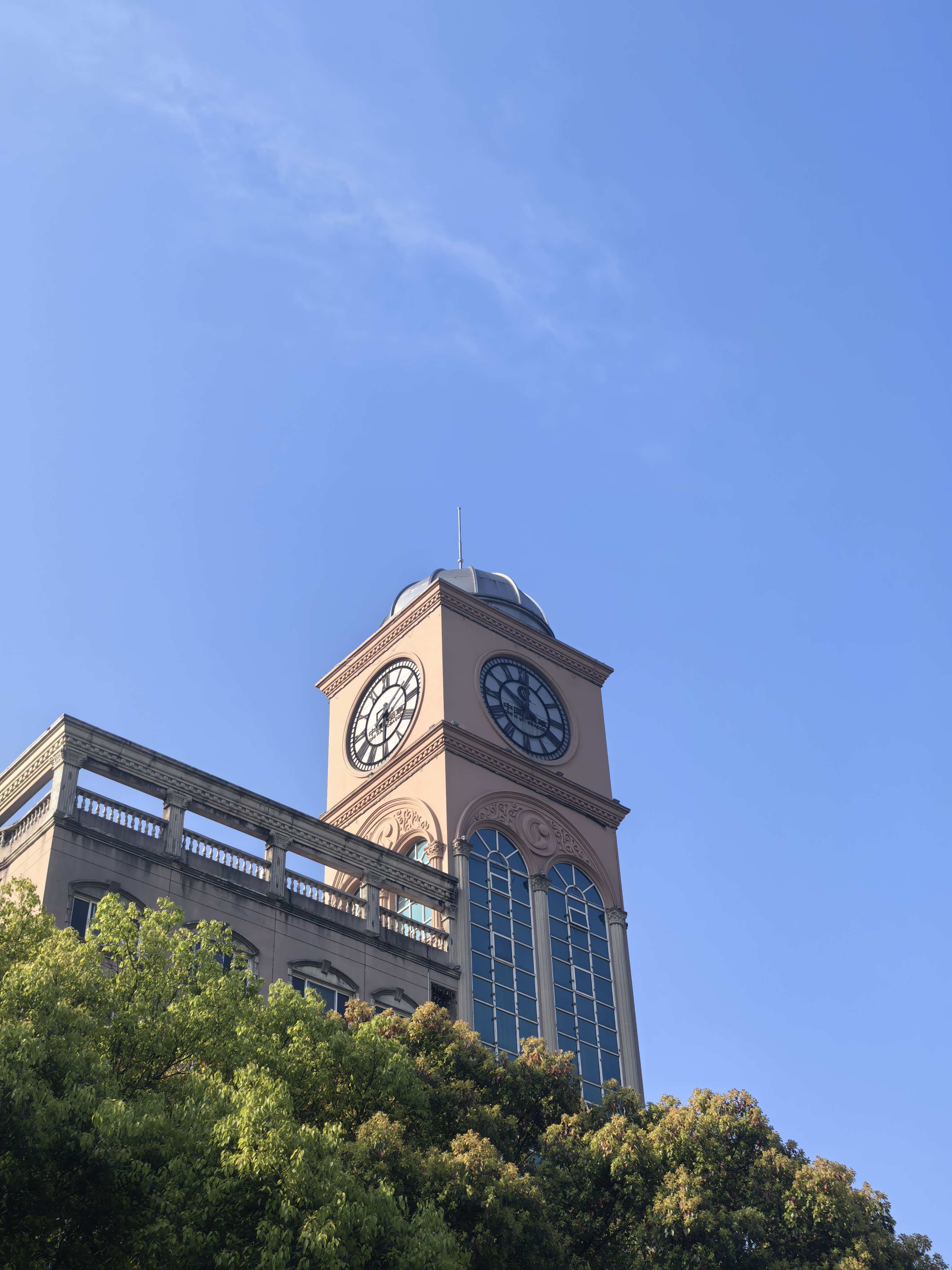 钟楼打卡!蓝天绿树下,罗马数字钟面超有feel~拱窗圆顶栏杆阳台,古典风拿捏了~