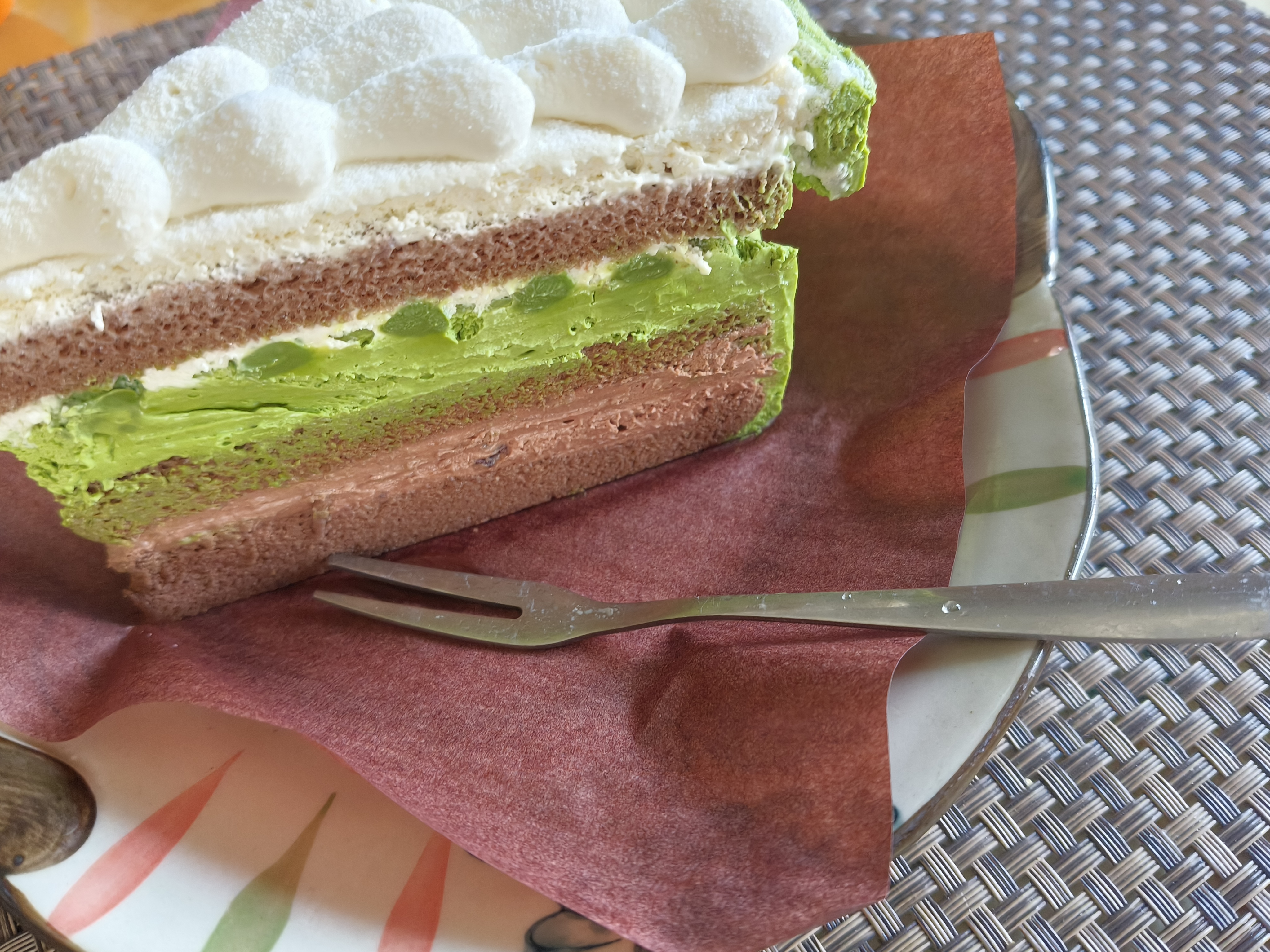 Homie Canteen一家不起眼的店,蛋糕不错,很多人排队,只能打包回来享用,第一块茉莉抹茶黑巧蛋糕好吃,吃到嘴里层次丰富。