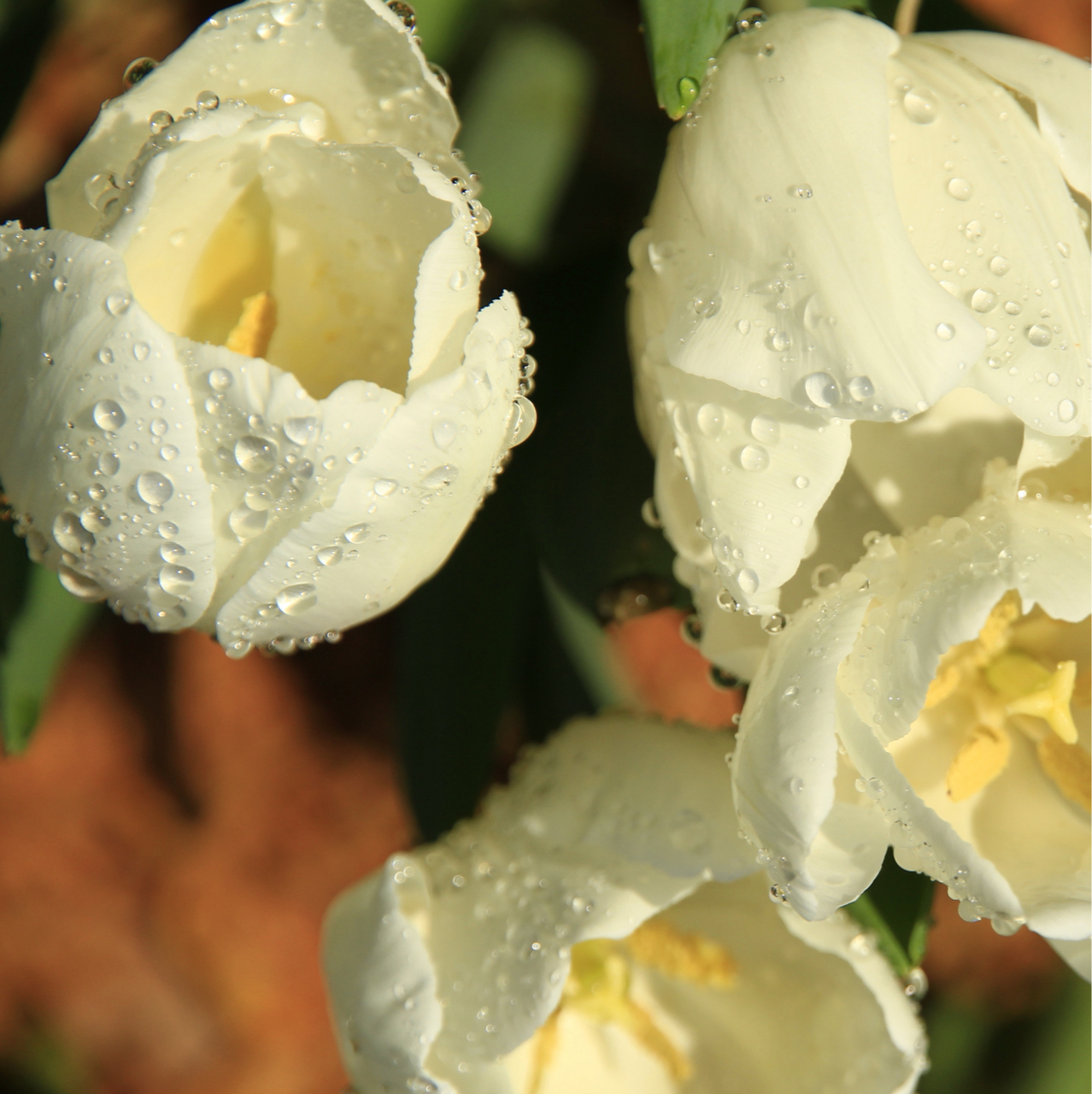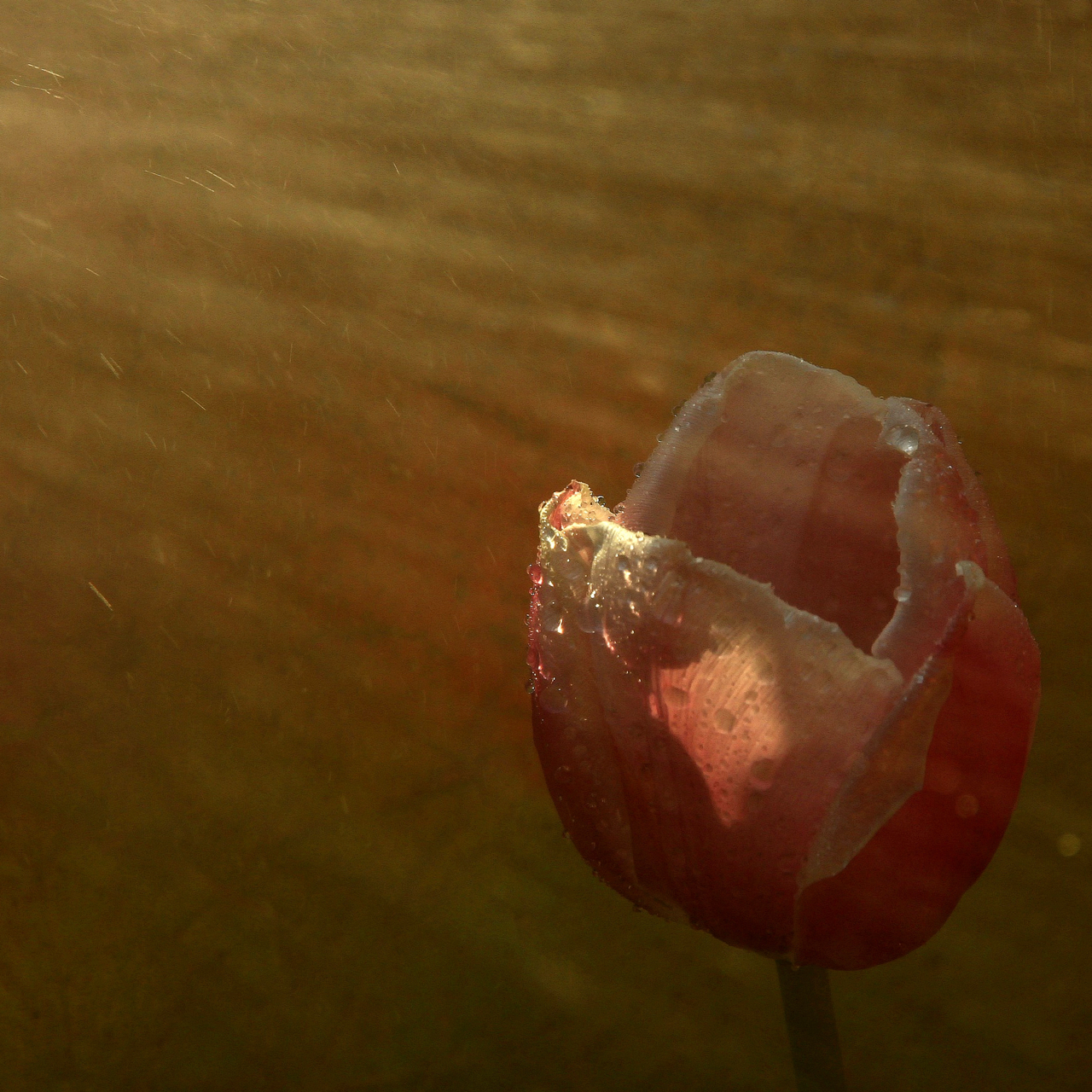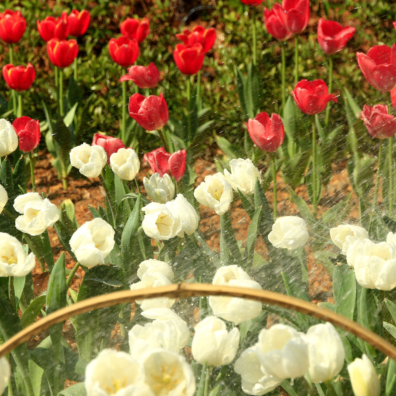雨后—- 雨后郁金香,水珠晶莹,红白相映,如贵妃入浴,整个身姿都在发光呢~