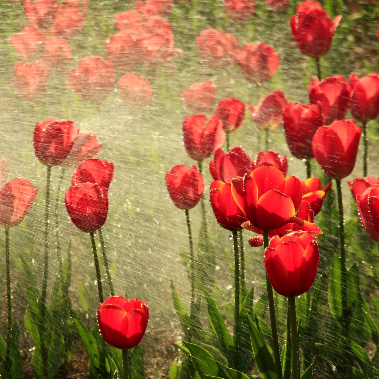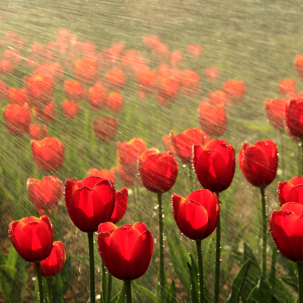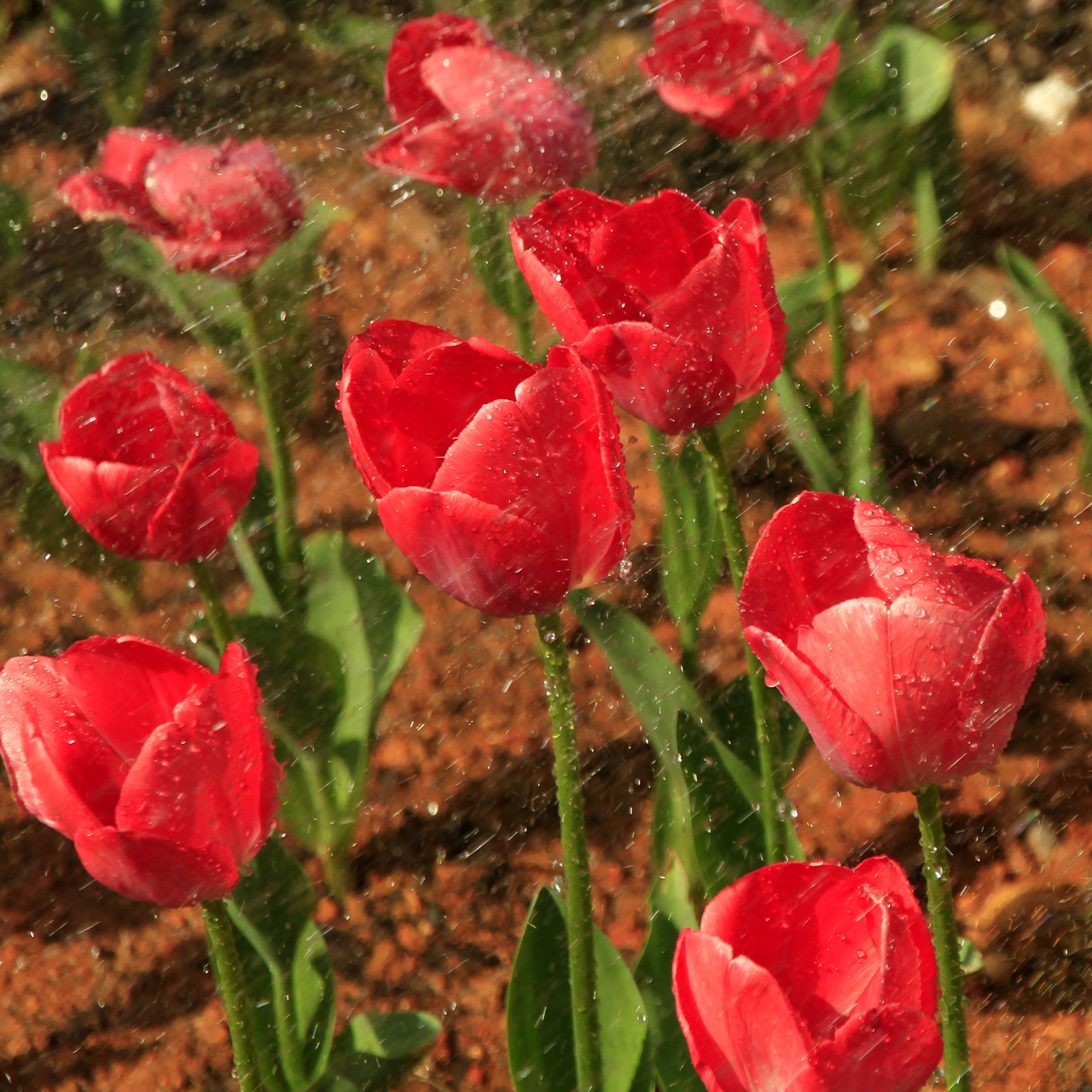 雨后—- 雨后郁金香,水珠晶莹,红白相映,如贵妃入浴,整个身姿都在发光呢~