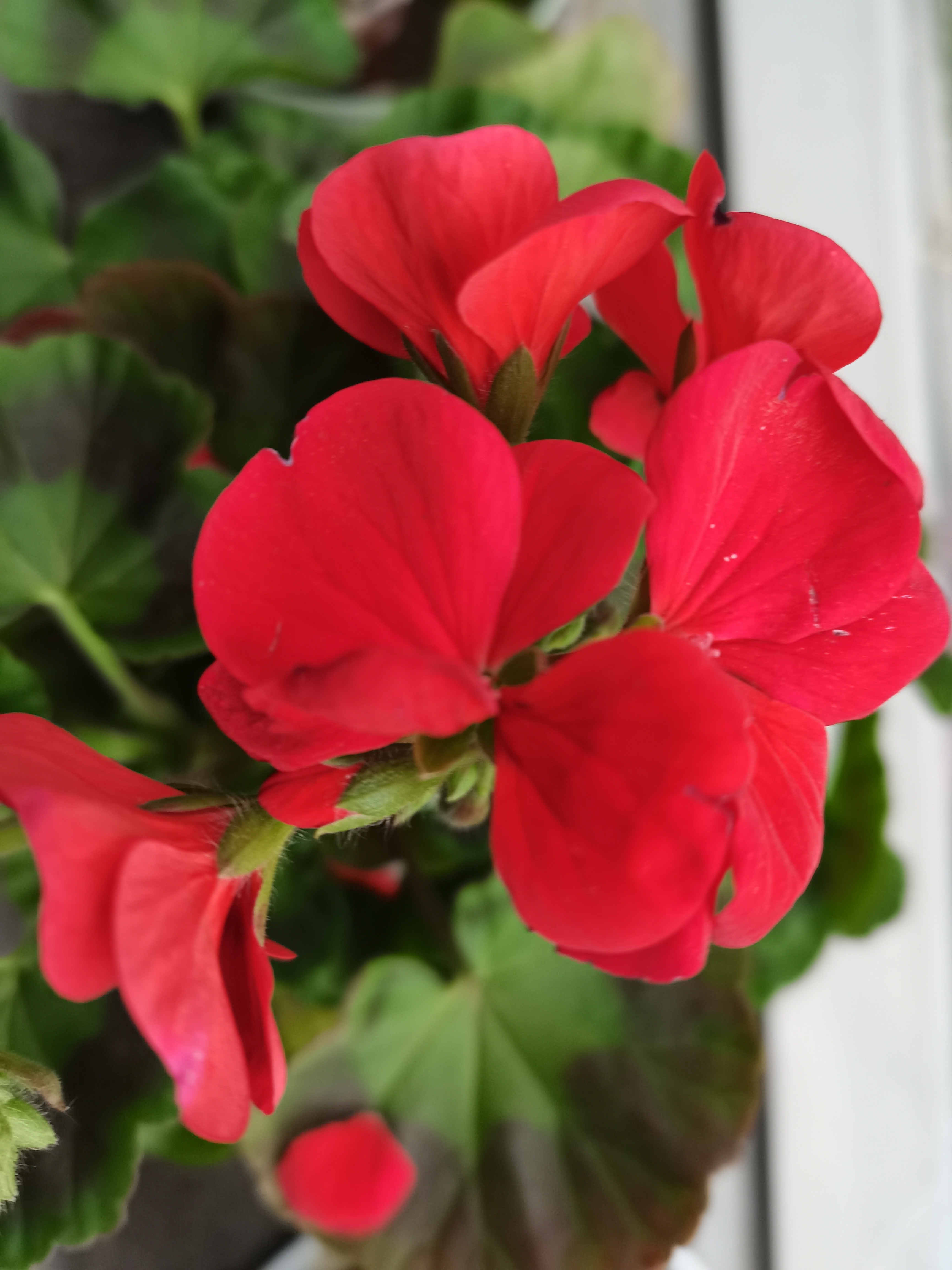 窗台小花园上线!天竺葵红得俏,鹅掌柴绿得稳,雨后玻璃上还挂着水珠~都市养绿,就这么简单又上头🌿