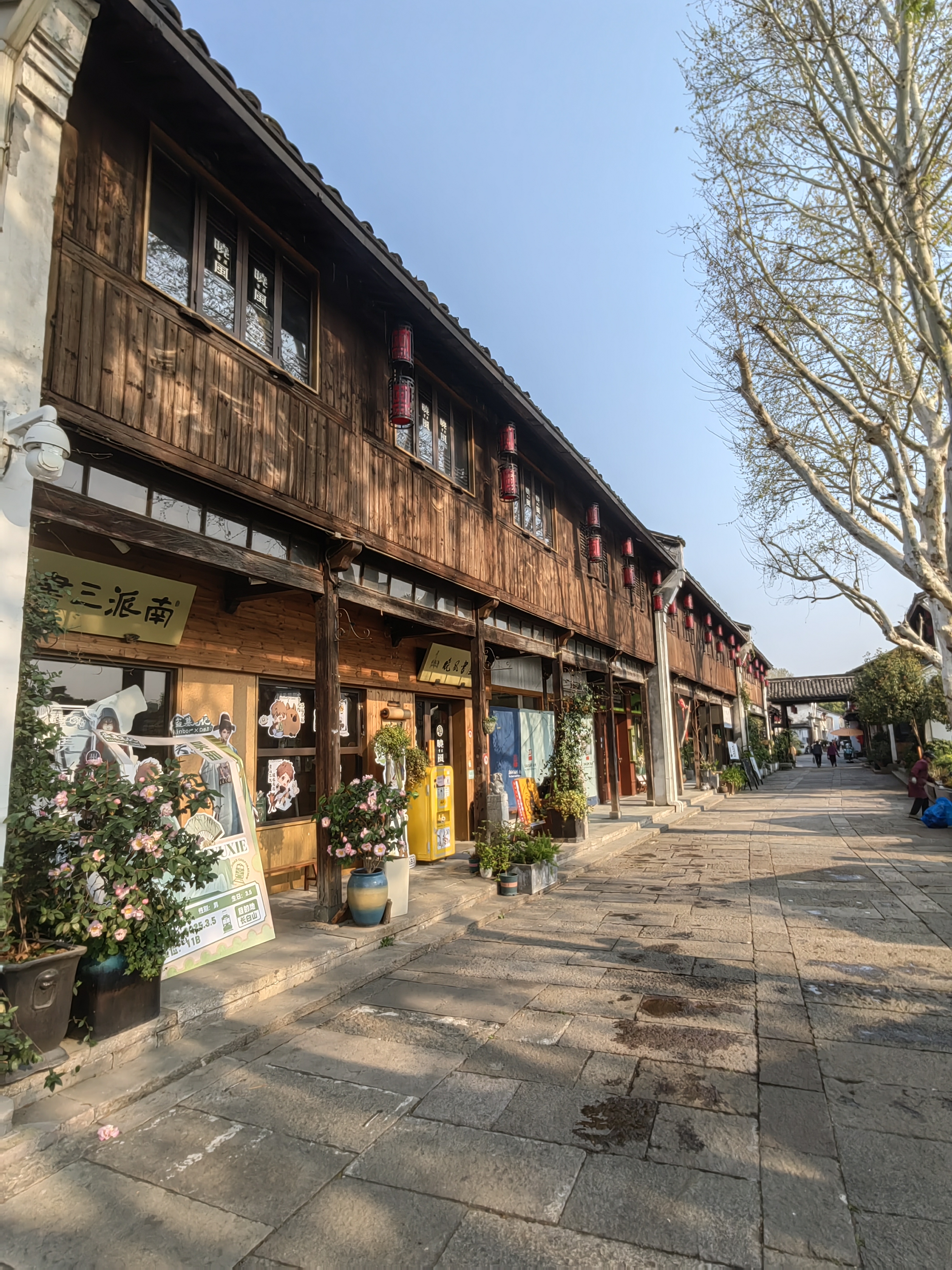 小河直街春日晴,白墙黛瓦红灯笼,石板路静悄悄,随手一拍都是江南水墨画~