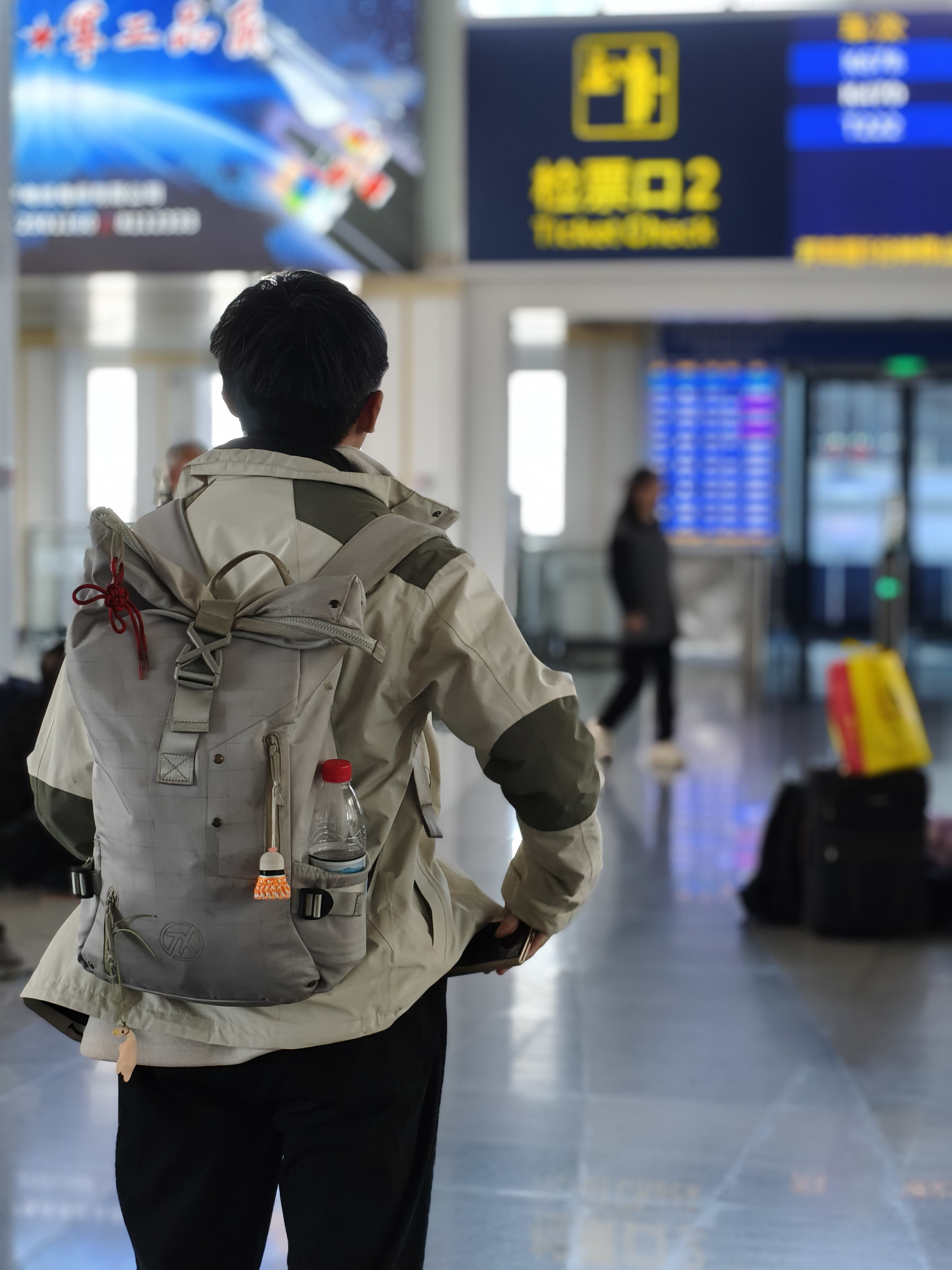 旅途 候车厅的灯光亮得刺眼,电子屏上的车次信息不停跳转,南来北往的脚步在这里交织成流动的风景。有人靠在窗边闭目小憩,保温杯静静立在桌前,像是旅途里安稳的锚点;有人头挨着头沉沉睡去,疲惫被折叠进方寸座椅,行囊里装着归家的期盼。 白发老人捧着手机,指尖划过屏幕,或许是在翻看家人的照片,又或是拨通那通盼了许久的电话。有人背着行囊走向检票口,背包侧兜的水瓶晃荡着,把前路的风景轻轻摇晃。 那桶鸡蛋格外惹眼,是妈妈的用心,红塑料袋裹着沉甸甸的心意,这是异乡人带给家人的惦念。候车厅里的喧嚣与安静交织,有人重逢,有人告别,有人在等待中把思念熬成温热的汤。旅途的意义,从来不是抵达,而是这一路裹挟的烟火与温情,让每一次出发都有了归处。