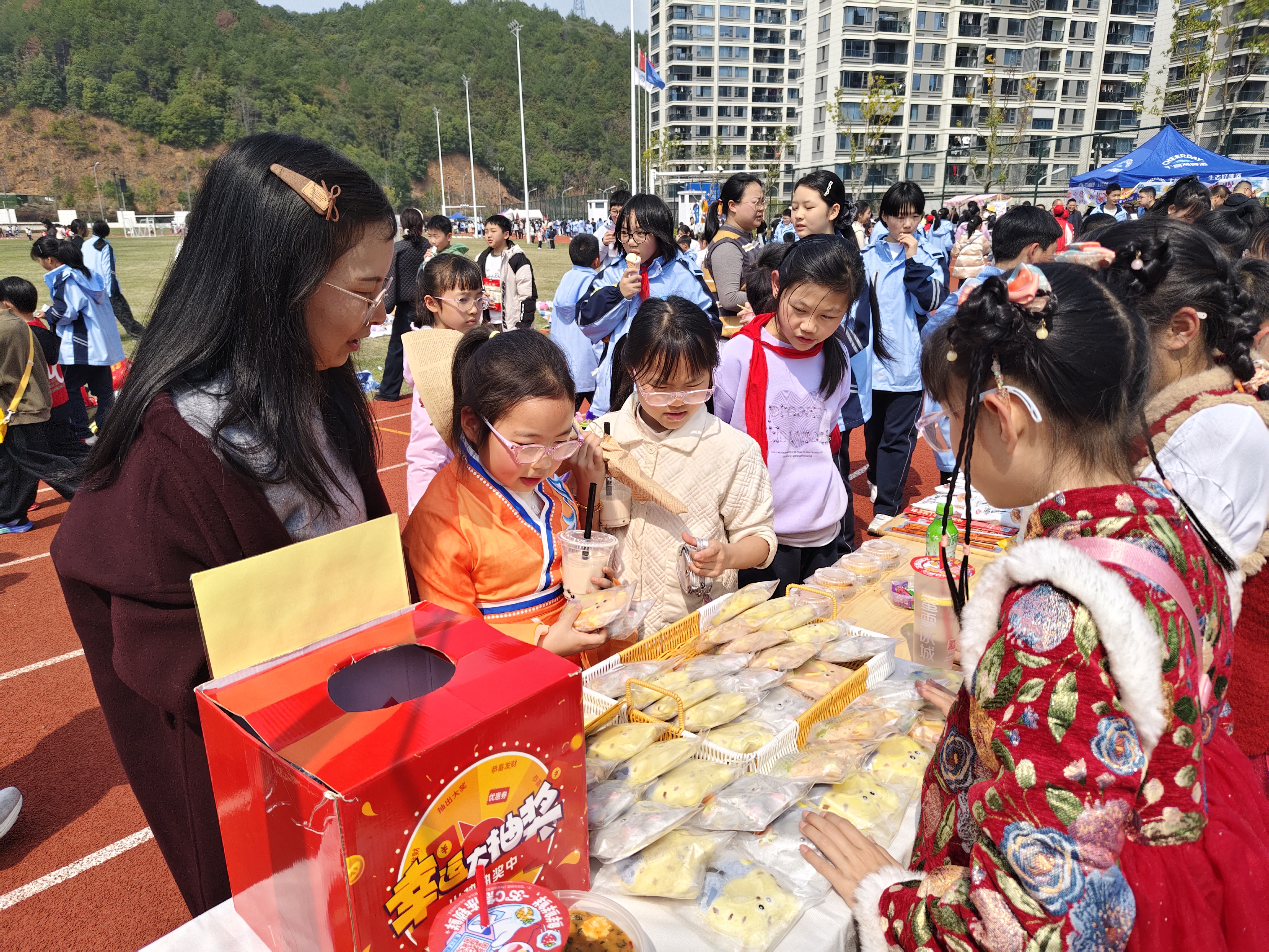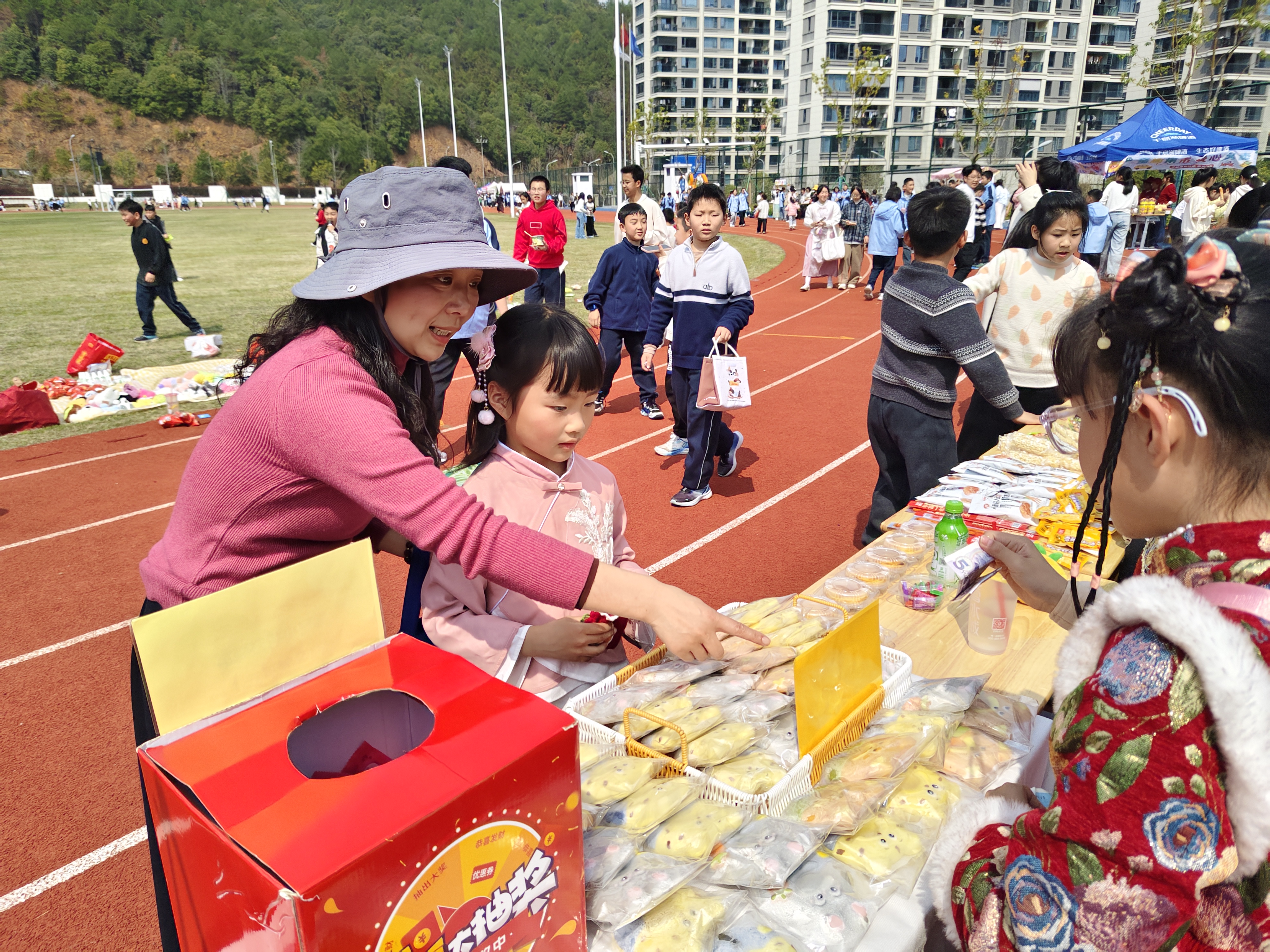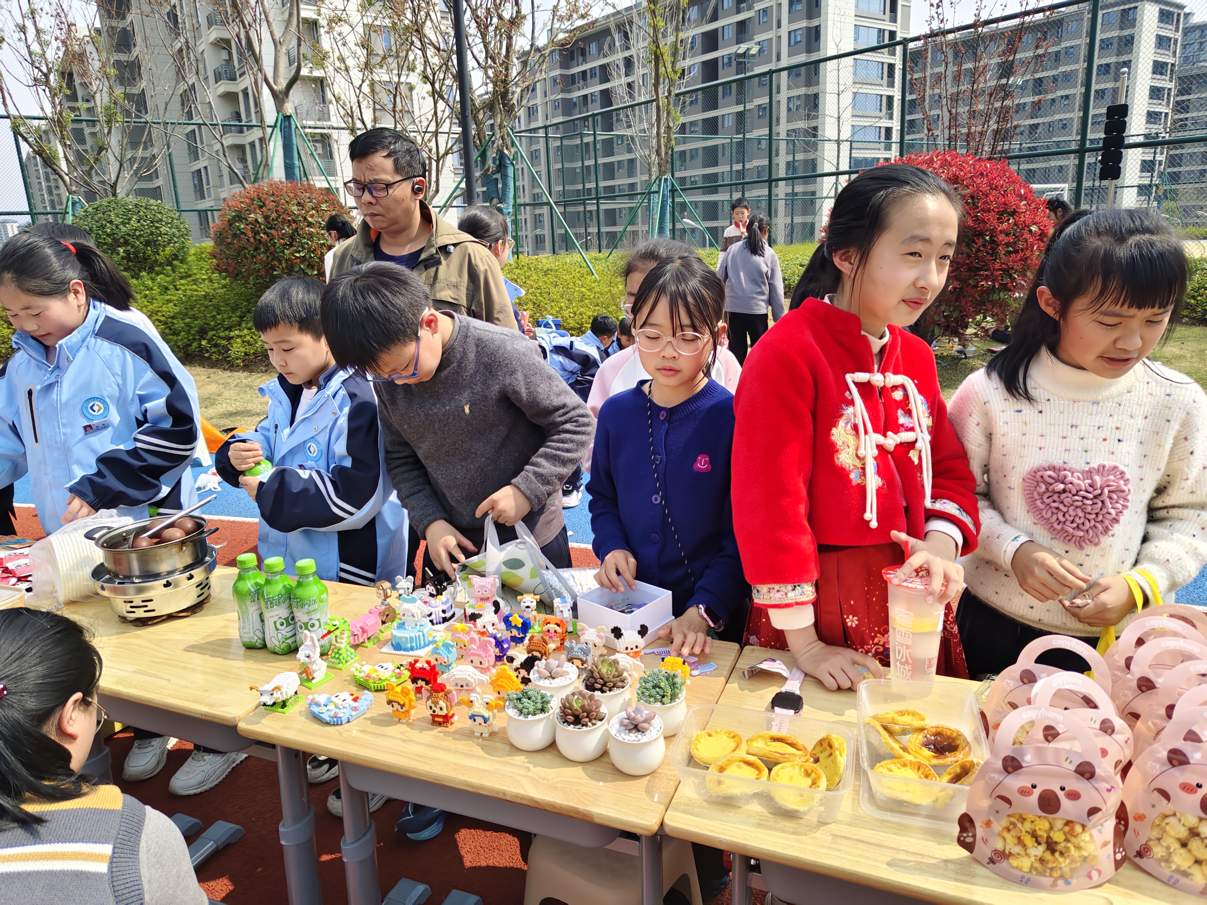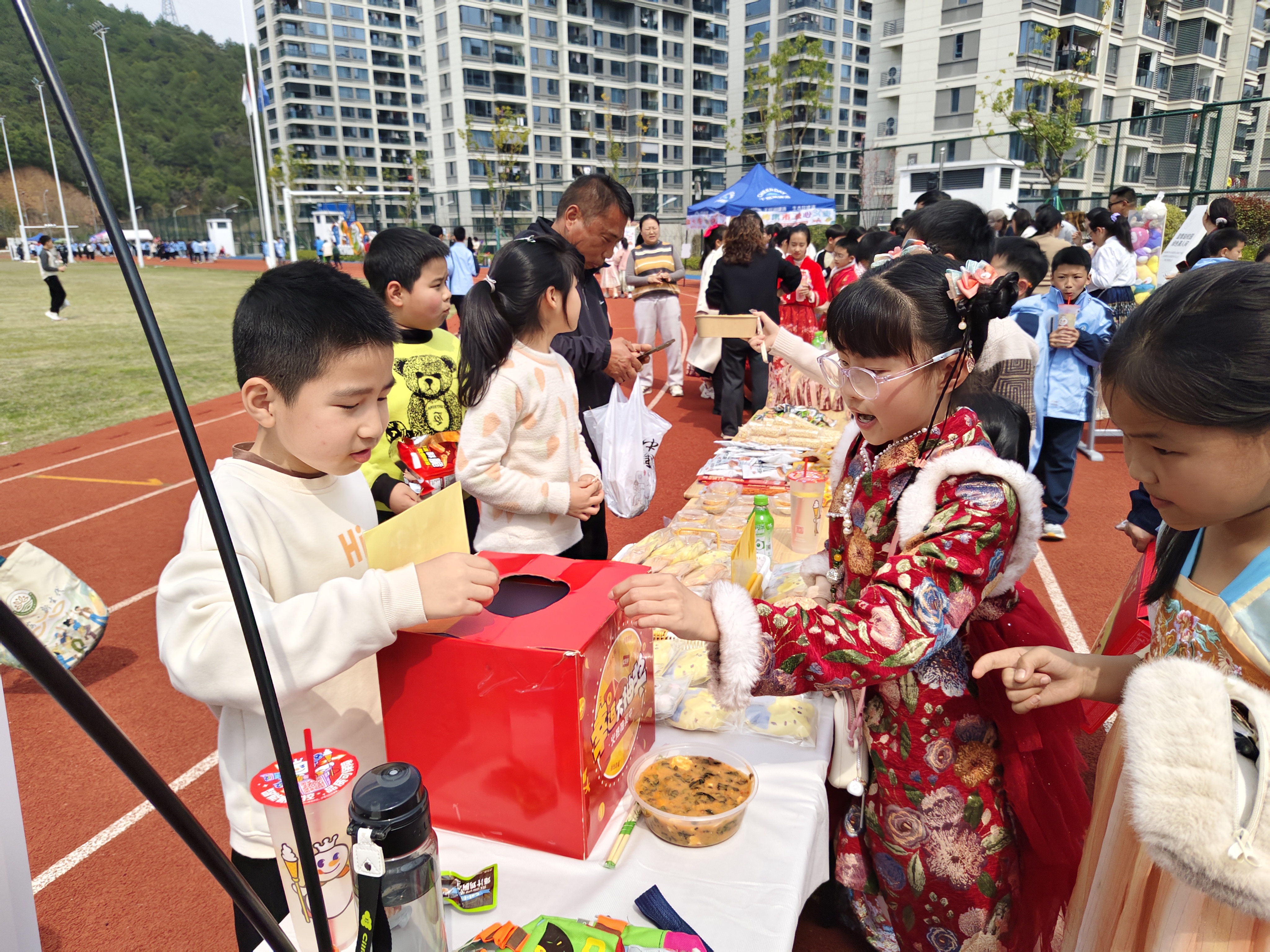 周二操场义卖暖翻天,千岛珍珠爱心传满格 周二下午的阳光,把千岛珍珠学校的操场晒得暖融融的,一场充满爱与温暖的爱心义卖活动,如约在绿茵场上热闹开启! 操场上早已是热闹非凡,各个班级的摊位错落排布,彩色的海报、可爱的装饰、整齐的商品,把每个小摊位都打造成了充满创意的“小卖场”。书籍、文具、手工艺品、自制小零食……同学们拿出自己的闲置好物,琳琅满目的商品让人目不暇接。 “走过路过不要错过!爱心义卖,好物超值!”稚嫩却响亮的吆喝声此起彼伏。小摊主们各司其职,有的热情地向过往同学推荐商品,有的耐心介绍每件物品的故事,还有的负责记账、收款,忙得满头大汗却笑意盈盈。同学们穿梭在各个摊位之间,一边挑选着心仪的好物,一边为爱心事业贡献力量。讨价还价的温馨互动、偶然发现宝藏的惊喜欢呼、互帮互助的暖心瞬间,在操场上交织成最动人的画面。 每一笔成交,都是一份心意的传递;每一件商品,都承载着温暖的期许。活动结束后,同学们将义卖所得悉数捐赠,用小小的力量汇聚成大大的温暖。这场千岛珍珠学校的爱心义卖,不仅让同学们在实践中学会了分享与担当,更让爱与善意的种子,在校园里生根发芽、温暖传递。