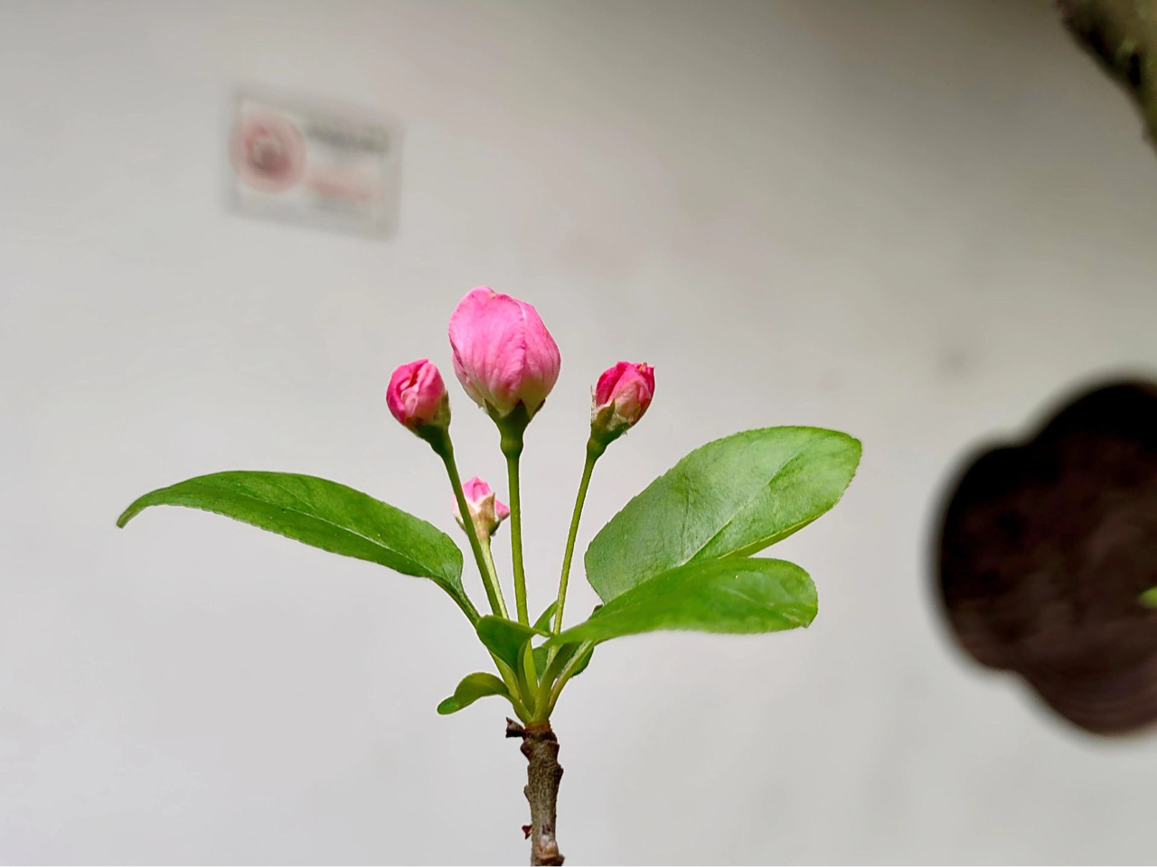 春日庭院,粉红花苞静栖于深褐枝条,绿叶油亮,脉络清晰。墙隅一隅,自然生长的未绽之蕾,裹着嫩芽与青涩,凝蓄生命张力。静物构图中,光影游走于瓣尖与叶缘,浅粉渐变晕染出温柔序章。此帧非盛放之绚烂,而是将开未开之际的克制之美——春在蓄势,静待风来。