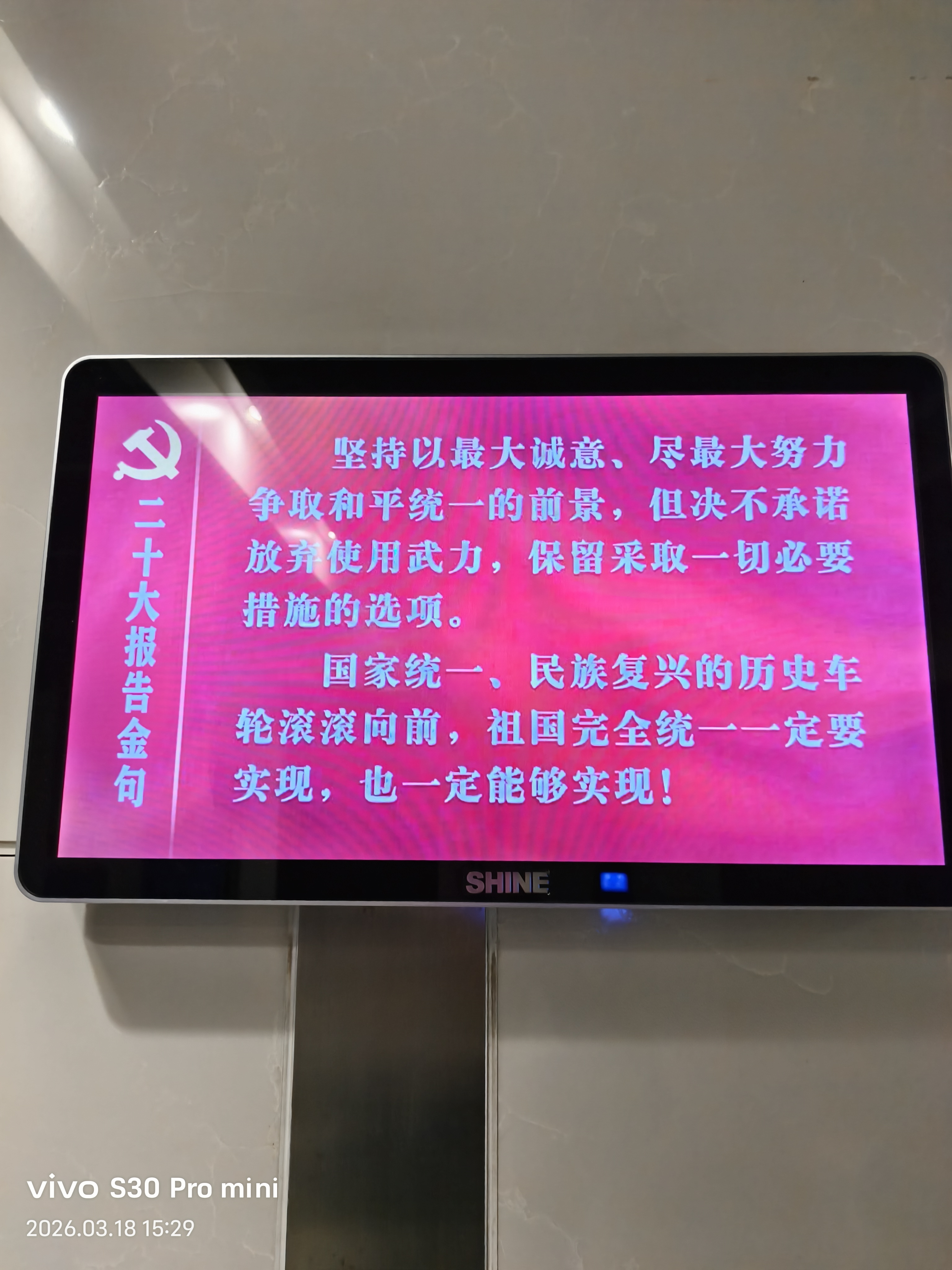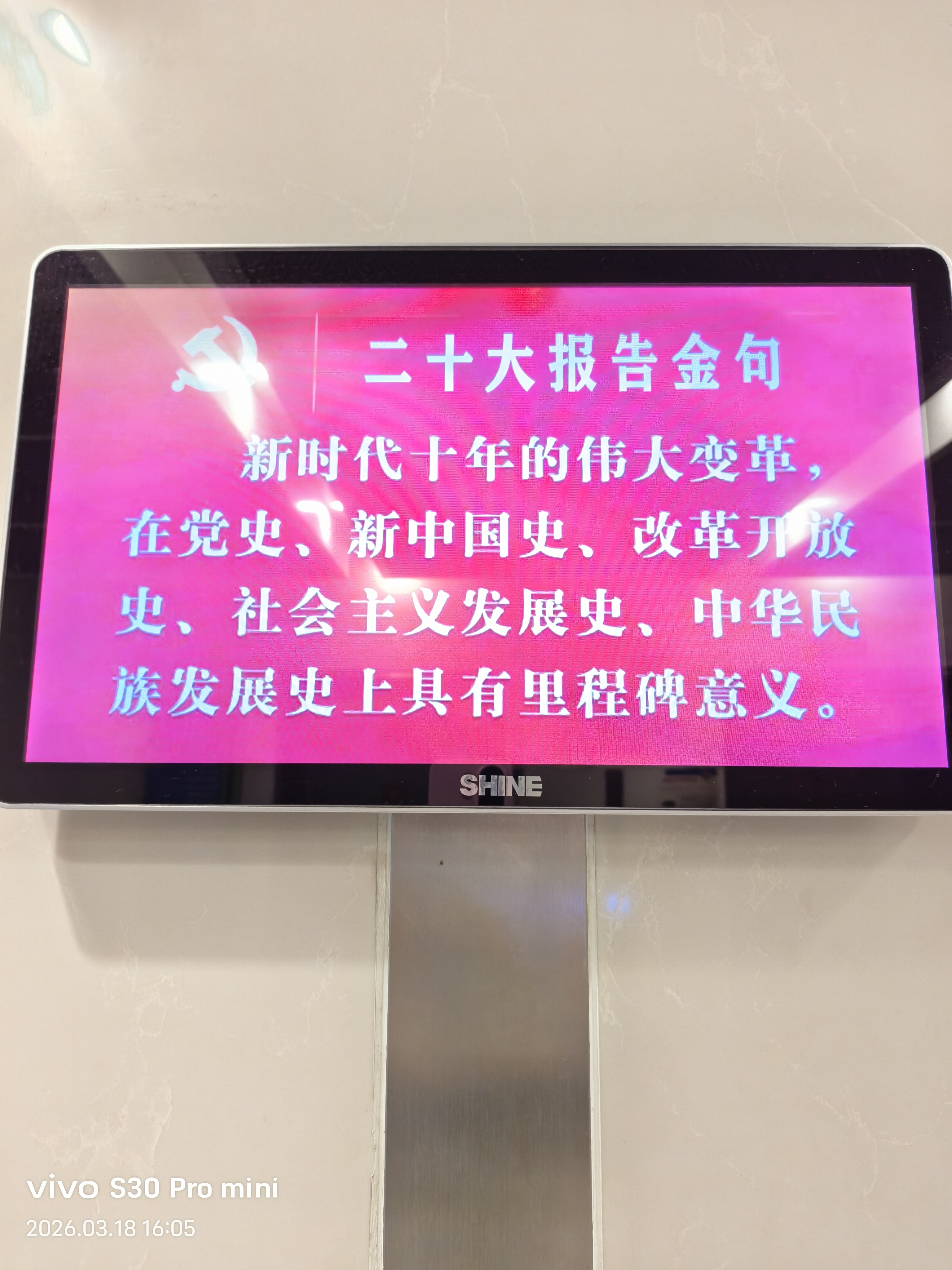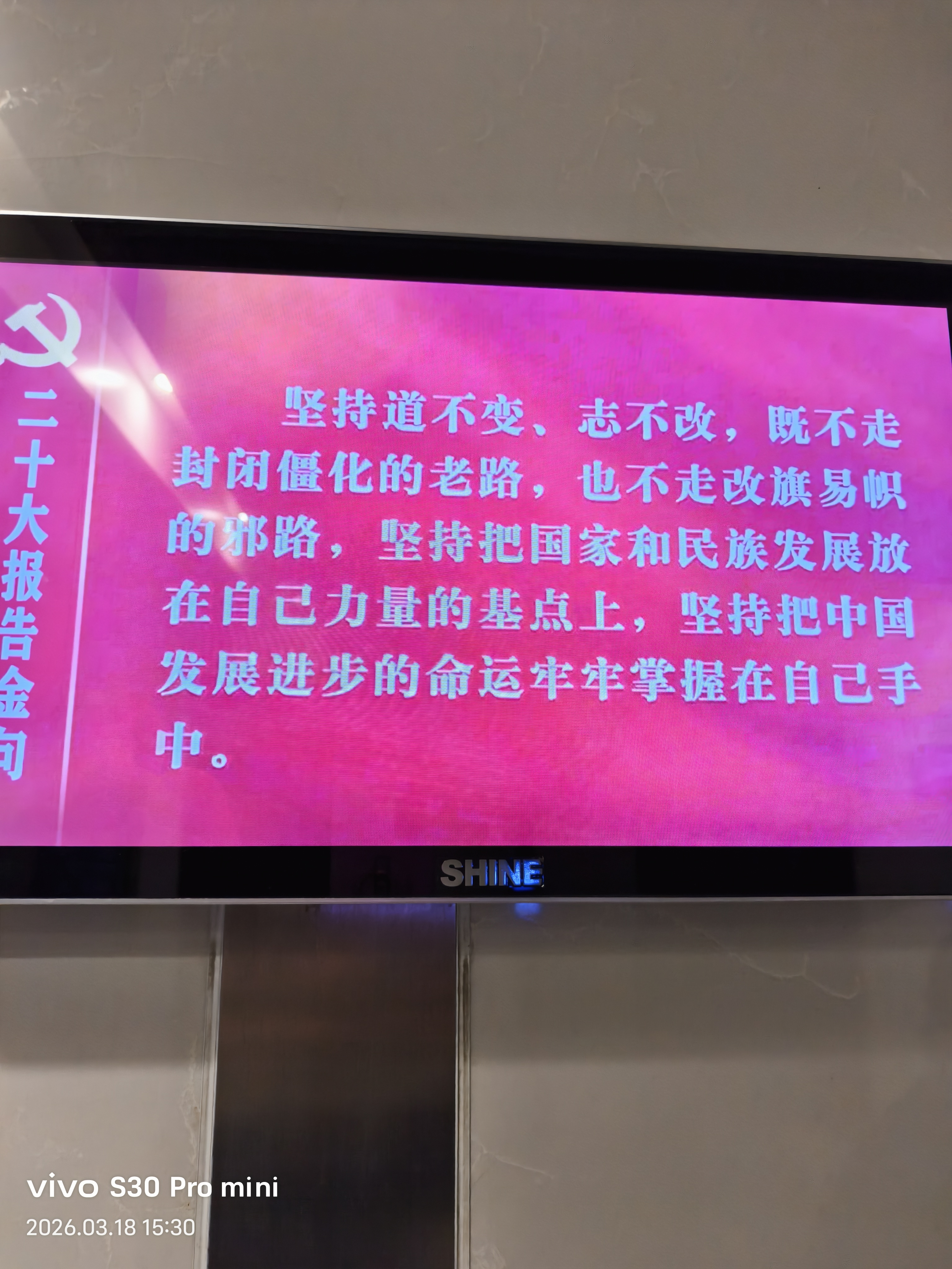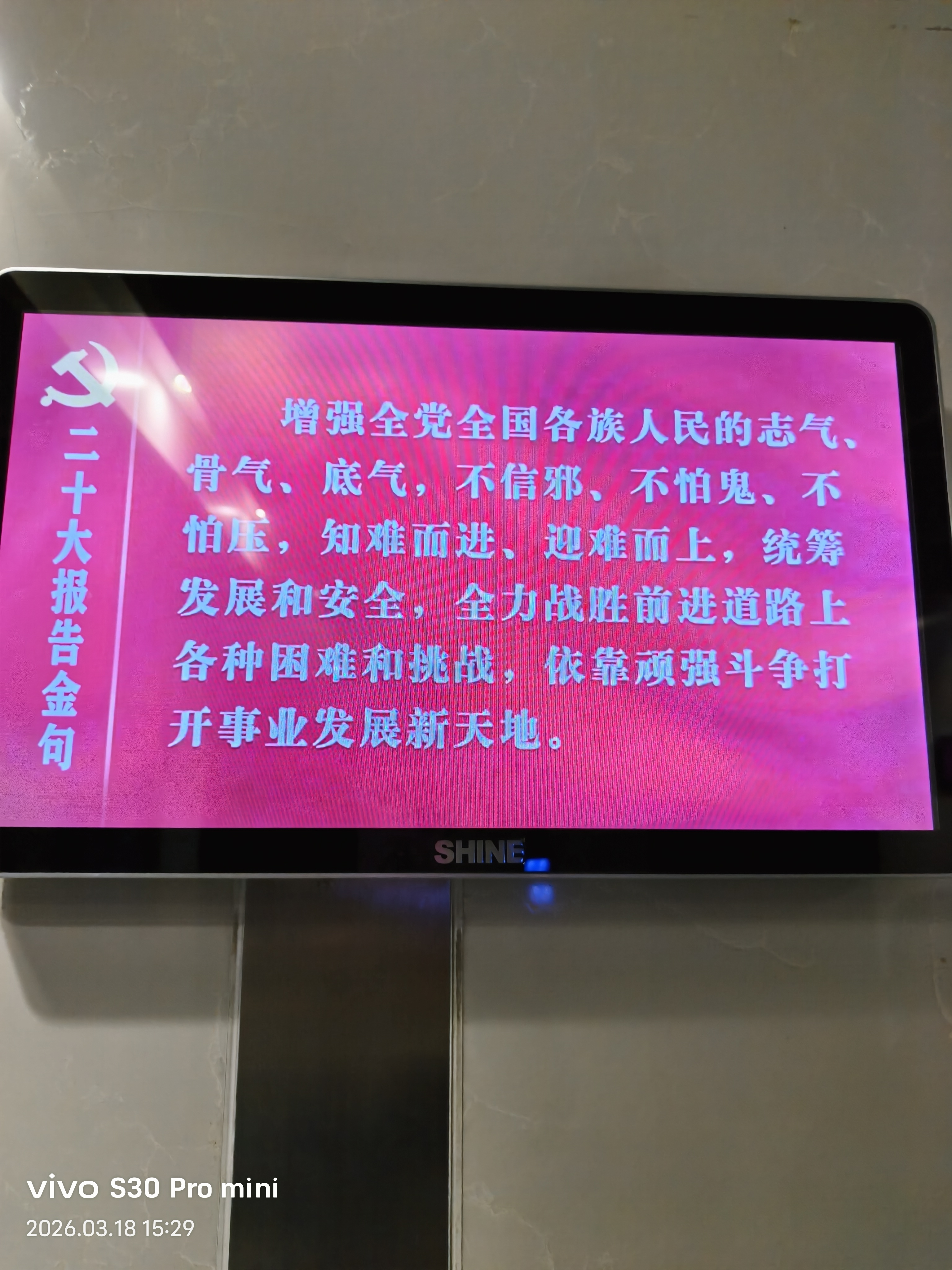 拥军爱民二十大报告金句映照时代征程。2026年3月18日,以vivo S30 Pro mini定格新时代强军图景:红色横幅飘扬于现代化军事建筑之间,SHINE显示屏跃动使命担当。面向战场、部队与未来,卫勤保障能力持续跃升。历史昭示,命运始终掌握在自己手中。