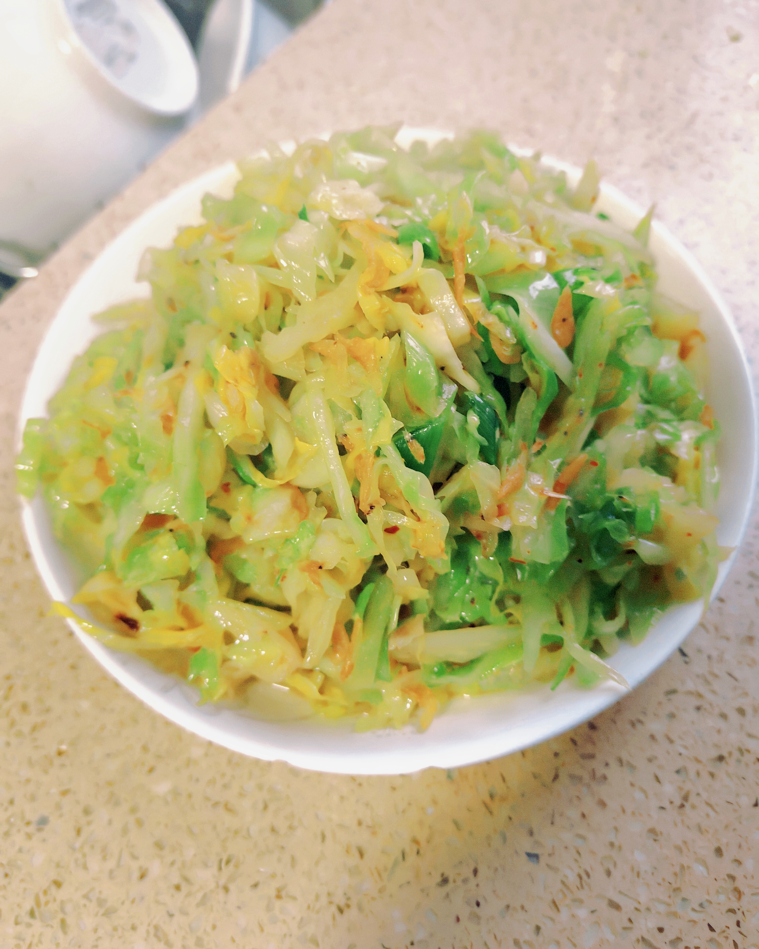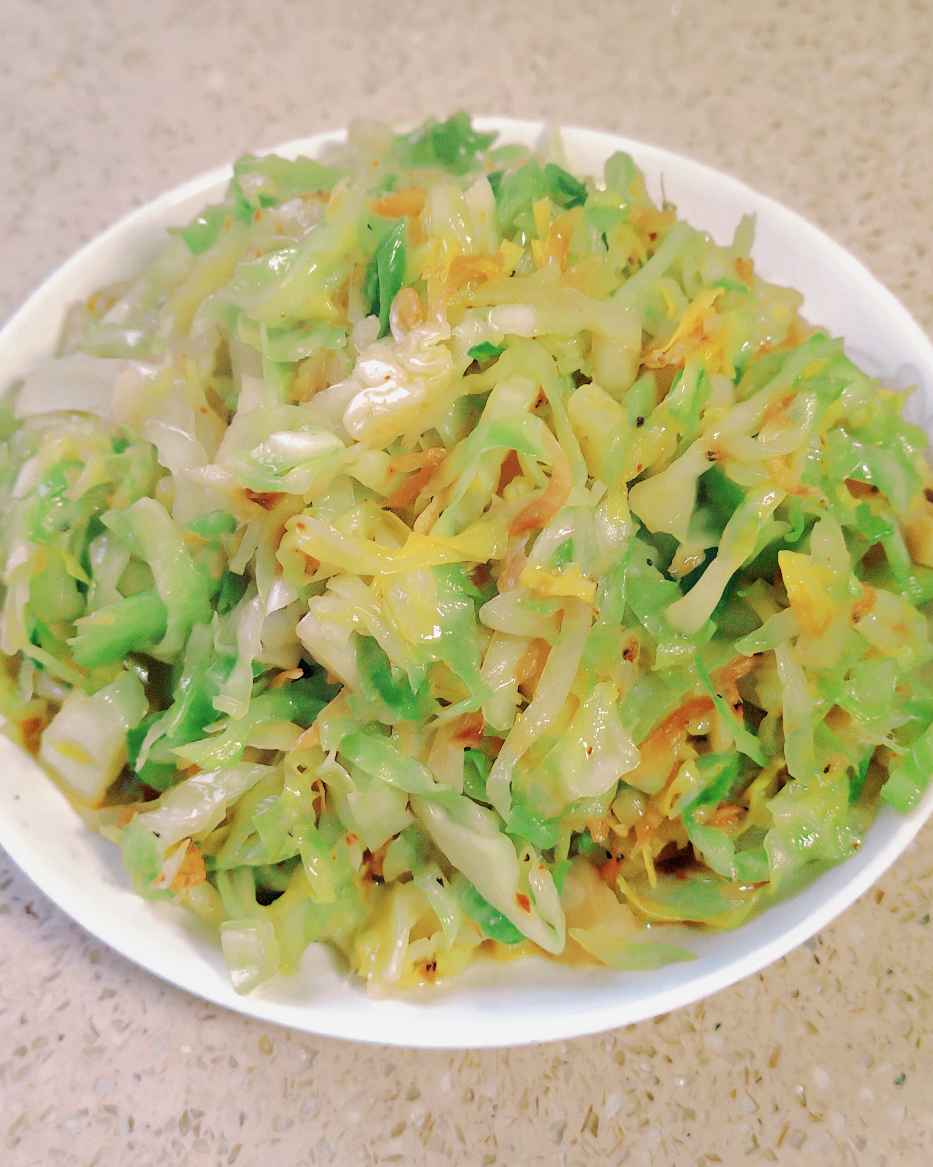 虾皮包心菜 一把虾皮,一颗包心菜,简单翻炒就是家的味道 鲜香味美,几分钟搞定,好吃又健康 超简单做法步骤 1. 准备食材:包心菜半个洗净切丝,虾皮一小把,大蒜2瓣切末 2. 热锅热油:锅中放少许油,下蒜末小火炒出香味 3. 炒香虾皮:放入虾皮,快速翻炒至微微金黄出鲜味 4. 下入包心菜:开大火倒入包心菜丝,快速翻炒均匀 5. 调味出锅:加适量生抽、盐、少许味精,翻炒至包心菜断生脆嫩,即可装盘