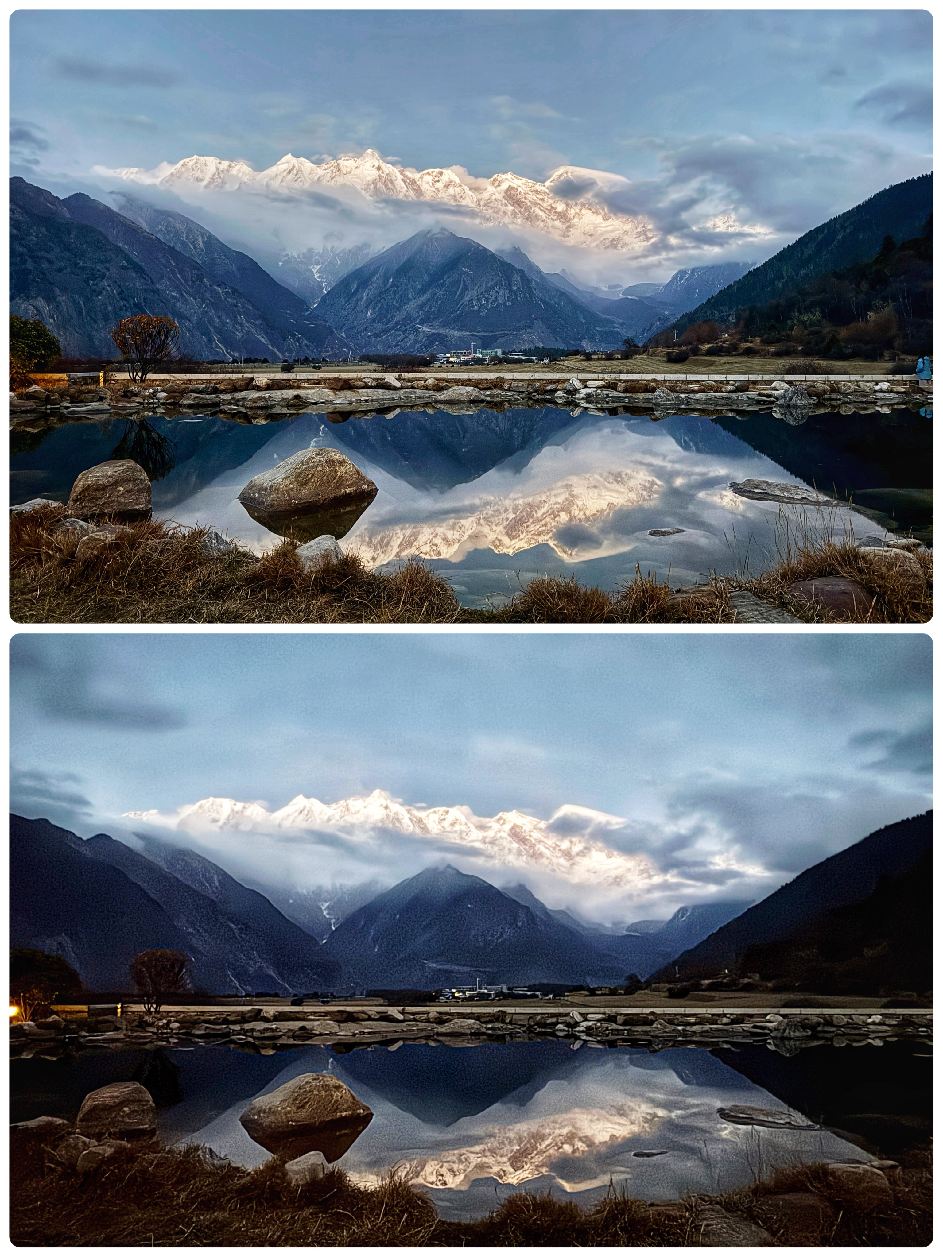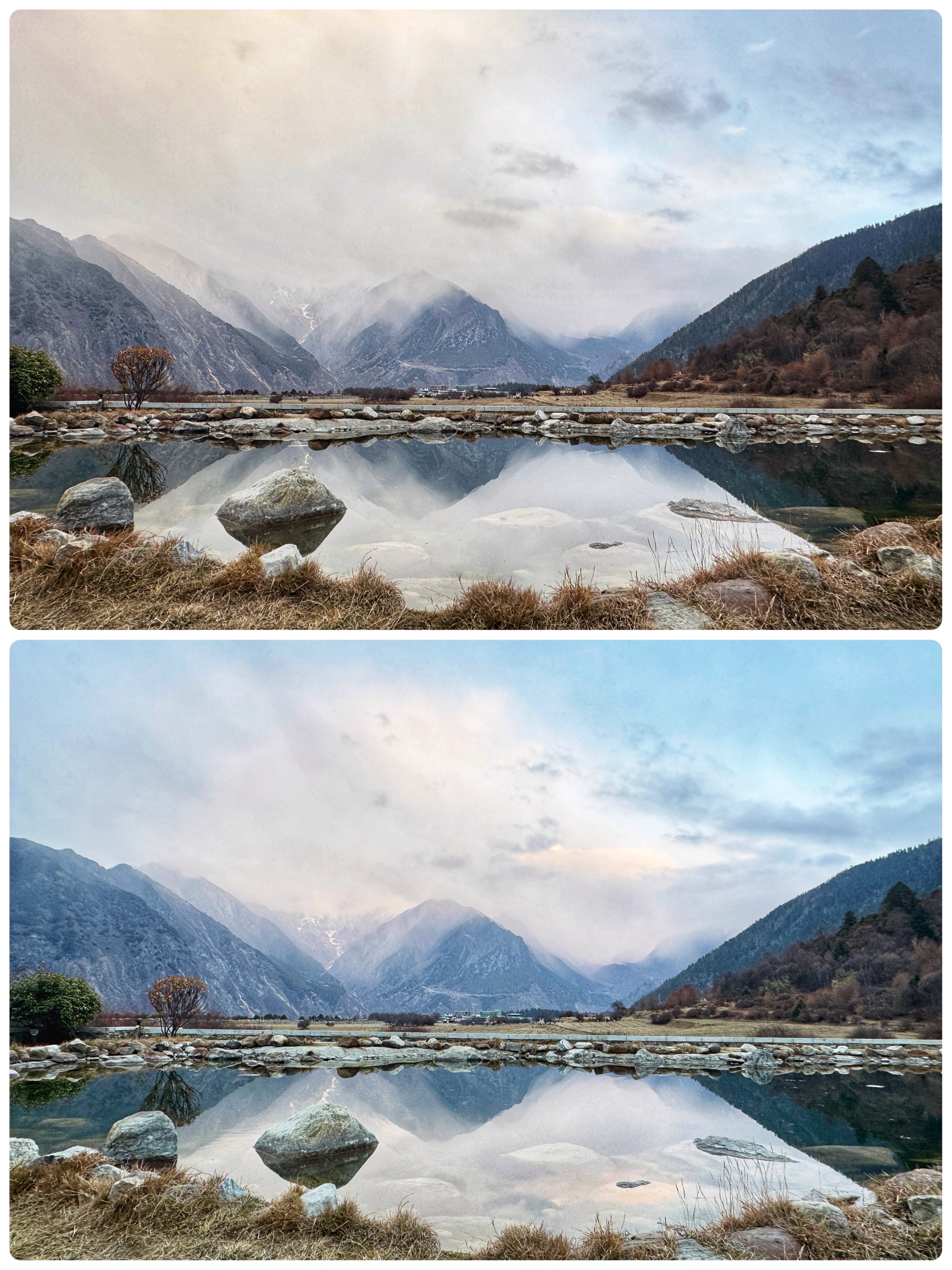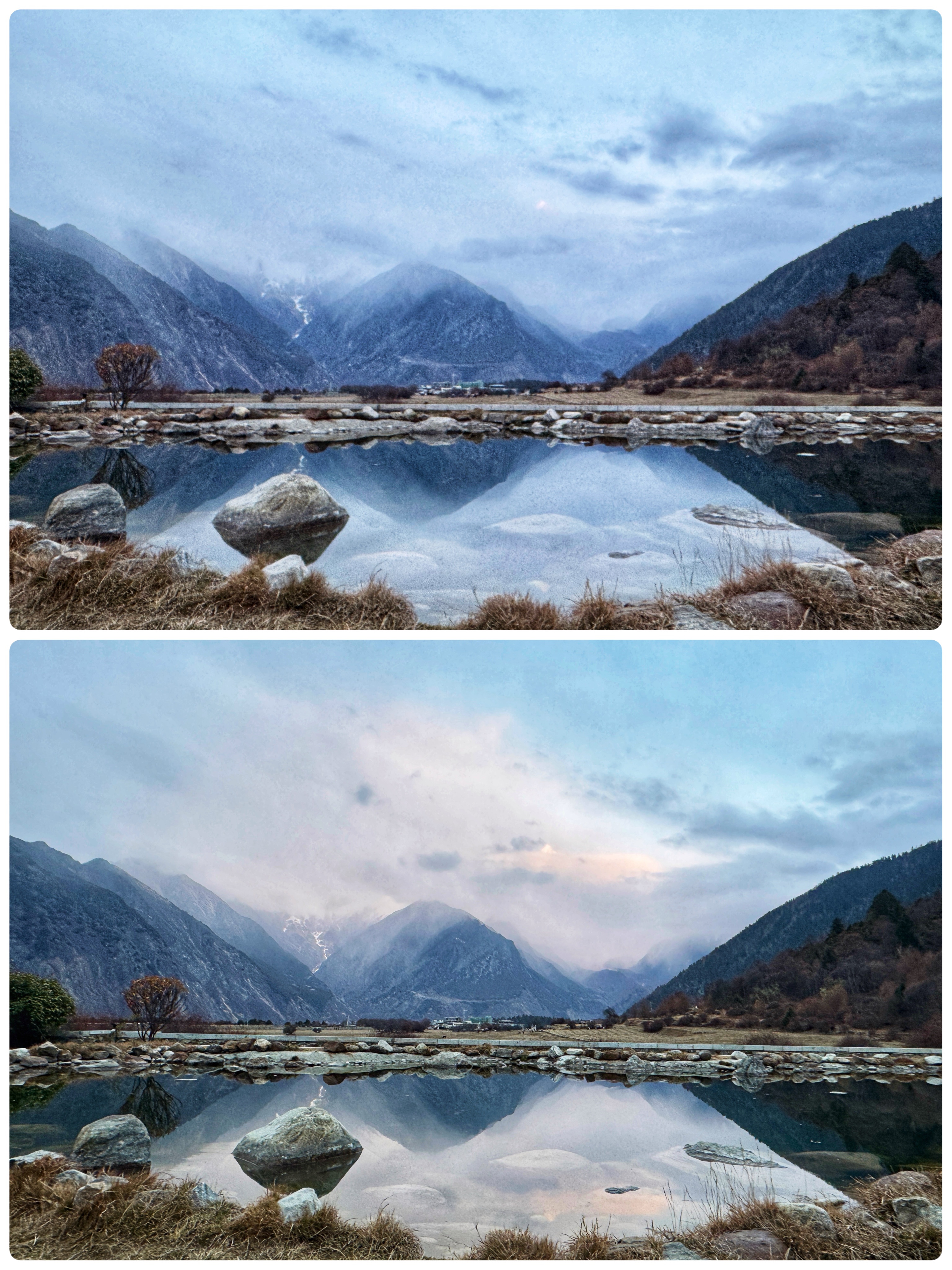 山在雾中,我在等风 等一场云开 等一次峰现 两小时的守候 同机位记录 南迦巴瓦的每一次呼吸 云雾是它的面纱 池水是它的镜面 南迦巴瓦的威严与温柔 在云雾里浮沉 都印在帧帧光影里 虽未见全貌 却也足够迷人 原来最美的风景 从来都在等待的过程里