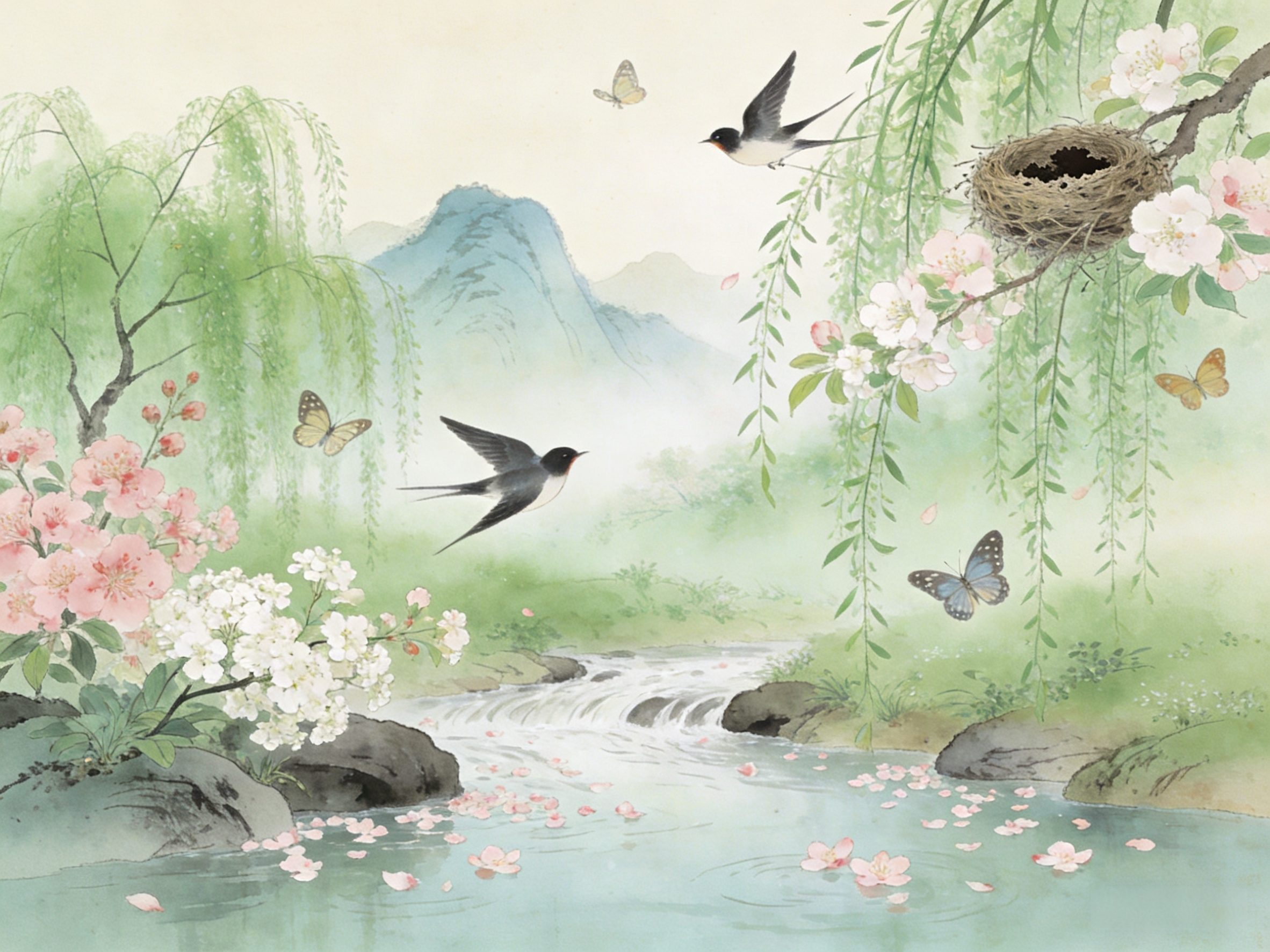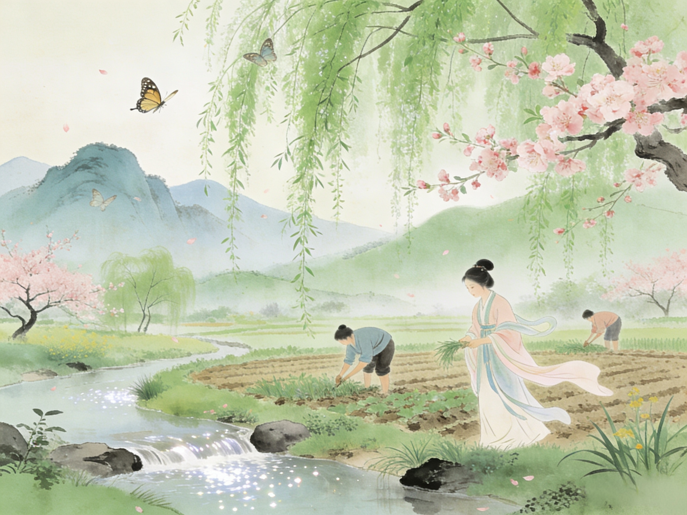 春风拂柳,花满溪山,正是春分时节,万物向暖而生。