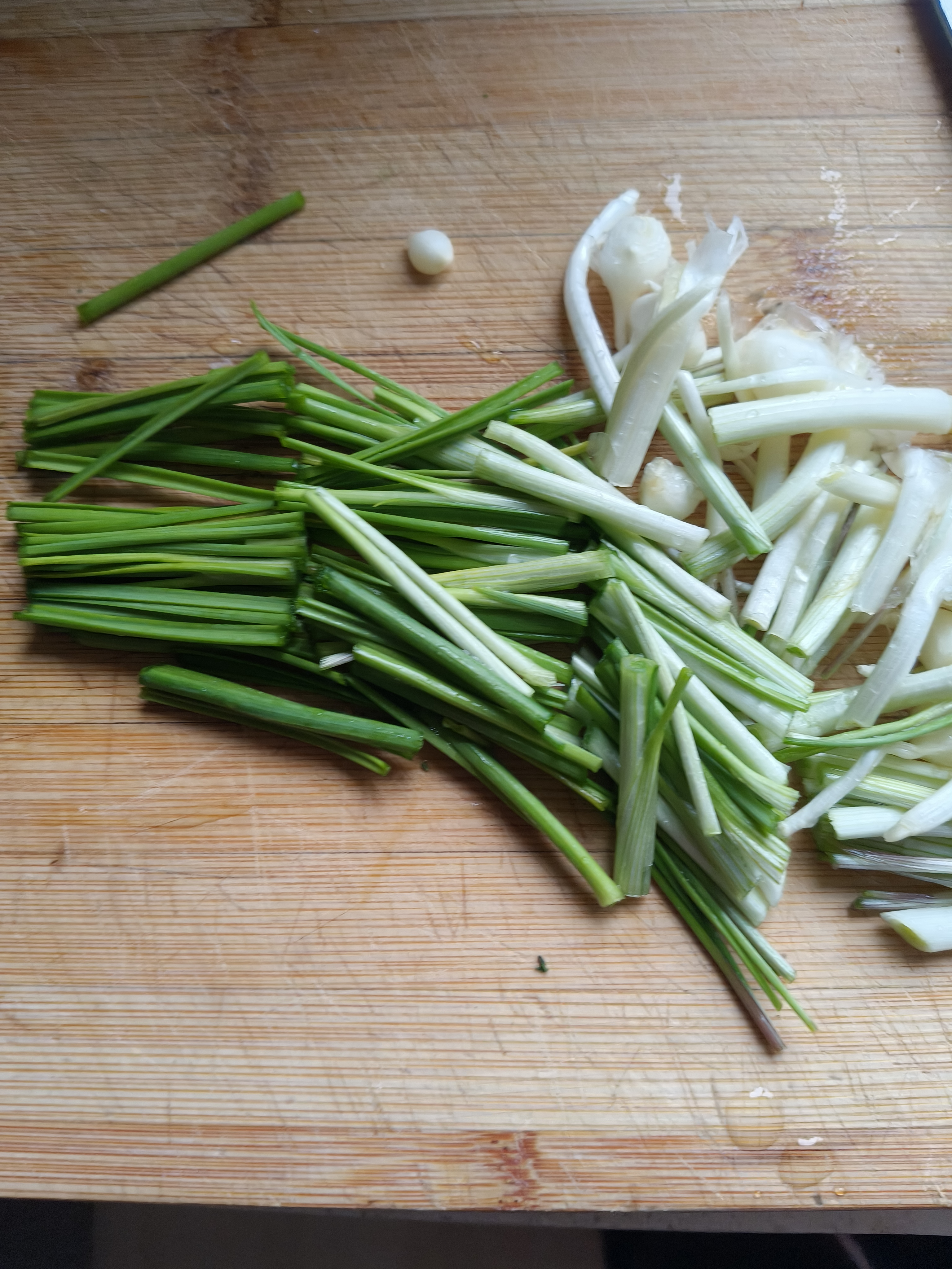 家里还有点野葱,怎么吃呢?想了半天,还是炒鸡蛋吧,自由生长的葱,炒起来特别香。
