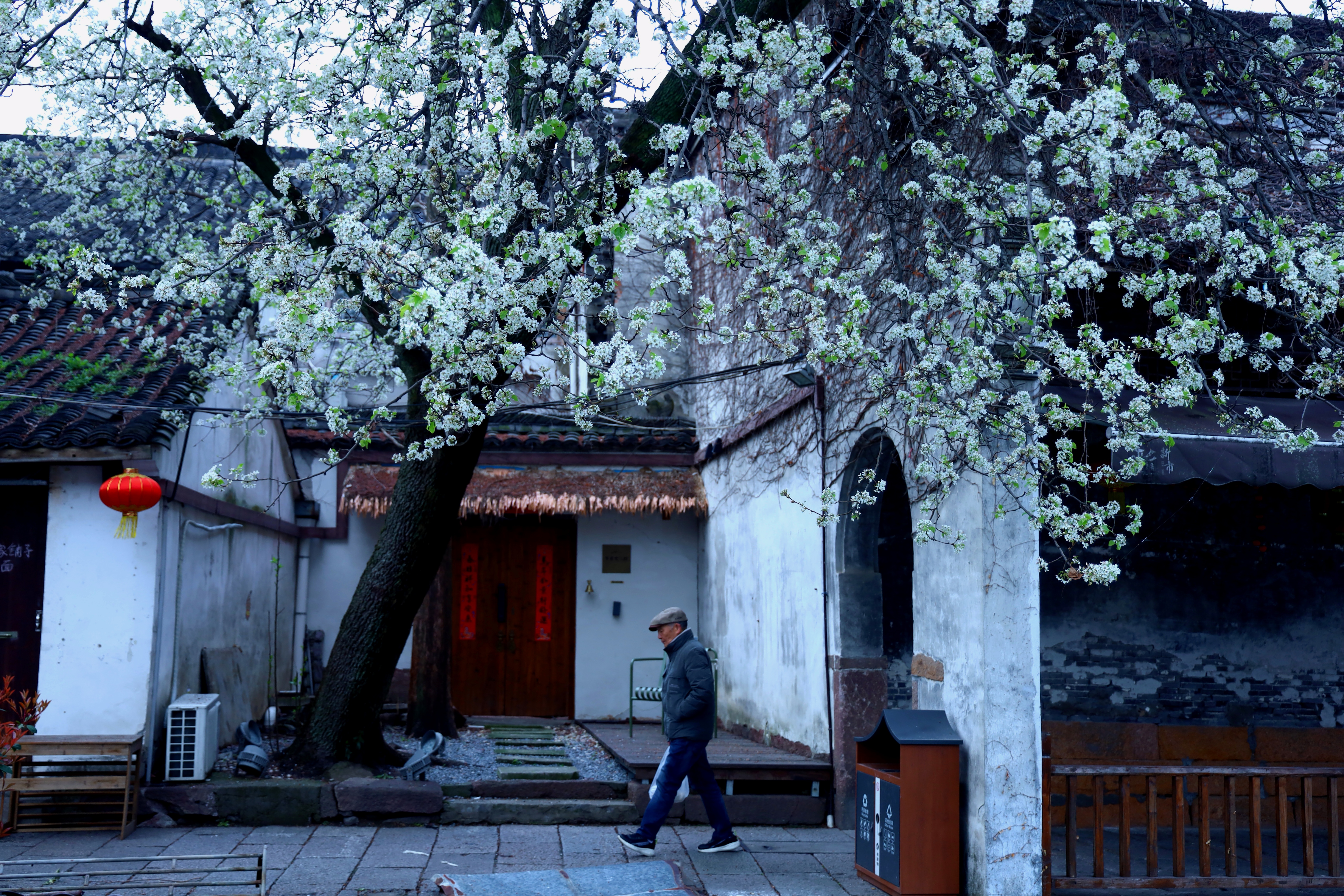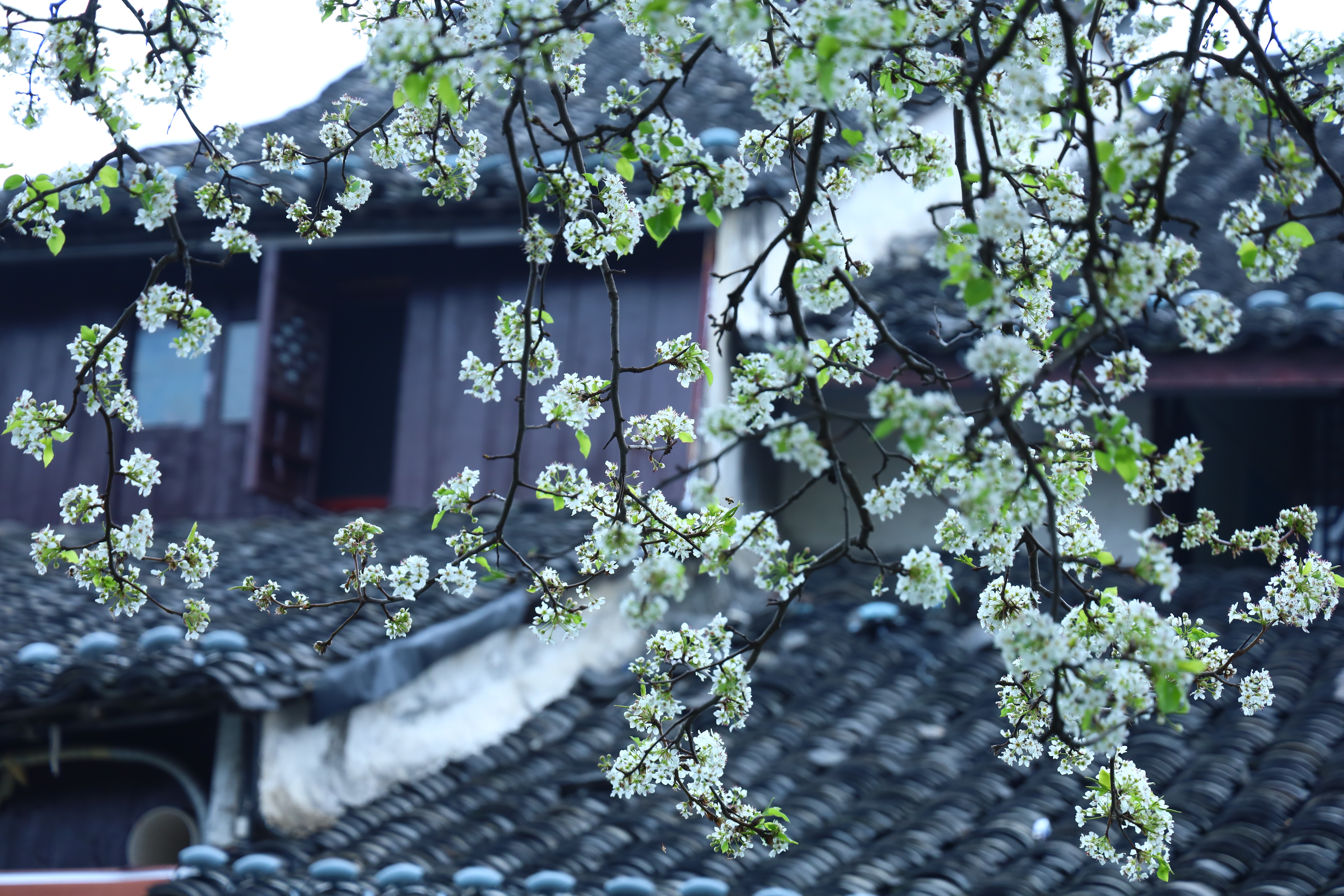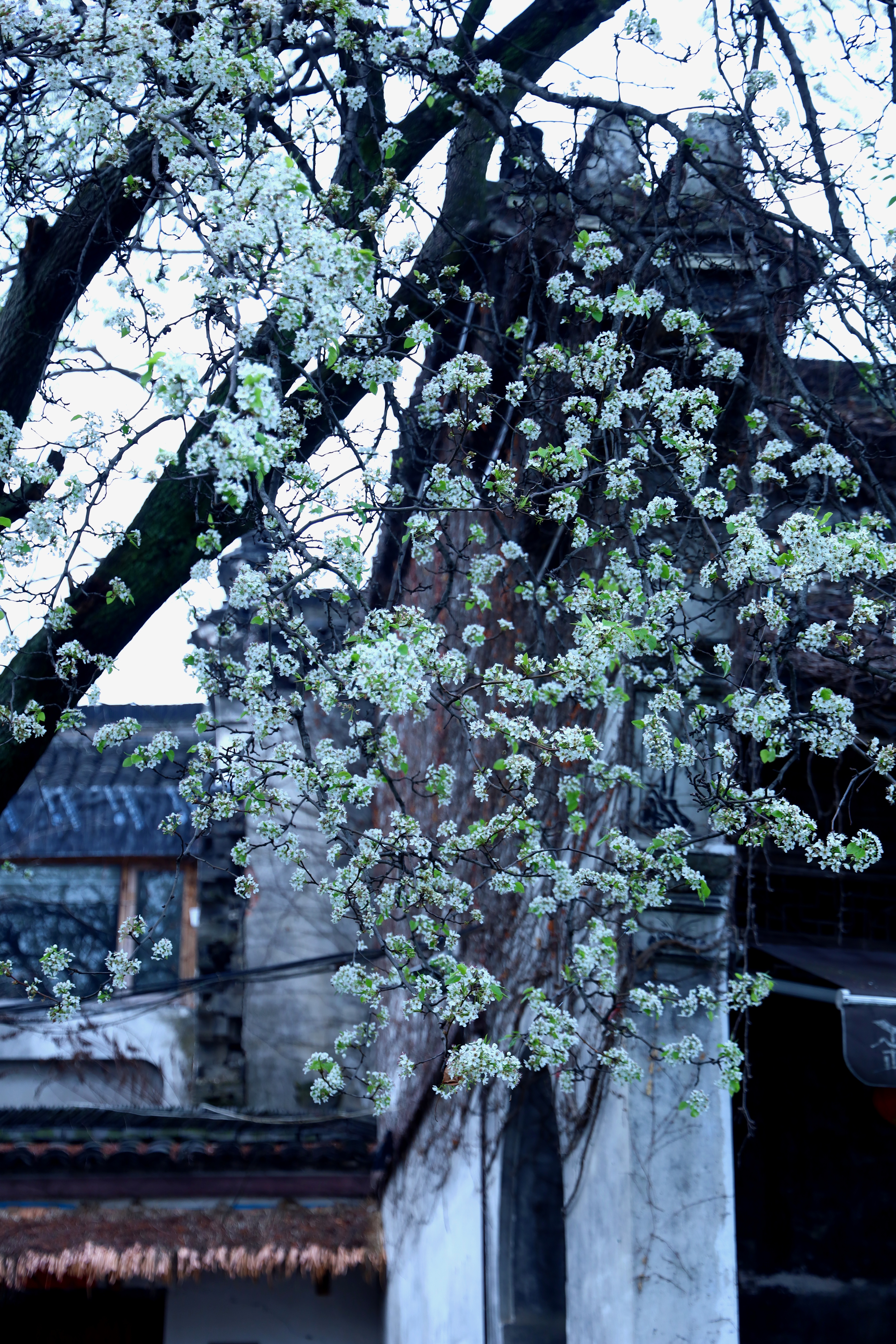摇橹船 载一树梨花 入江南古镇 水乡春色如画