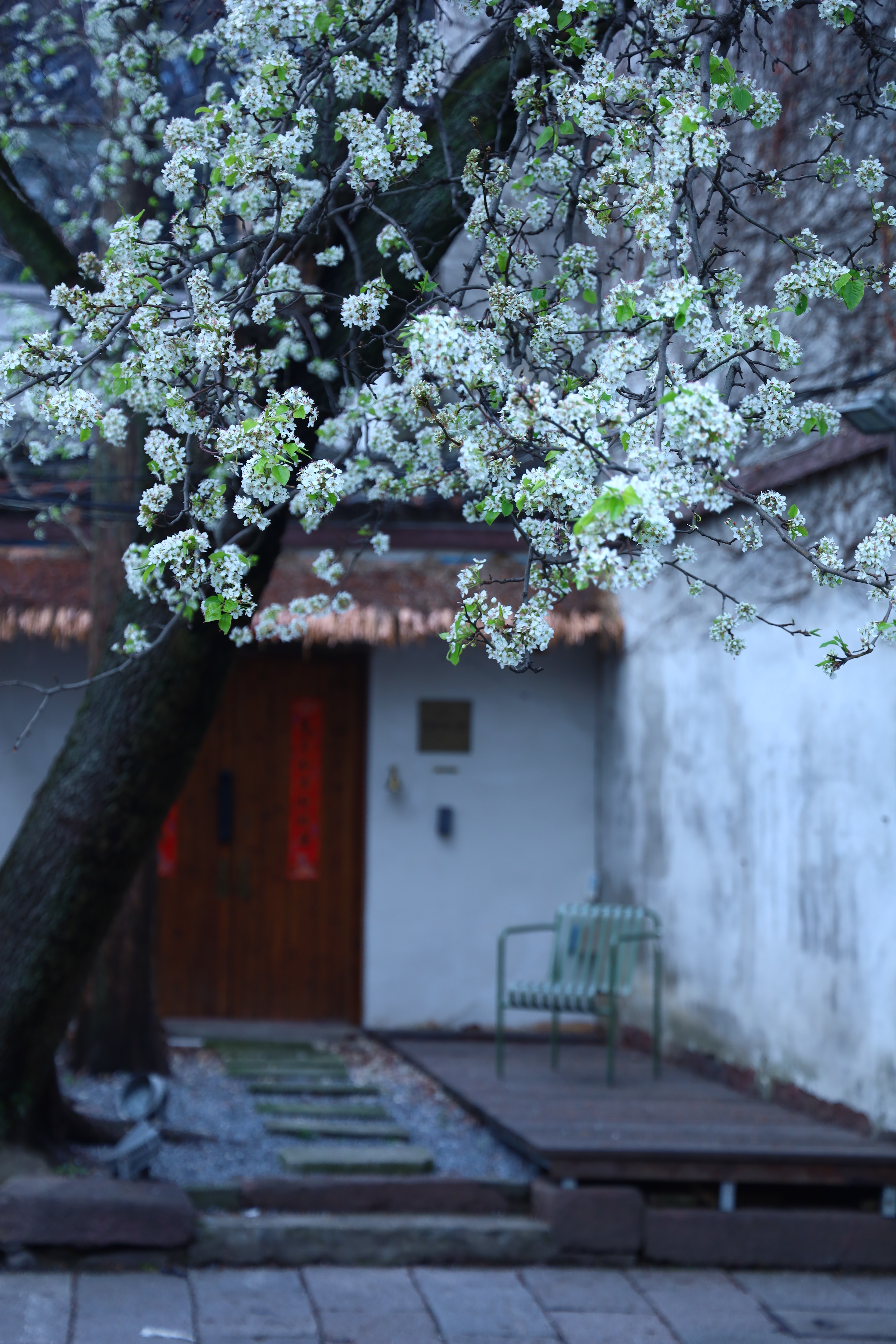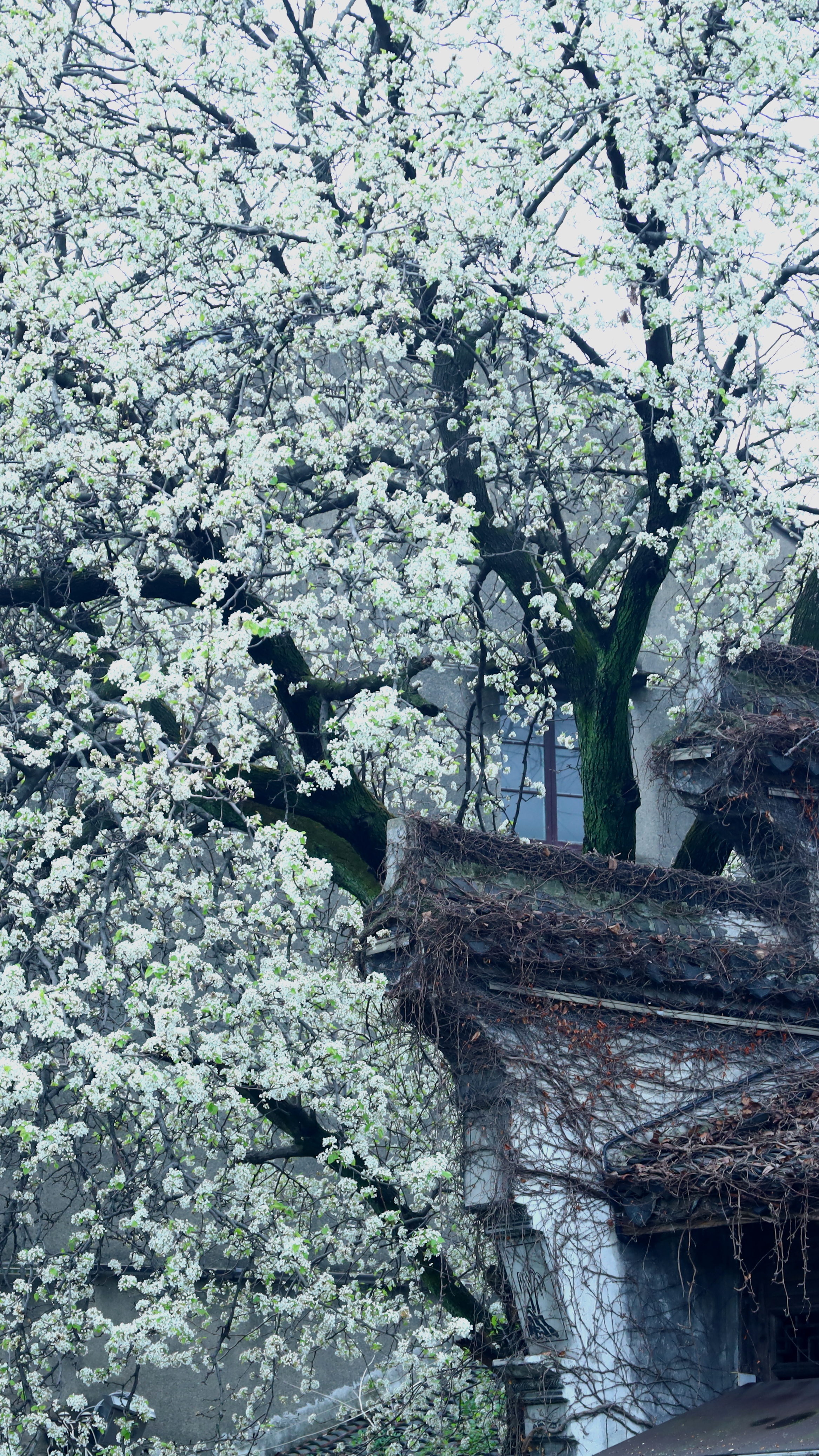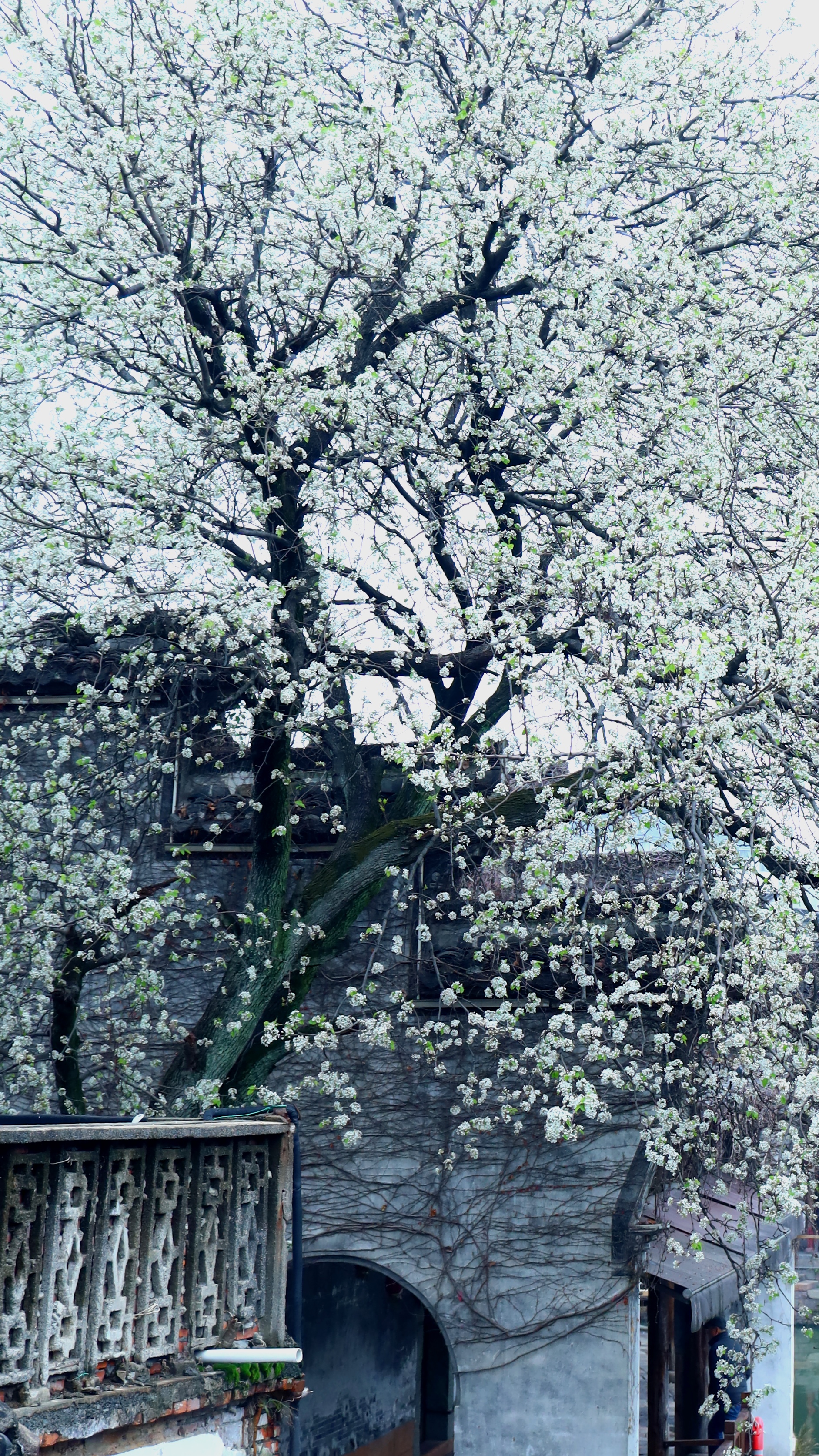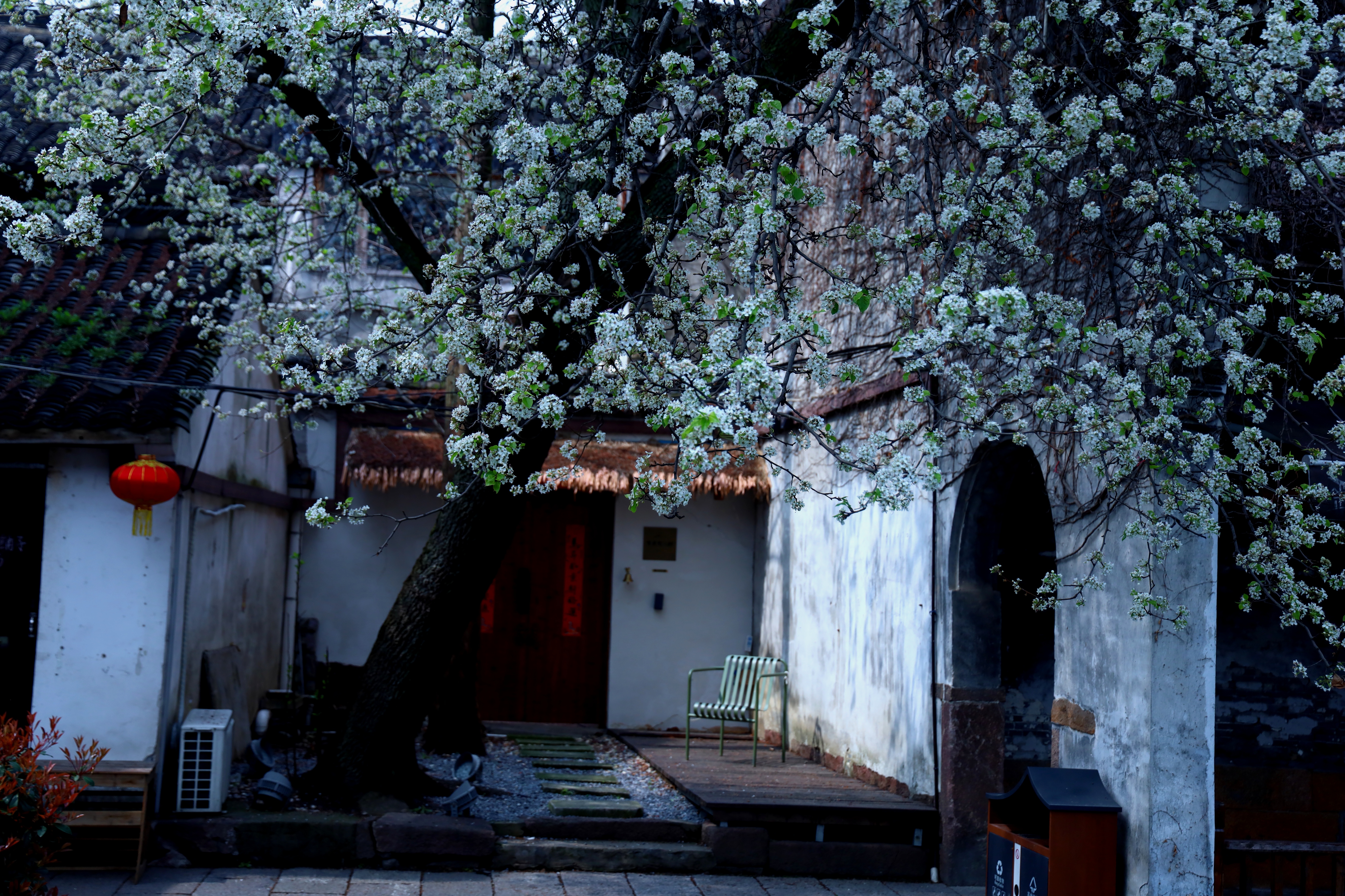 摇橹船 载一树梨花 入江南古镇 水乡春色如画