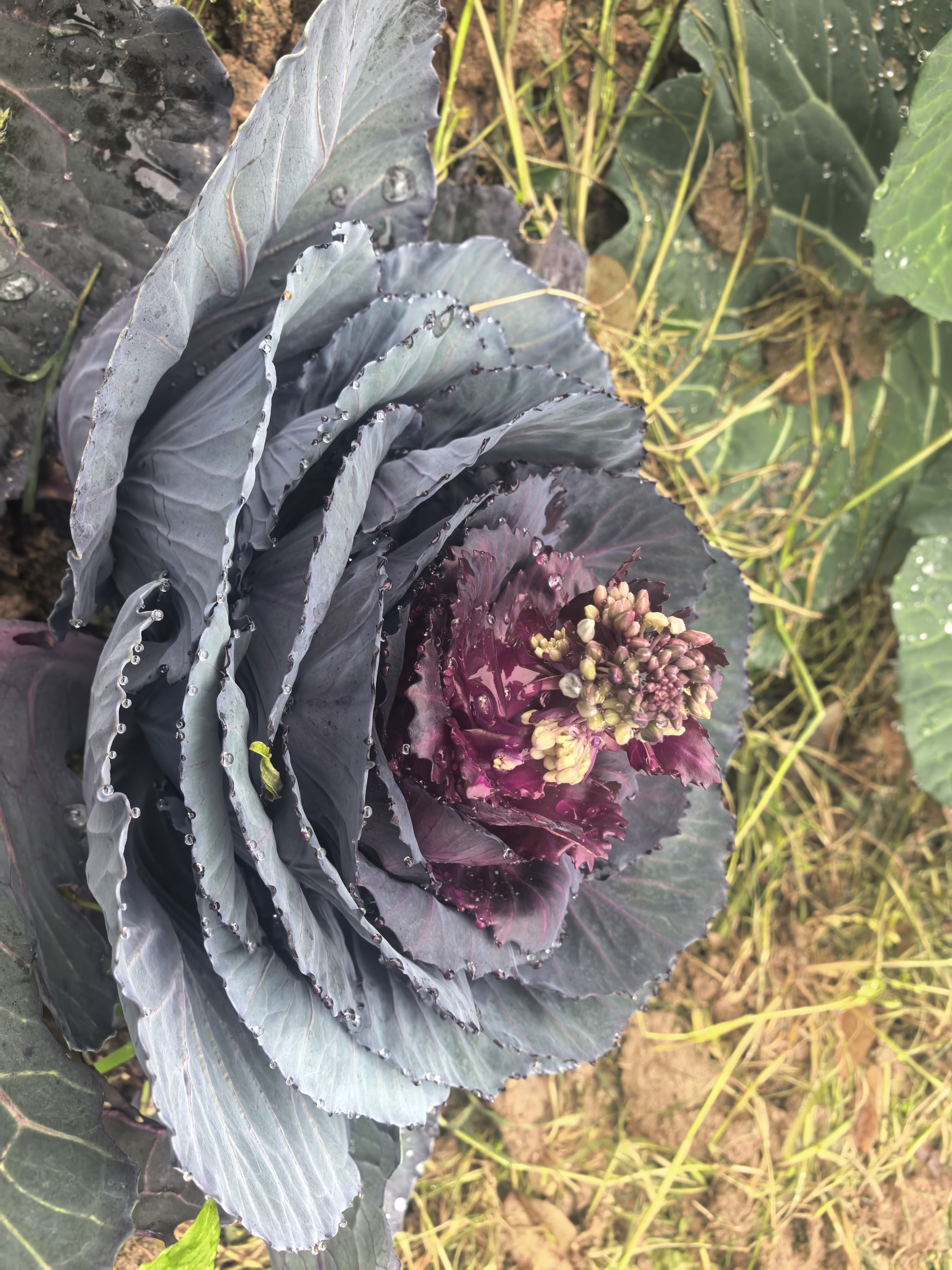 晨光里的紫甘蓝,露珠晶莹,叶片卷曲如裙,深紫得让人心动~田园小确幸📸