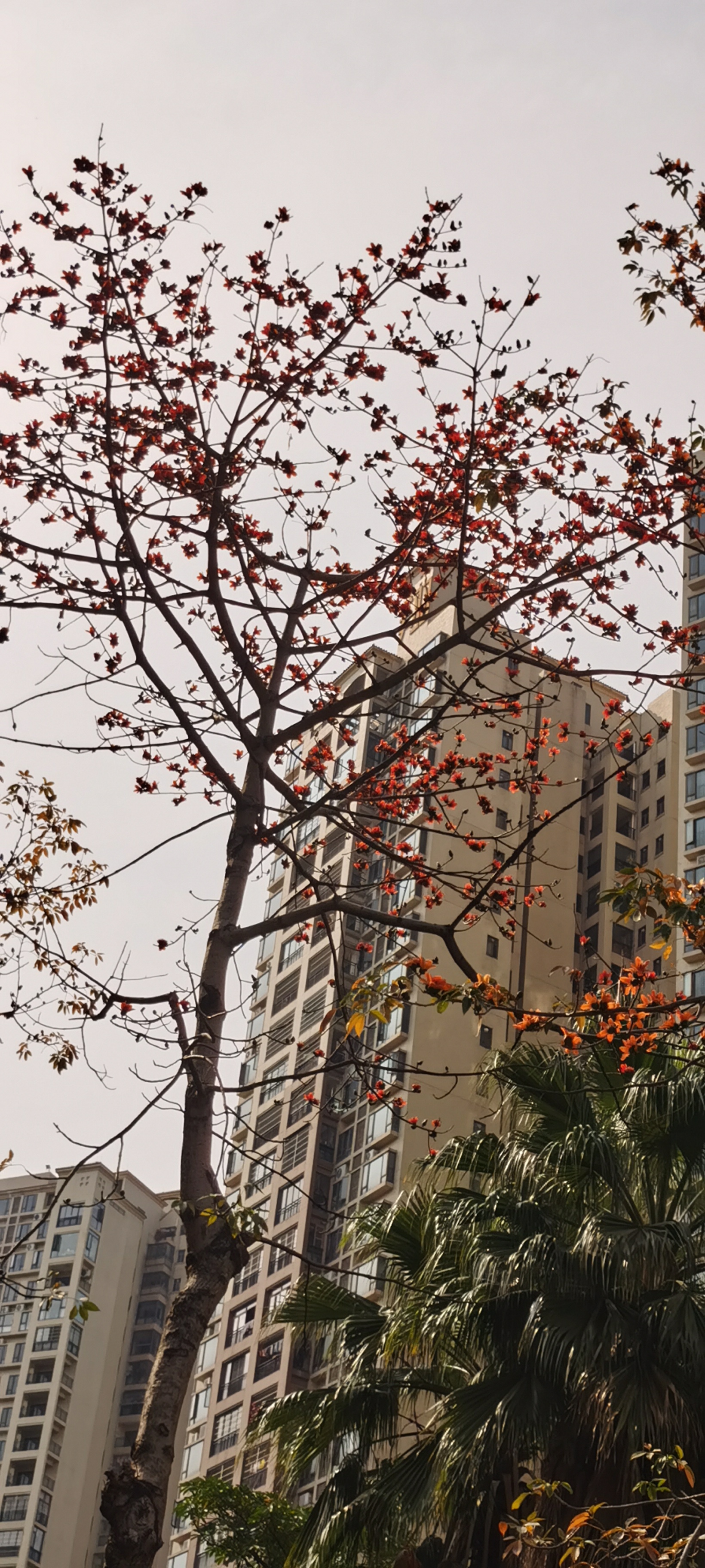 小区里的木棉花热烈燃放了。