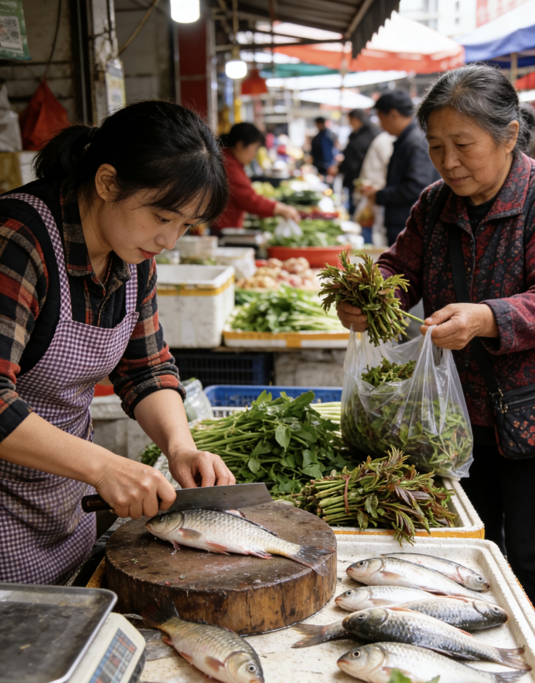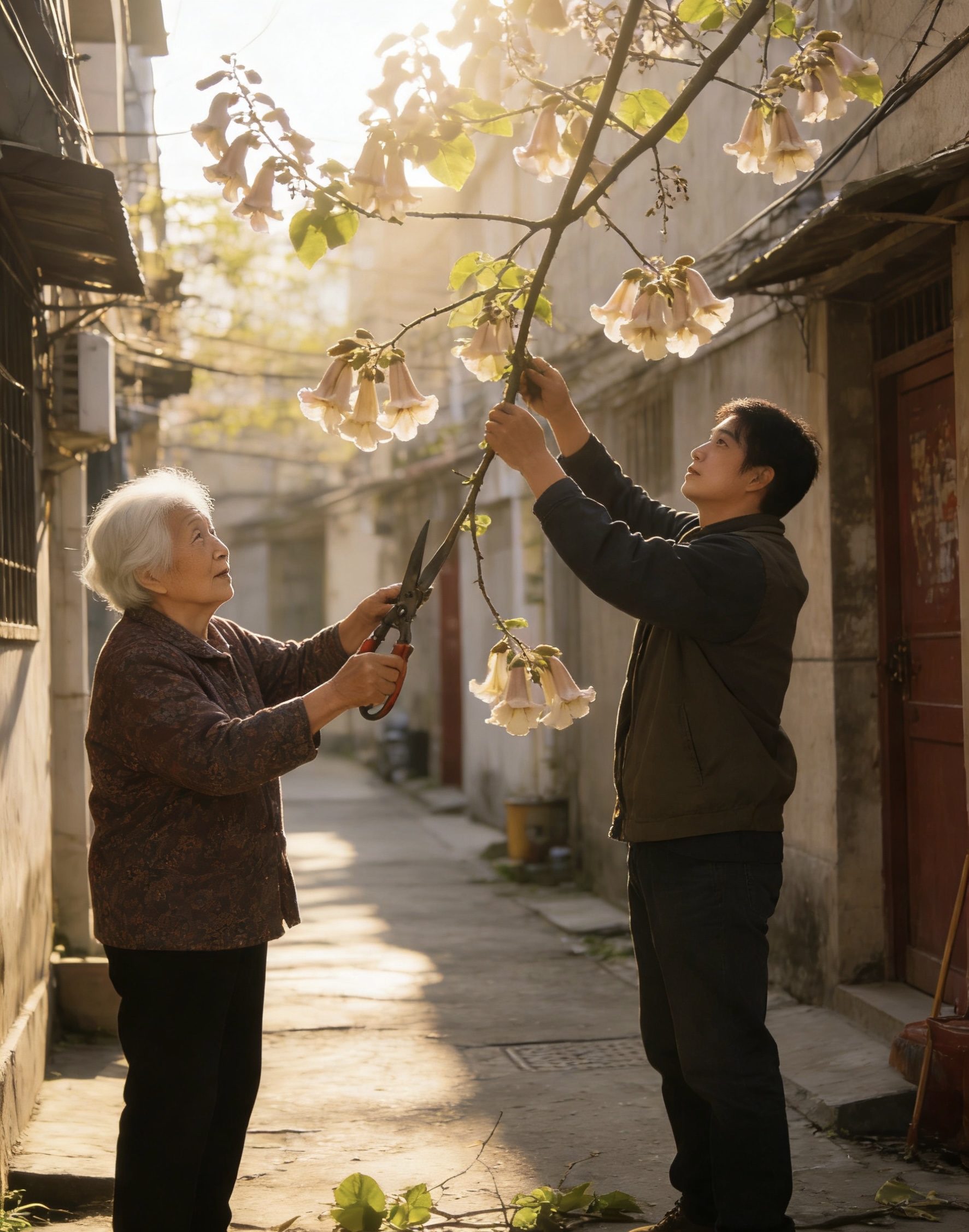 春分·龙抬头 (故事经过艺术加工和模糊化处理,部分图片为AI制作~) 今天是春分,又是龙抬头。 清晨推开窗,就觉出与往日不同——阳光直直地照进来,不多一分,不少一分,刚好铺满整个窗台。春分这天,昼夜平分,阴阳相半。一年里包括今日在内,也只有两日,白天和黑夜一样长,谁也不欠谁。 窗台上的那盆薄荷,恰好抽出两片新叶,左边一片,右边一片,对称得像是用尺子量过。我忍不住笑了,连草木都知道今天是什么日子。 巷子里比往常热闹。 那棵泡桐树的花差不多落尽了,只剩树梢还挂着几串,稀稀拉拉的,像最后的守望者。树下却聚着几个人——那位白发老太太,她女儿,还有几个我不认识的街坊。她们手里都拿着剪刀,正在修剪树枝。 “今天龙抬头,剃龙头。”老太太看见我,笑着解释,“树也得理理发,剪掉枯枝,新枝才能长得好。” 我才想起,二月二,龙抬头,民间习俗是要理发的。人理发,树也理发,万物在这一天都要抬起头来,开始新一年的生长。 我站在旁边看了一会儿。她们剪得很仔细,枯枝、病枝、长得太密的枝,一根一根地剪下来。剪刀咔嚓咔嚓地响,断枝落在地上,新鲜的茬口渗出汁液,在阳光下亮晶晶的。 “这树六十二年了,”老太太说,“每年龙抬头都给它剪一次。剪着剪着,我就从新媳妇剪成了老太婆。” 她女儿在旁边笑:“妈,你还年轻着呢。” 老太太也笑,眼角的皱纹像菊瓣一样绽开:“年轻不年轻,树知道。” 从巷子里出来,经过那条窄巷,那扇木门今天大敞着。 院子里,那个老太太正坐在小板凳上,给老头理发。一把推子,一把剪刀,一块围布,简单得很。老头闭着眼,乖乖地坐着,任她在头上摆弄。收音机里放着京剧,还是那咿咿呀呀的唱腔。 我站在门口看了一会儿,老太太抬头看见我,笑了:“今天龙抬头,给他剃剃头,精神精神。” “手艺真好。” “什么手艺,剃了几十年了,闭着眼都能剃。”她说着,手里的推子却一点没停,细细地推着鬓角,“他呀,不爱去理发店,说别人剃的不舒服,非让我剃。我这不是被逼出来的手艺。” 老头睁开眼,慢悠悠地说:“你剃的好。” 老太太脸微微一红,没接话,继续推。阳光从杏树叶缝里漏下来,照在他们身上,斑斑驳驳的,像一幅画。 河边今天特别热闹。 那个钓鱼的老人还在老位置,可旁边多了几个小孩,蹲在那儿看他钓鱼。他今天运气好,已经钓了两条,在水桶里游来游去,银光闪闪的。孩子们看得入神,眼睛一眨不眨。 “爷爷,鱼是怎么咬钩的?”一个小孩问。 老人慢悠悠地说:“它先游过来,闻闻,看看,觉得香,就轻轻啄一下。你不急,它就会再啄一下。啄着啄着,就咬上了。” “那你急吗?” “不急。”老人笑了,“鱼都不急,我急什么。” 另一个小孩指着河面喊:“快看,龙!”大家顺着看去,原来是河面上漂着一根长长的柳枝,弯弯曲曲的,真像一条小龙在水里游。 老人点点头:“今天龙抬头,龙都出来了。” 孩子们笑起来,笑声在河面上飘荡,惊飞了几只野鸭。 菜市场今天也格外热闹。 卖鱼的女人摊前围了好几个人,都在买鱼。她忙得满头汗,儿子在旁边帮着收钱、装袋。看见我,她喊了一声:“今天鱼好,买两条回去?龙抬头,吃鱼,年年有余!” 我笑着摇摇头,继续往里走。 那个卖野菜的大姐今天换了新菜——香椿、荠菜、马兰头,还有刚下来的枸杞头。她一边称菜一边说:“今天春分,吃春菜,一年都精神。”旁边的人纷纷点头,挑菜的挑菜,问价钱的问价钱,热闹得像过年。 我在她那儿买了把香椿。她多抓了一把塞给我:“今天龙抬头,送你点,回去炒鸡蛋,香得很。” 从菜市场出来,手里提着一袋子春菜,心里暖洋洋的。 下午去了那片拆迁地。 油菜花差不多开败了,黄的花瓣落了一地,像铺了一层金毯子。剩下几株还在开的,稀稀落落的,在风里摇摇晃晃。 那个摄影师又来了。他站在废墟上,举着相机,对着远处拍照。我走过去,他回头看看我,笑了:“最后一次了。明天这块地就要围起来,动工了。” 我们一起看着那片油菜花。它们已经不那么灿烂了,可那种将谢未谢的样子,竟有一种说不出的美。像是知道自己的日子不多了,所以格外用力地绽放最后一点颜色。 “拍了多少天了?”我问。 “从花开拍到花落,整整半个月。”他放下相机,“够了,该拍的都拍到了。花落了,地要盖楼了,可照片还在。” 他翻出相机里的照片给我看——第一天,刚开的几朵,怯生生的;第三天,开了一片,明晃晃的;第七天,开疯了,黄得晃眼;今天,花落了,只剩最后几朵,在废墟上孤零零地站着。 看着这些照片,忽然想起那棵泡桐树,想起那位白发老太太,想起她说的话:“每年落的时候我都心疼,可第二年它又开了。” 花落了,明年还会开。地没了,可照片还在。人老了,可树还在长。春天过去了,可下一个春天还会来。 这就是春分告诉我们的道理罢——昼夜平分,阴阳相半,万物在平衡中生长,生生不息。 回到家,天已经黑了。 今天是个特别的日子——春分,龙抬头,又是我的春日打卡第十二天。日子过了一半,春天也过了一半。从今天开始,白天越来越长,夜晚越来越短。万物都在抬头,都在生长,都在向着光明奔跑。 那笛声今晚又响了。还是那个邻居,还是那首《茉莉花》,可今天吹得格外有精神,调子欢快得很,像一条抬了头的龙,要往天上飞。吹完后,他那边传来一阵笑声,大概是自己也满意。 我趴在窗台上听了一会儿,忽然想,今天这个日子真好——春分平分昼