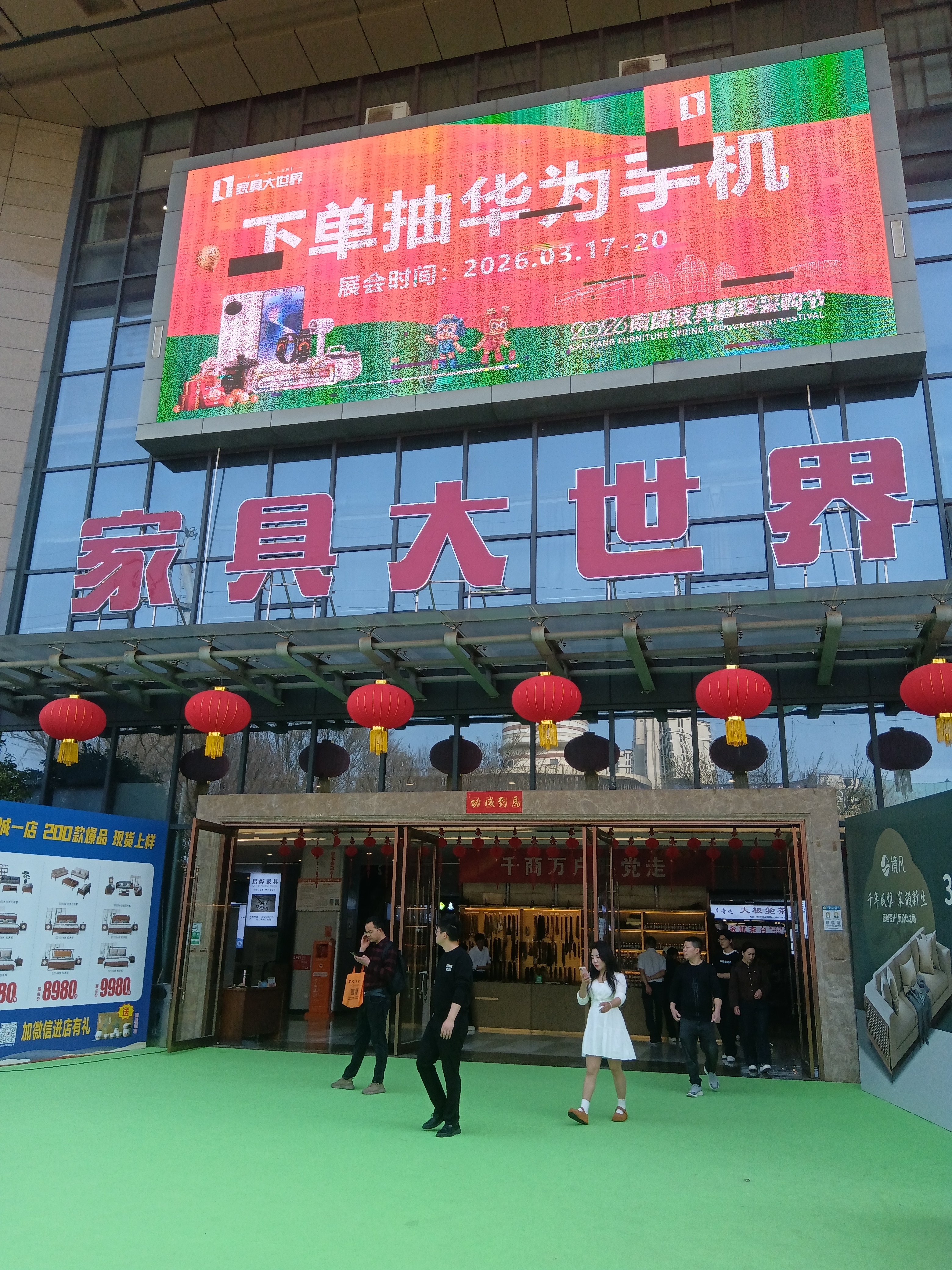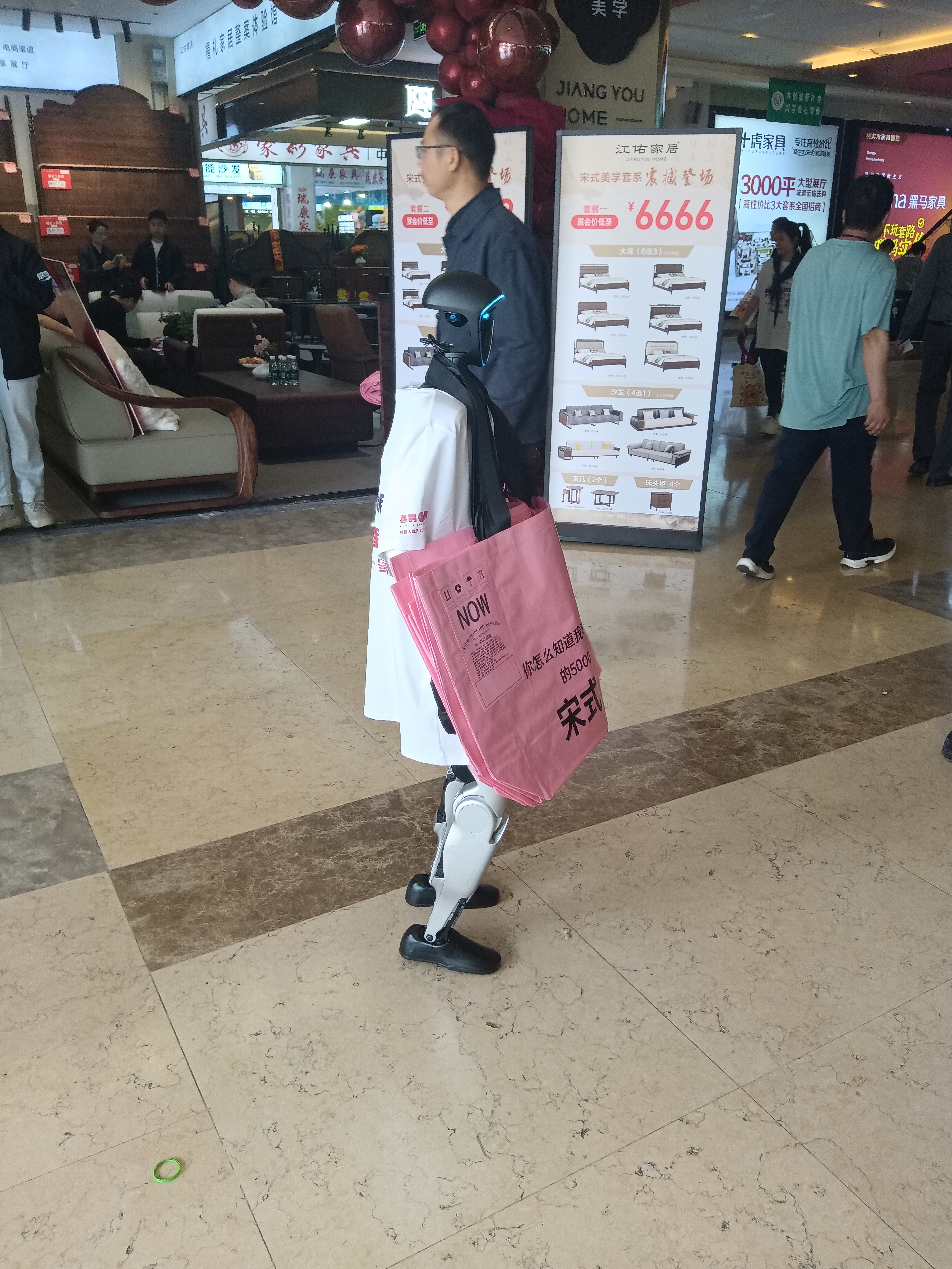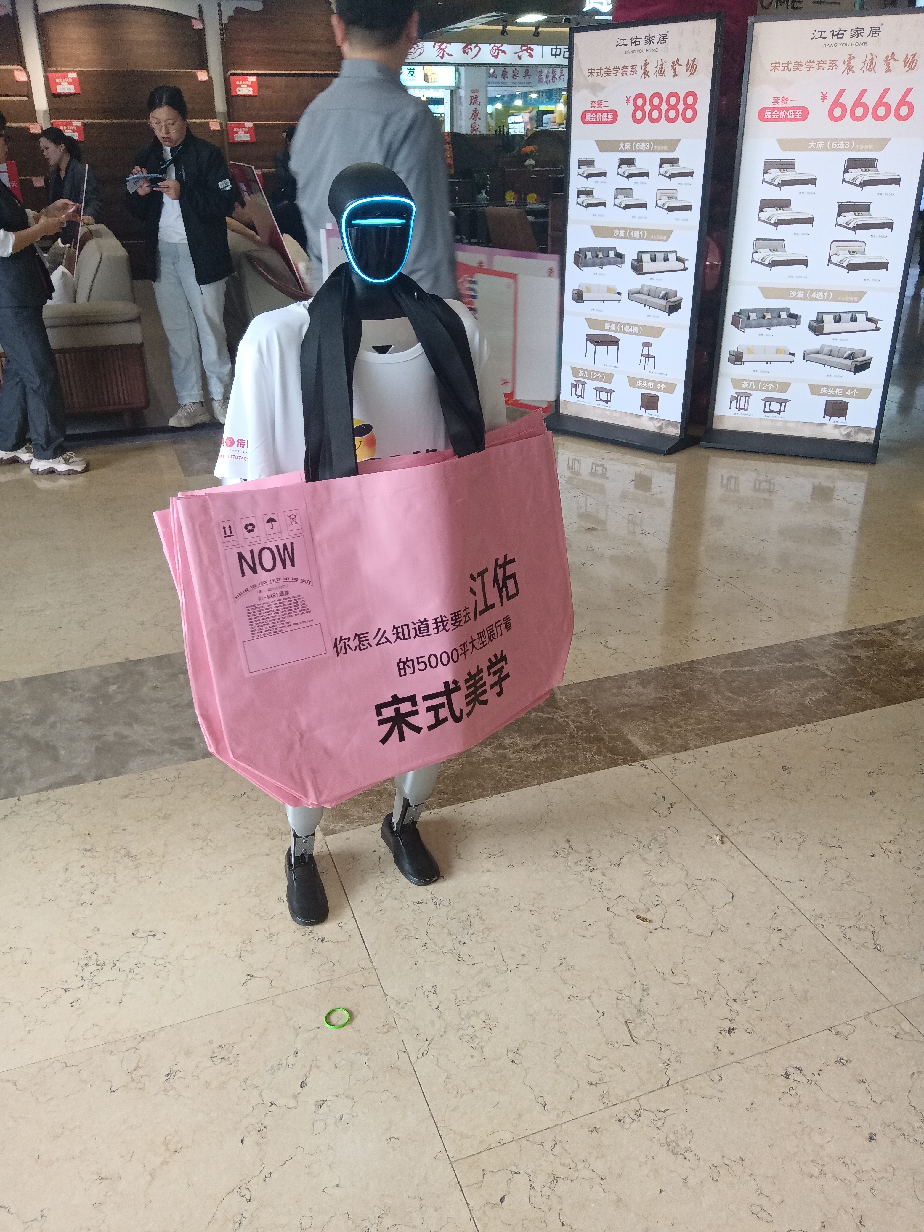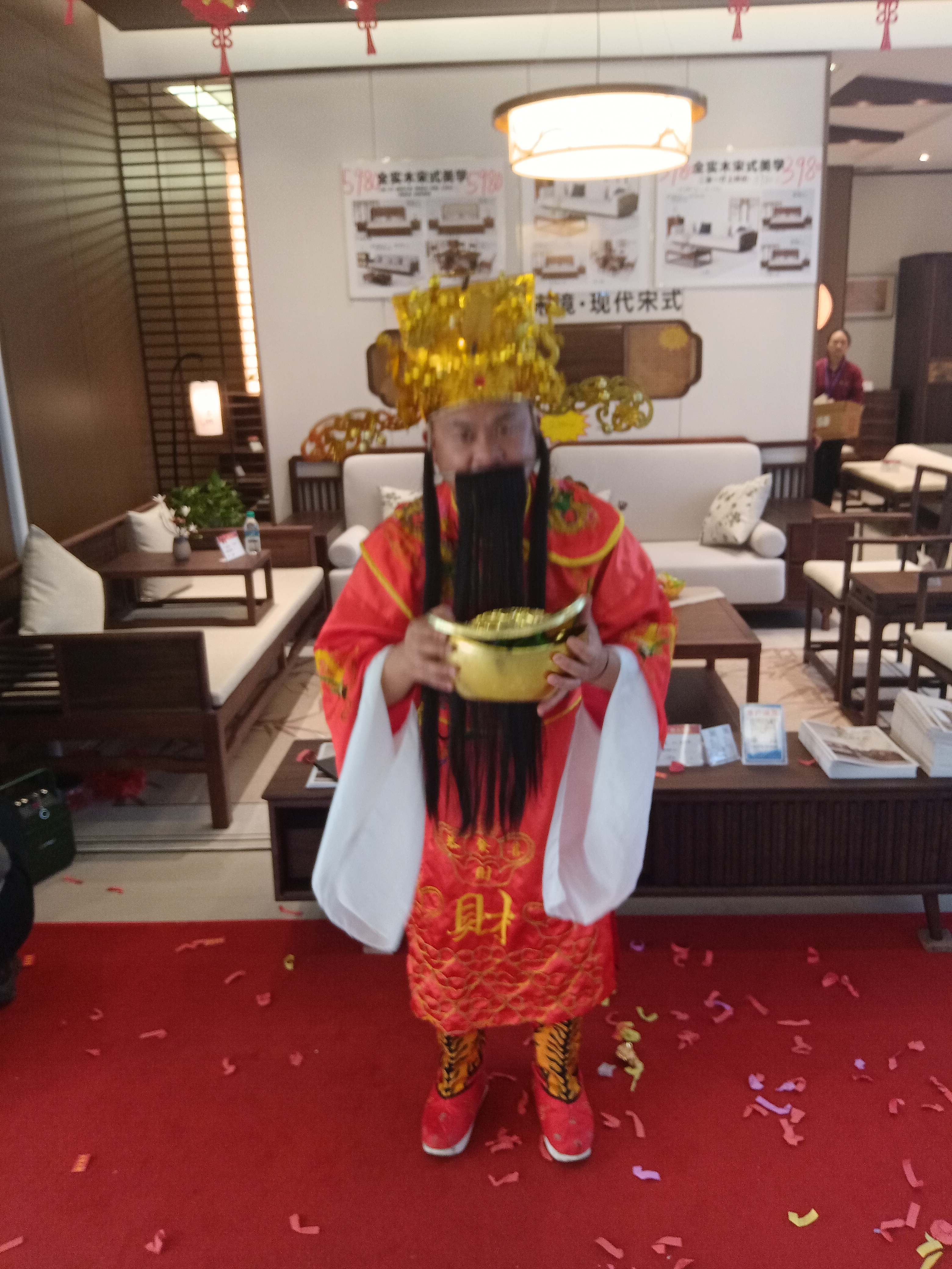 南康家俱大市场搞活动春季采购节,吸引了全球的家具经销商纷纷踏至。机器人作宣传,财神爷送礼物。