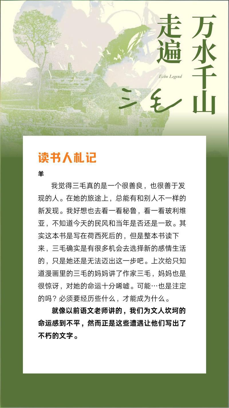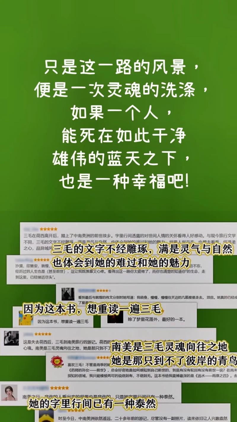 《万水千山走遍》是潮新闻第十四期阅读活动可免费兑换的书籍之一,其是三毛在人生剧变之后,交出的一份诚实质朴但又令人心碎的答卷。它不仅仅是一部游记,更是一位受伤的灵魂在异域的流浪中,寻求自我疗愈与重建的真实记录。 下面我想从创作背景、艺术鉴赏、深度评价和经典片段几个维度,为大家详细介绍这部作品。 创作背景:一场心碎的自我放逐 要真正读懂《万水千山走遍》,必须先了解它诞生的时刻。1979年,三毛的挚爱荷西意外离世,她的心灵遭受了巨大创伤,人生跌入谷底 。在经历了《梦里花落知多少》中那撕心裂肺的悲痛后,1981年,三毛接受了《联合报》的赞助,踏上中南美洲之旅,这一走就是半年。 这场旅行,表面上是一次公务,实则是三毛的自我放逐与拯救。正如她自己所说,既然外面的光照不进来,那就亲手打破眼前的黑,自己走到外面的世界里去 。因此,这部作品从一开始就背负着沉重的哀愁,是一次试图用脚步丈量悲伤、用陌生风景来镇痛的心灵历程 。 作品鉴赏:当流浪的灵魂遇见了哀愁 1. 游记的外壳,心路的内核 这部散文集共十八篇,记录了从墨西哥、洪都拉斯、巴拿马到秘鲁、阿根廷等地的见闻 。然而,三毛的目光并未停留在著名的旅游胜地和自然奇观上,而是投向了市井深处最真实可感的异域风土人情 。她写墨西哥的“抹布”塔可,写洪都拉斯贫苦居民的眼神,写厄瓜多尔澄净如琉璃的心湖。这些看似零散的记录,实则都是她内心世界的外化投影。风景只是背景,真正的主角是三毛那颗破碎后试图重建的心。 2. 褪去欢愉,染上灰蓝的基调 与《撒哈拉的故事》中那个用娃娃音讲述沙漠趣事、充满生命力的三毛截然不同,《万水千山走遍》的底色是灰暗和哀愁的 。南美洲的古老神秘与落后破败,恰好映衬了她内心的荒凉 。她不再是一个热情的参与者,而是一个冷静的观察者,甚至是一个悲悯的同理心拥有者。她将对荷西的思念,融进了文字的每一个阴影里。 3. 朴实无华却直抵人心的语言 三毛的笔法依旧特别,没有华丽的辞藻堆砌,没有故弄玄虚的结构,用平平实实的语言,为我们编织出一个真实又虚幻的世界 。比如她形容墨西哥的饮食“搭哥”(Taco)吃起来就像“抹布”一样,这个看似粗鄙的比喻,却充满了个人化的通感,让人过目不忘。这种语言风格,让她的文字如同清泉,能直接冲击并温润读者干涸的心田。 深度评价:不仅是游记,更是生命的追问 《万水千山走遍》是一部关于“孤独”与“遇见”的哲学文本。 在这部作品中,三毛遇到了形形色色的人,但最打动人的,都是那些同样孤独的灵魂。这些萍水相逢的人,其实是三毛内心镜像的投射。 · 遇见安妮:在秘鲁古斯各,三毛遇见了荷兰女孩安妮。两人素昧平生,却一见如故,审美、性格惊人的相似,仿佛是失散已久的灵魂伴侣。她们彼此看穿了对方的不快乐,却因过分守礼,谁也不愿倾诉自己的故事,最终安妮悄无声息地离开,只留下一张写有“彼此的故事,因为过分守礼,不愿别人平白分担,却都又不肯说了”的纸条。这种克制的悲伤与深沉的默契,是全书最动人的章节之一。 · 遇见“给诺”吹奏者:那位为了梦想自费租下剧场,最终只为三毛和助手两人演奏的印第安笛手。三毛和米夏报以热烈的掌声,但“那样的掌声,将大厅回响得更是寒冷空洞而悲伤” 。这何尝不是三毛自己作为写作者的境遇写照? 这部作品也展现了三毛极具灵性的一面。在厄瓜多尔,她“通灵”般地认为自己的前世是印第安药师“安娃”的孙女,那片明澈的“银湖”是她的来处,今生只能进来一次,永远等待来世。这种对“前世今生”的想象,是她为无处安放的灵魂寻找的一个诗意归宿。 结语 《万水千山走遍》或许没有《撒哈拉的故事》那般明亮欢快,让人读来心生甜蜜 。但它是一部更复杂、更深刻的作品。它记录了一个普通女子如何在巨大的创痛之后,依然鼓起勇气,用双脚丈量大地,用双眼观察悲苦,用心灵感受世界。它让我们看到,即便是一个“遍体鳞伤的骆驼”,也在陌生的环境中顽强地舔舐伤口,努力寻找活下去的力量 。 就像书中开篇引用的那句话:“大地啊,我来到你岸上时原是一个陌生人,住在你房子里时原是一个旅客,而今我离开你的门时却是一个朋友了。” 这趟旅程,让三毛重新与这个世界建立了连接,也让她破碎的自我,在万水千山中得到了暂时的安放。 如果你也想感受那种 “带着哀愁的自由” ,这本书值得一读。书中有多个真实而动人的故事,友友们是想深入了解三毛与安妮的相遇,还是想看看她如何描写那片让她认定是“前世故乡”的银湖?